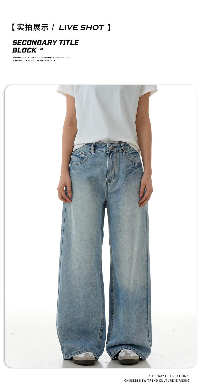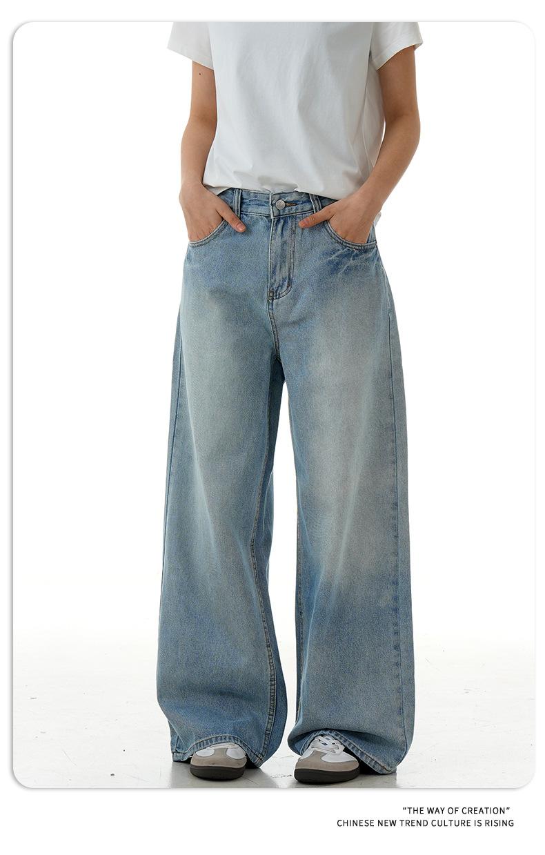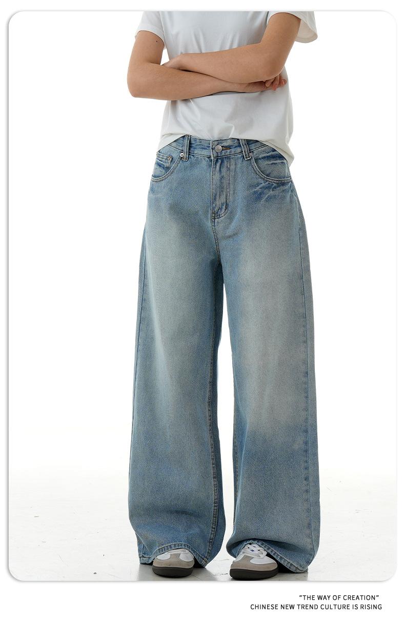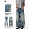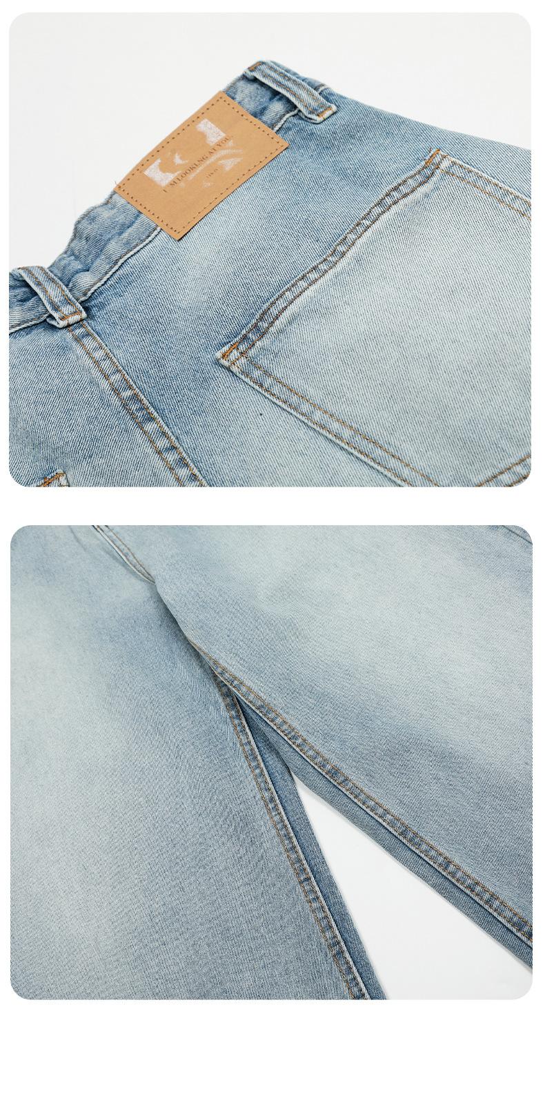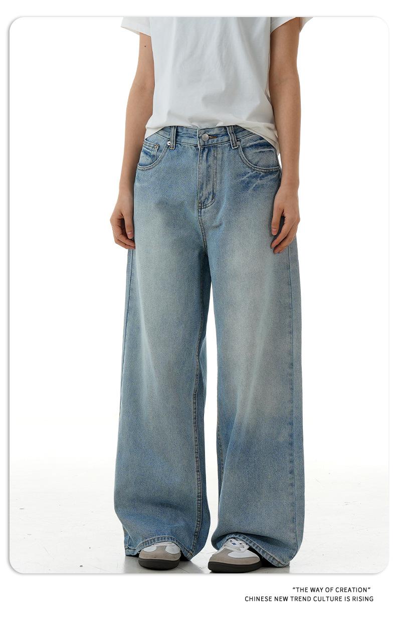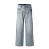 Jeans Rectos 11Kn Azul Lavado Americano para Hombre y Mujer Retro Desgastado Estéreo Adelgazante Look Suelto Casual Pantalones de Pierna Ancha