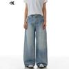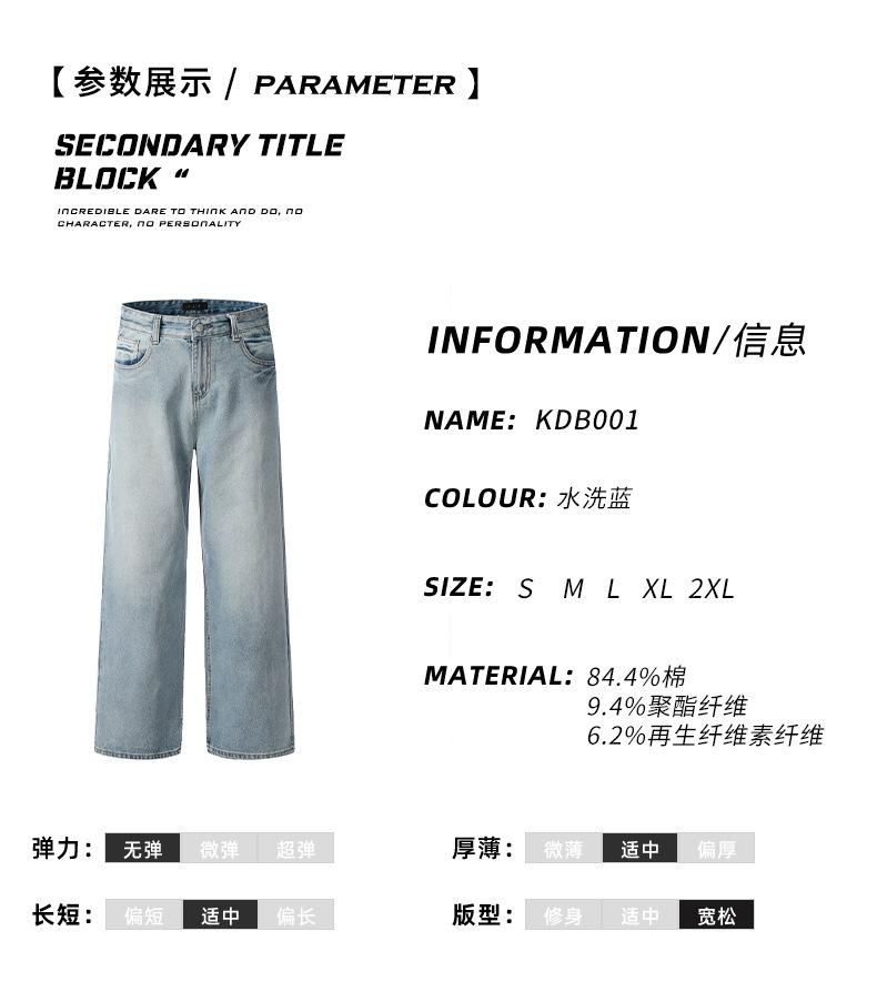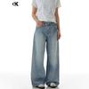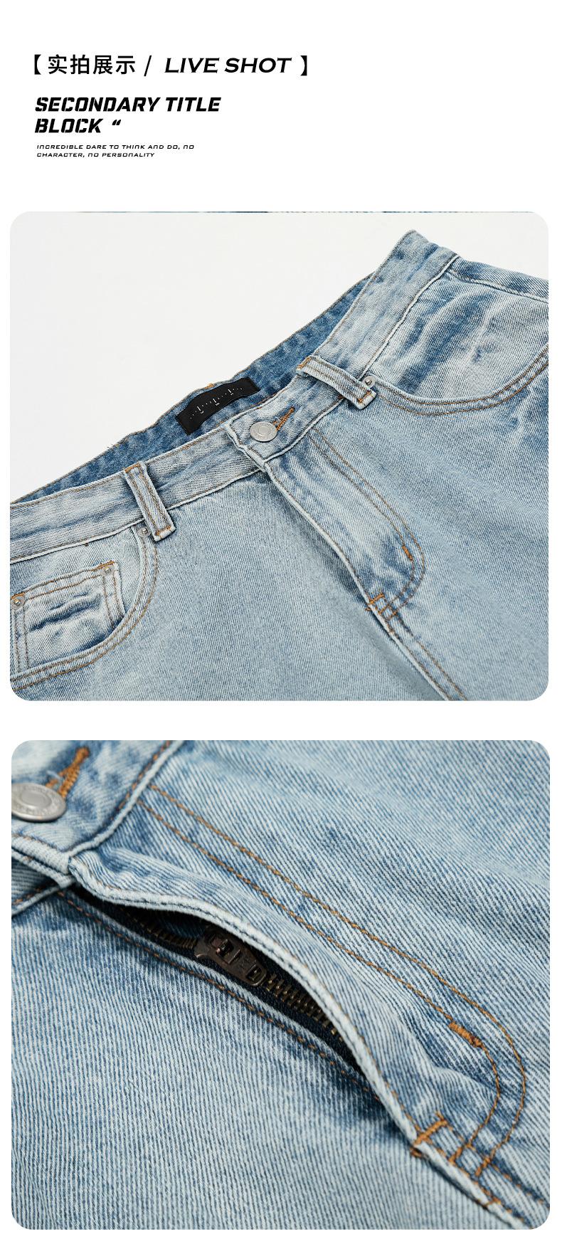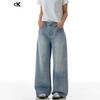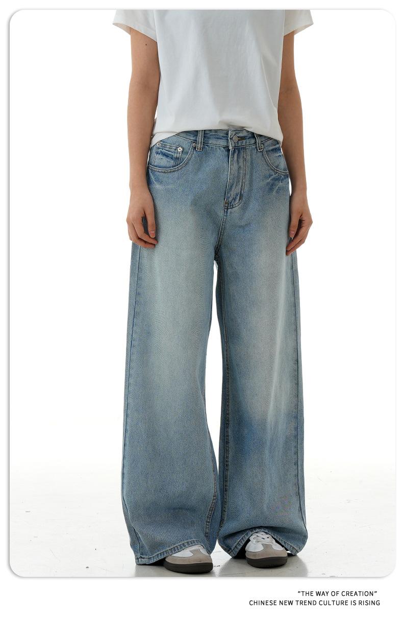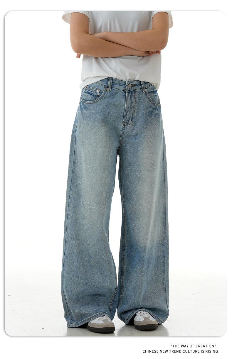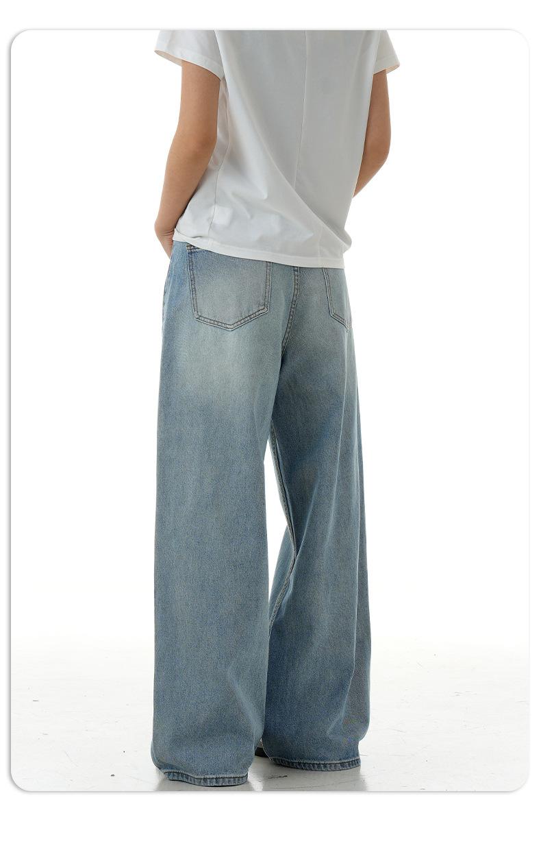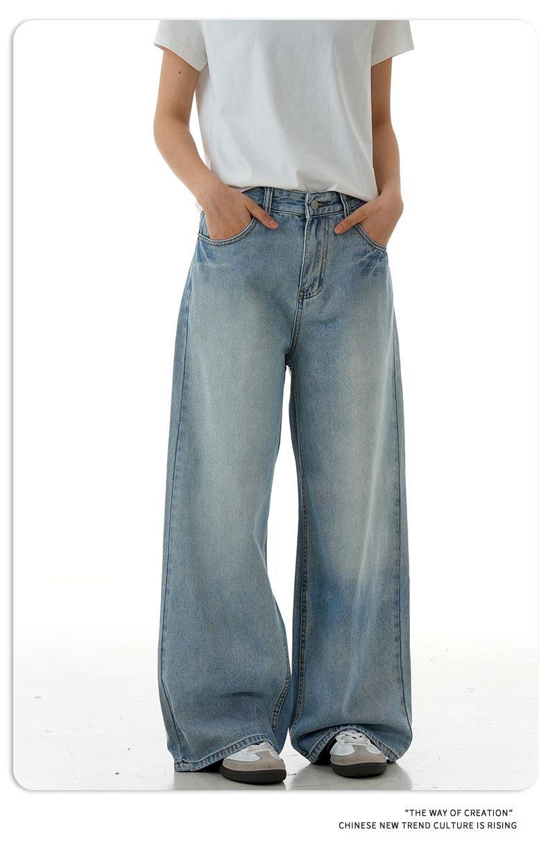 Jeans Rectos 11Kn Azul Lavado Americano para Hombre y Mujer Retro Desgastado Estéreo Adelgazante Look Suelto Casual Pantalones de Pierna Ancha