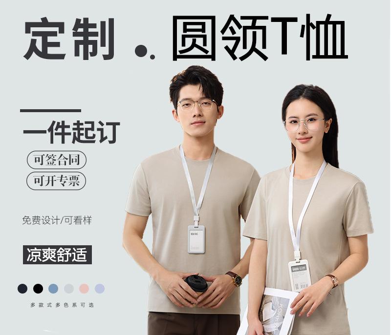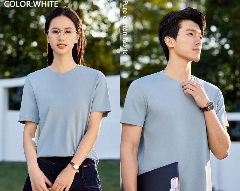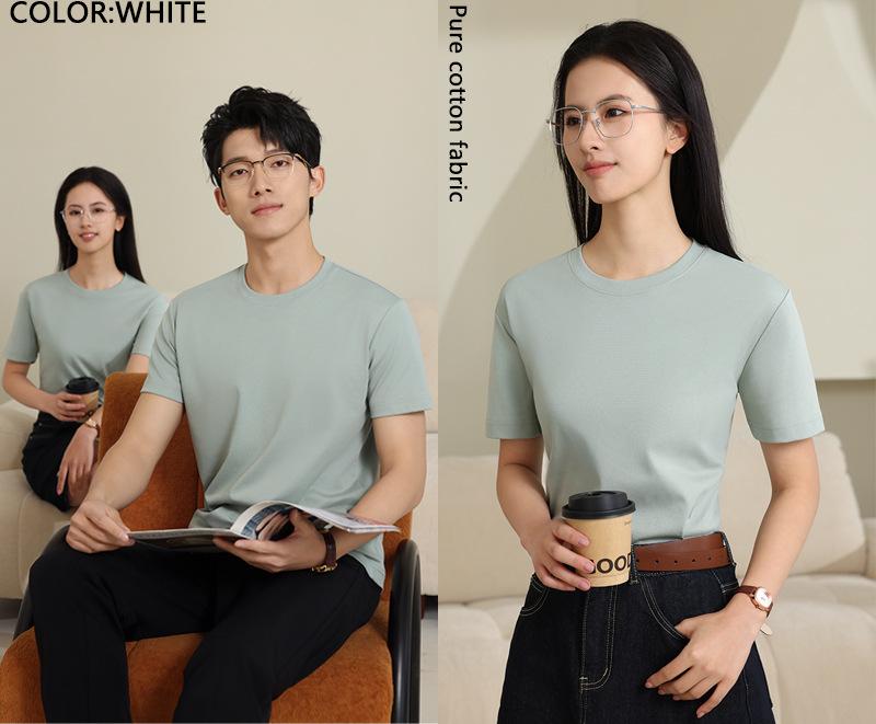 Camiseta de Manga Corta y Cuello Redondo de Algodón Amoniacal Líquido de Lujo Ligero de Alta Gama Sin Planchar Transpirable para Hombre Camiseta Publicitaria Estampado Personalizado Logotipo Bordado