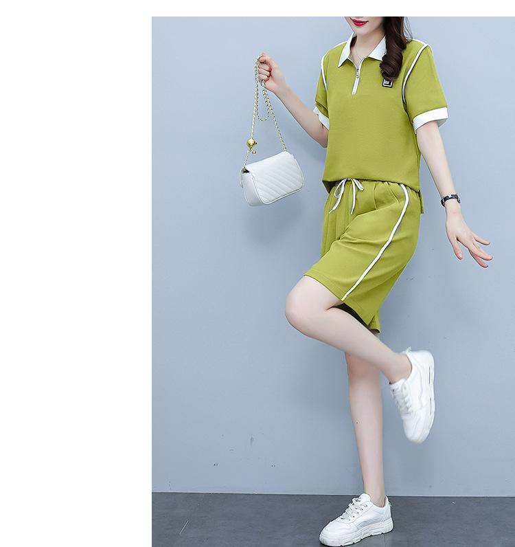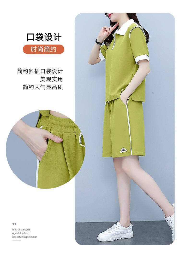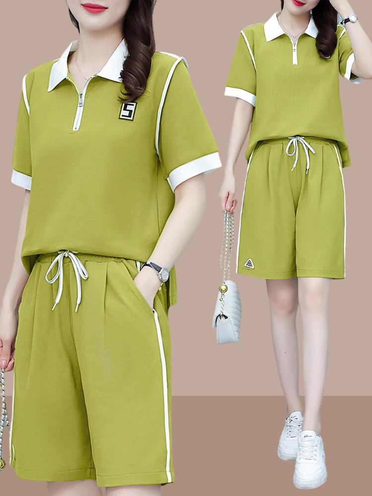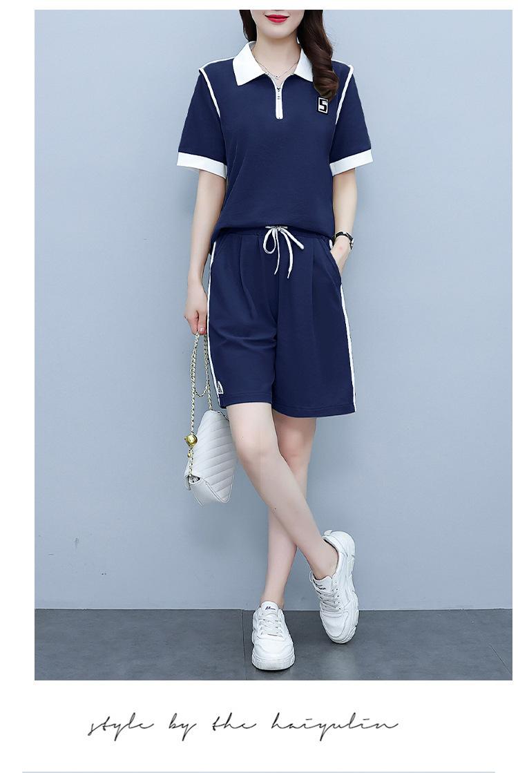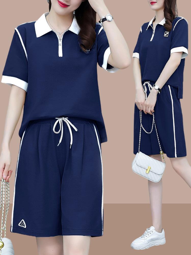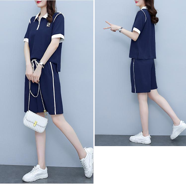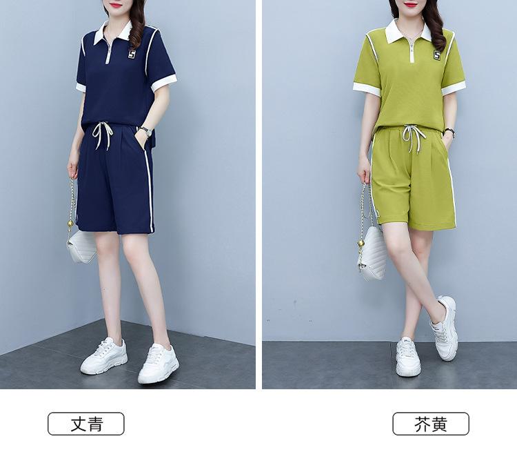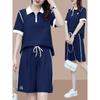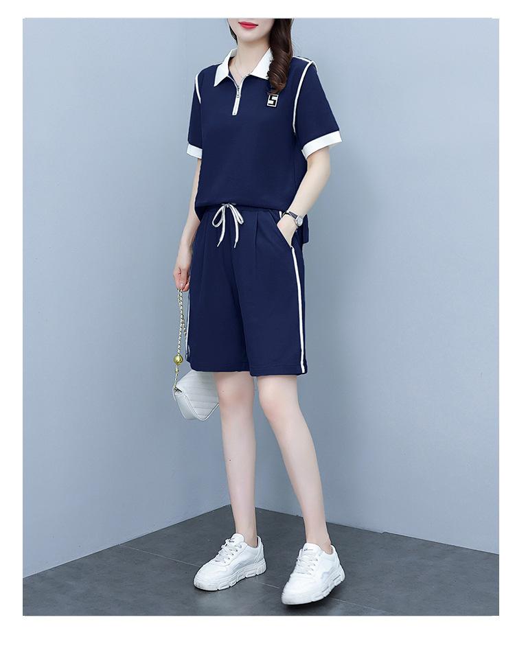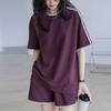 Traje deportivo casual para mujer 2023 verano nueva moda holgado lar costuras de color en contraste manga corta shorts conjunto de dos piezas