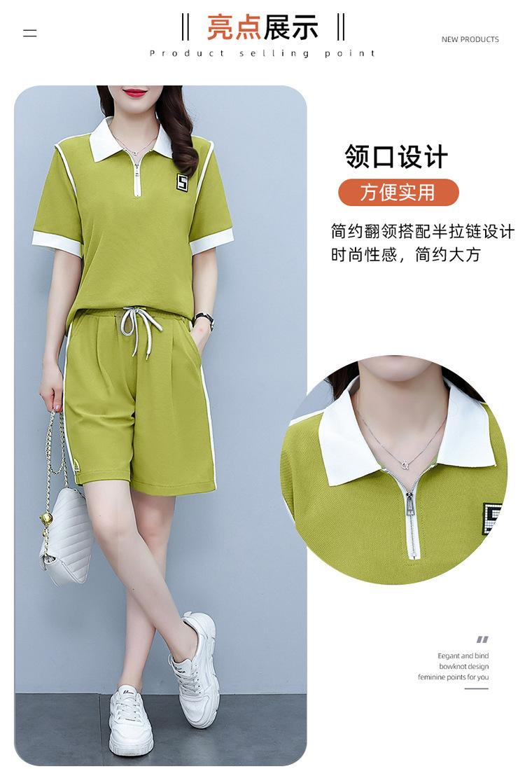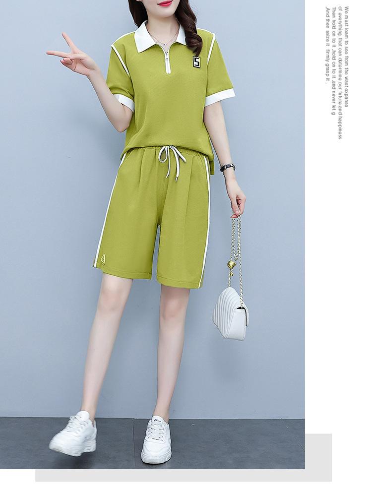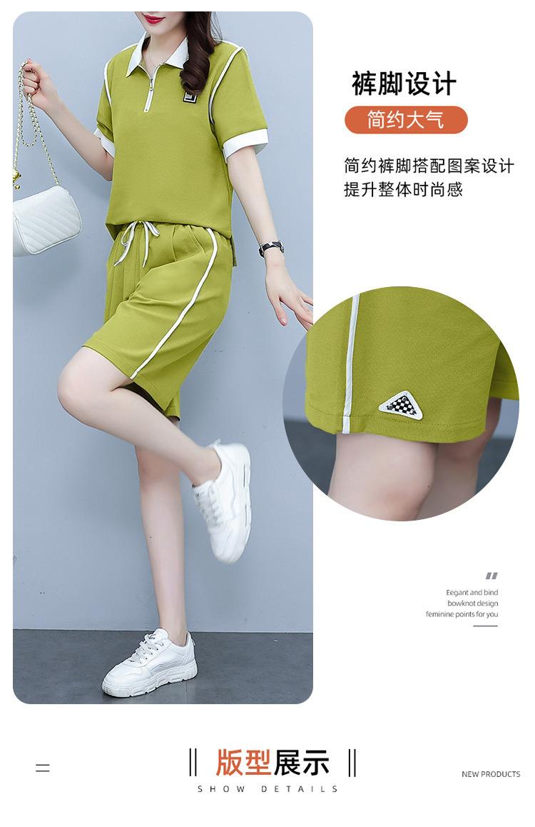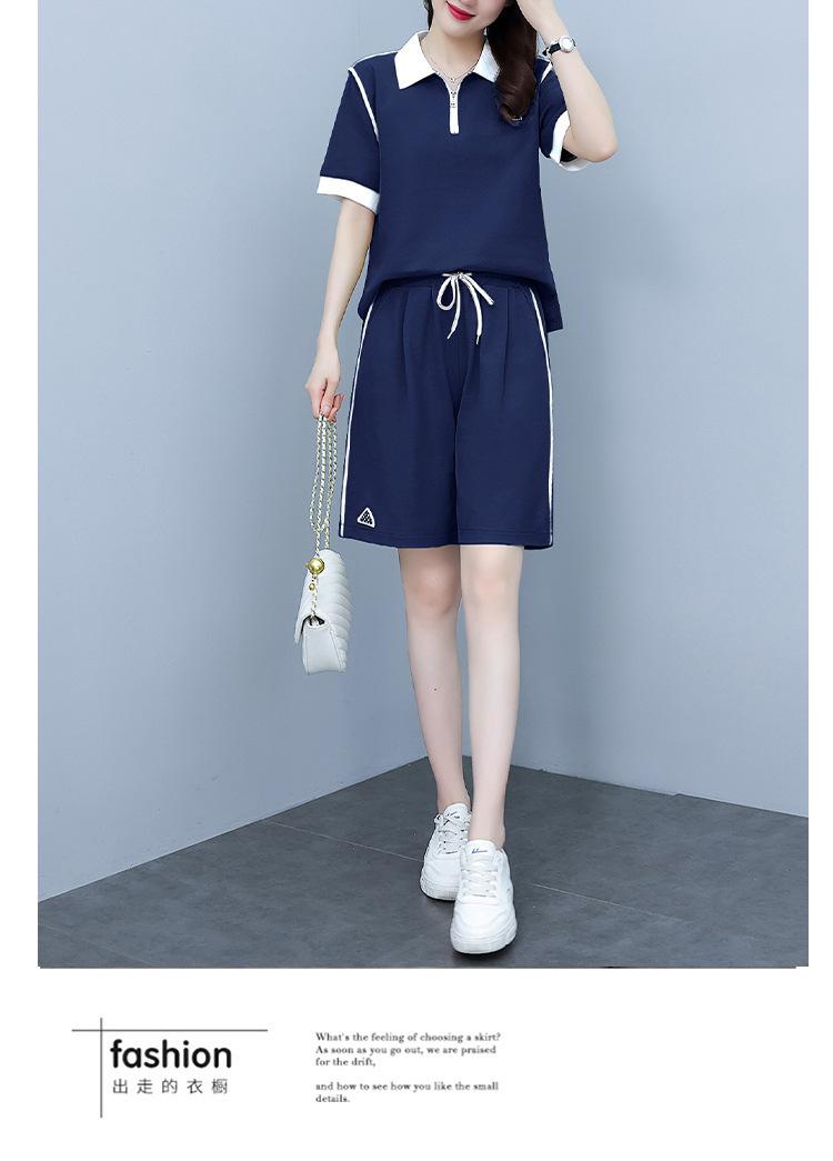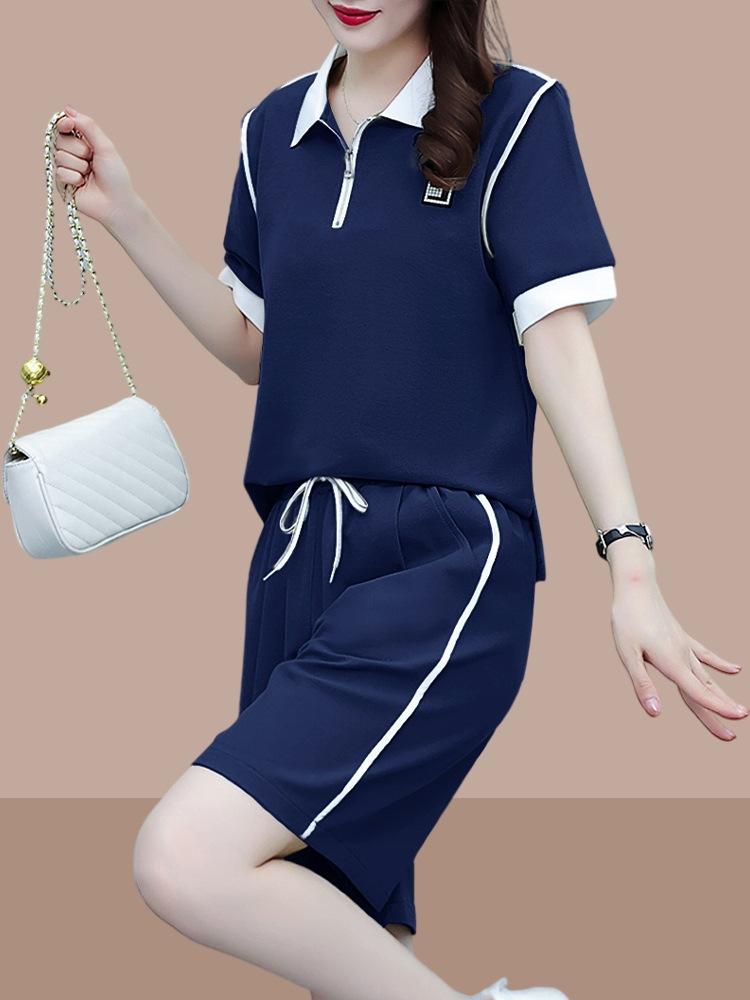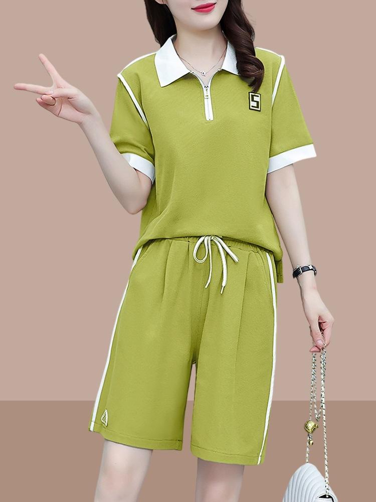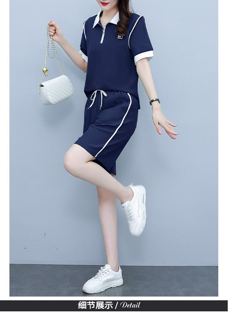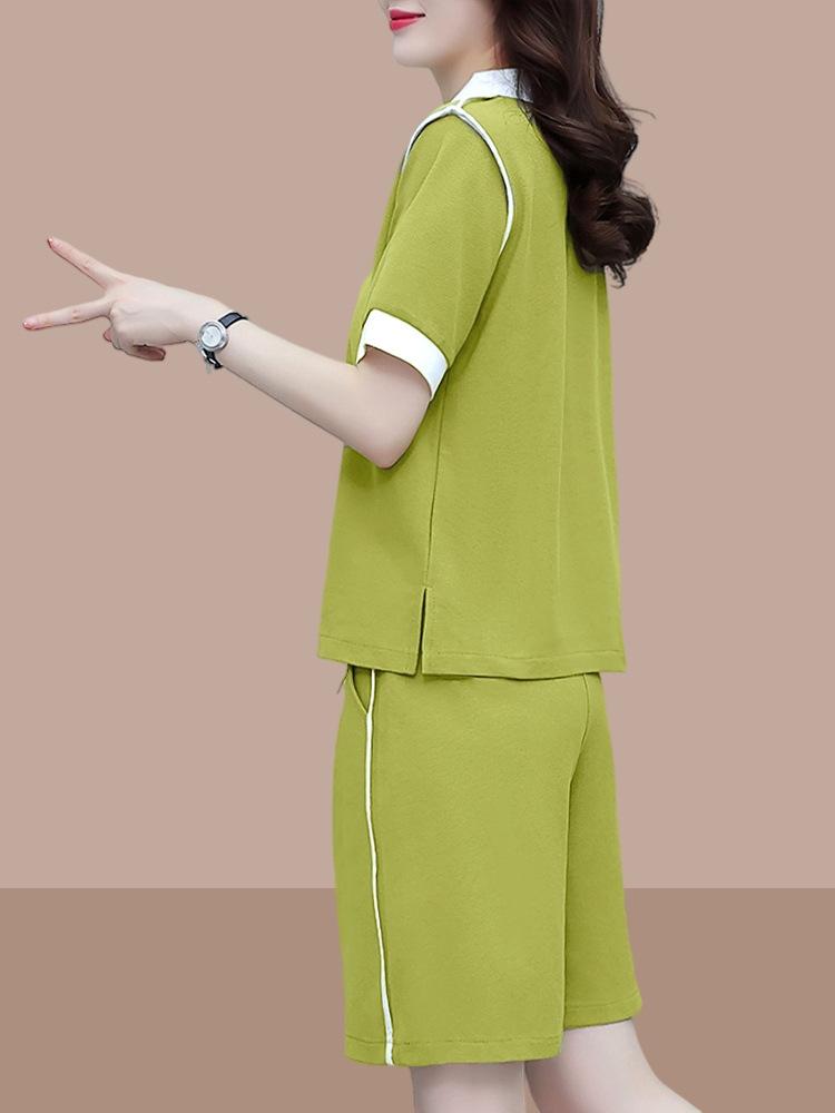 Traje deportivo casual para mujer 2023 verano nueva moda holgado lar costuras de color en contraste manga corta shorts conjunto de dos piezas