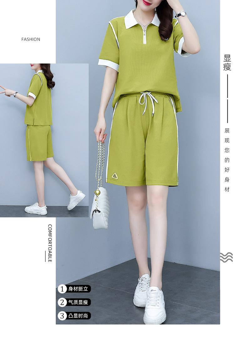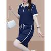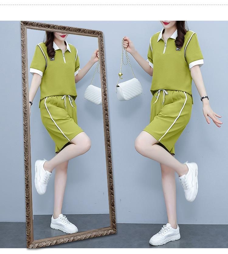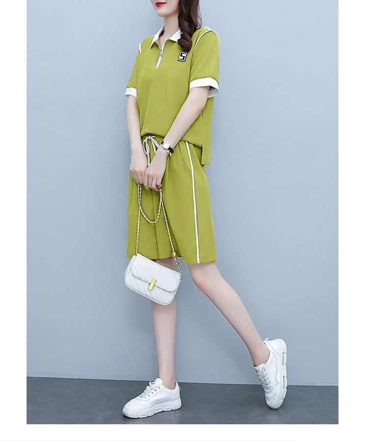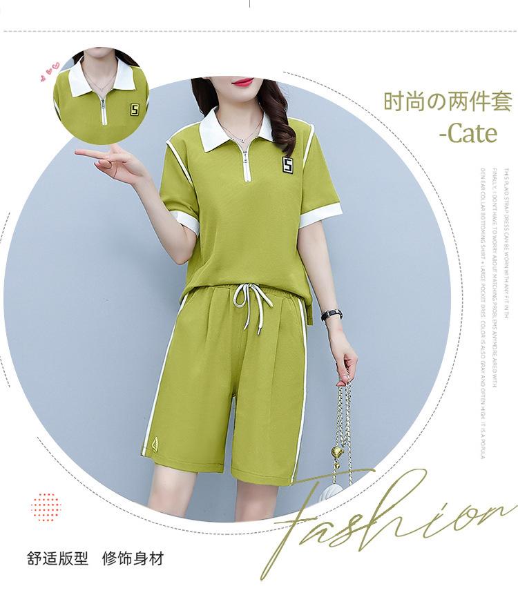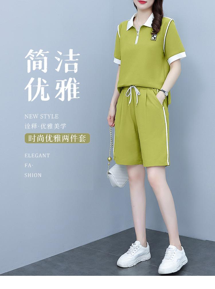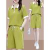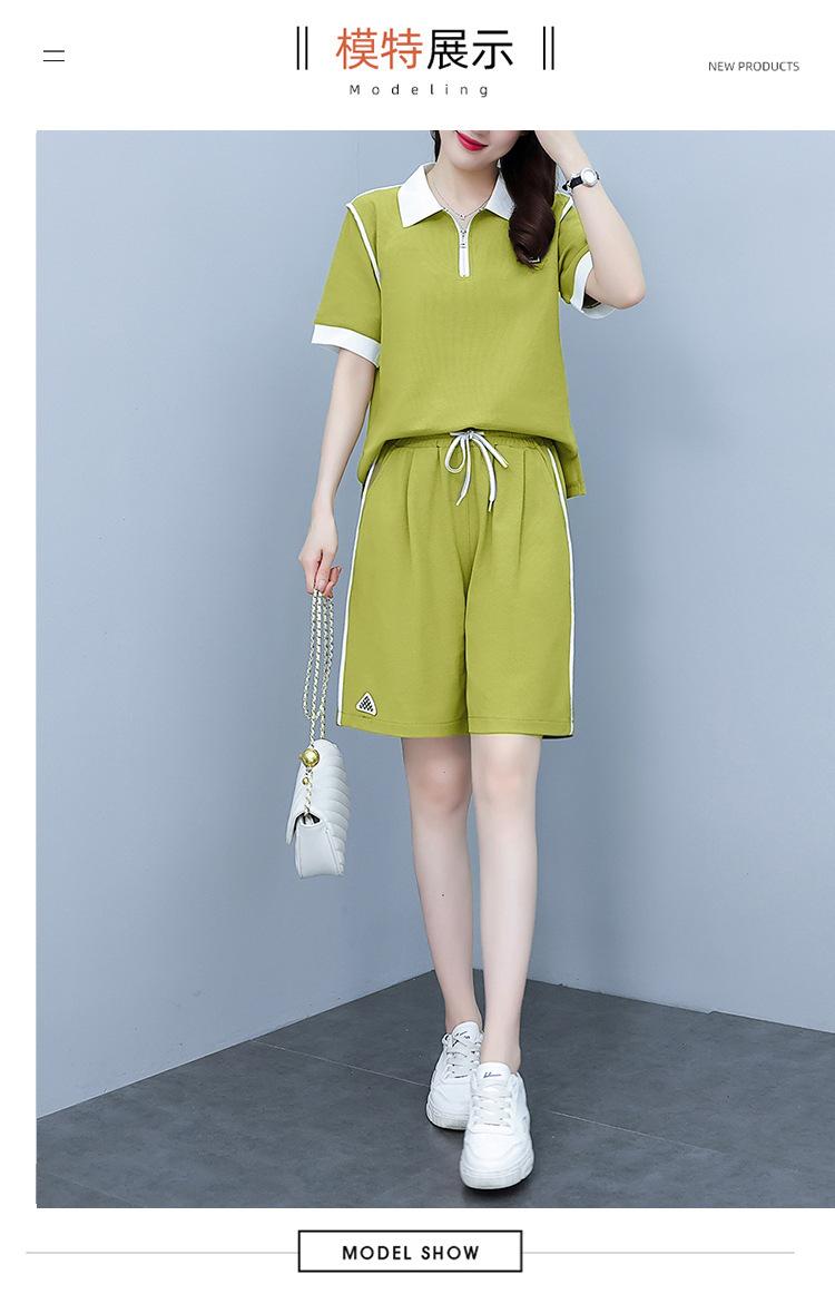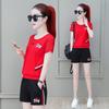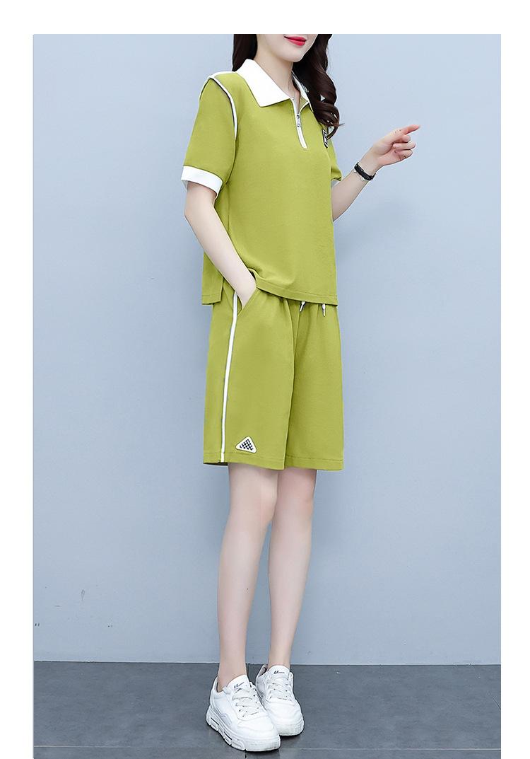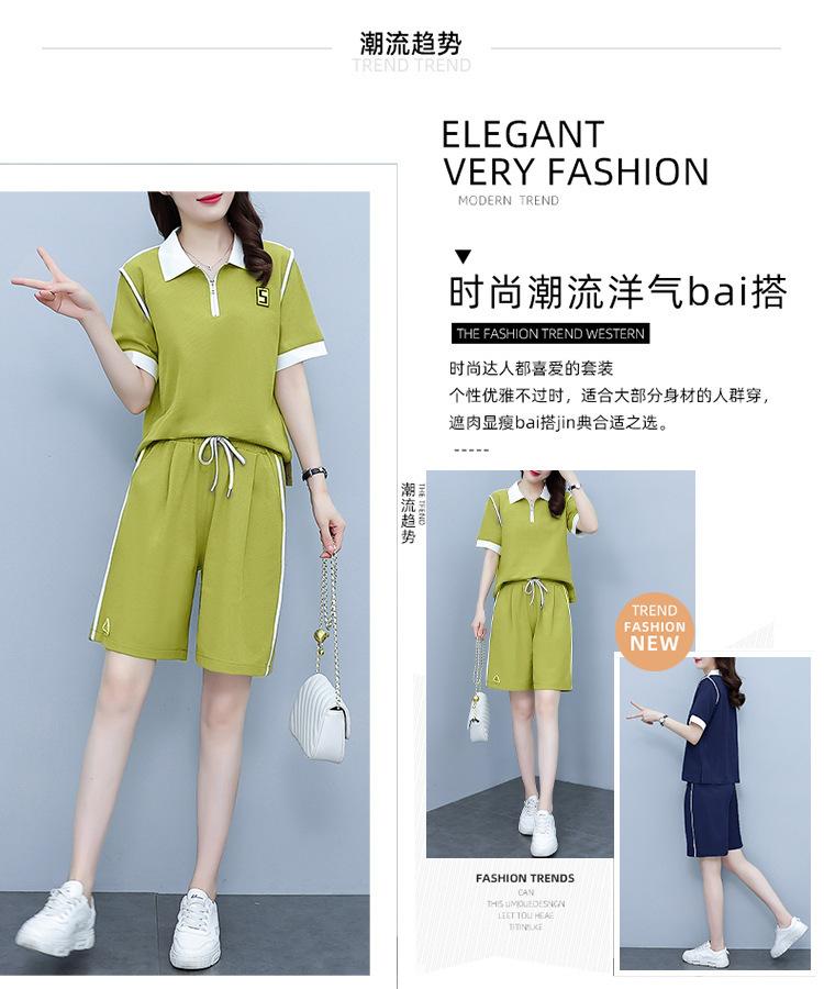 Traje deportivo casual para mujer 2023 verano nueva moda holgado lar costuras de color en contraste manga corta shorts conjunto de dos piezas