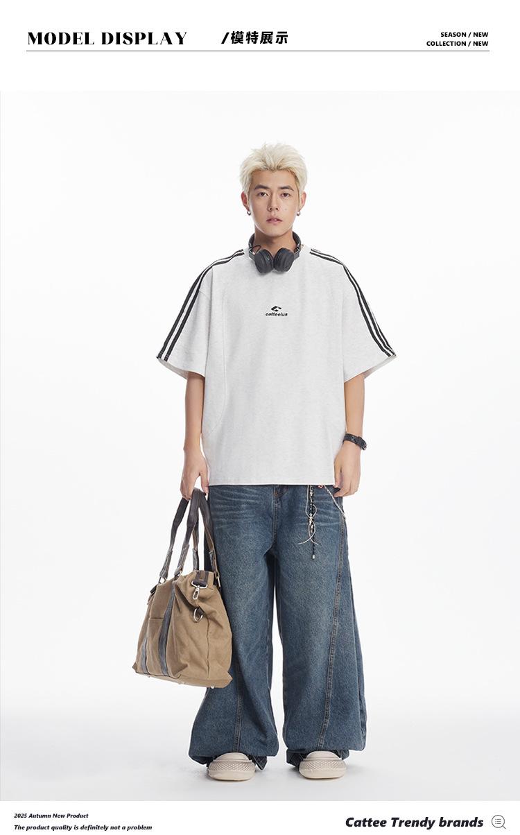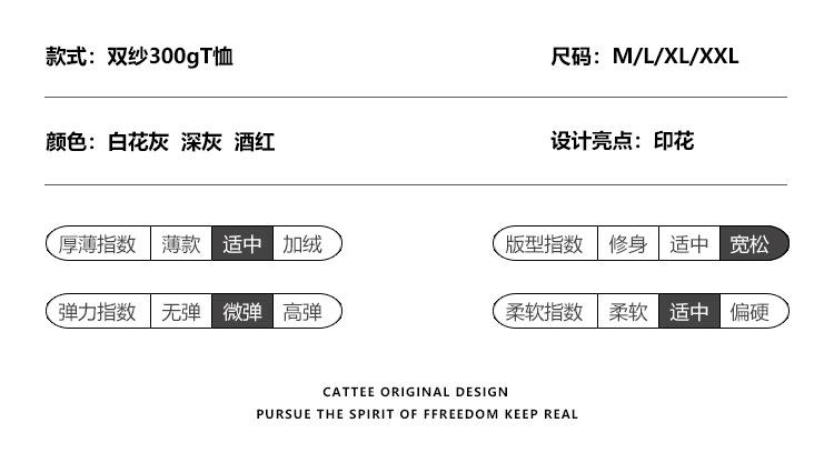 Camiseta CATTEE de algodón grueso de 300 g para hombre, con estampado de letras, holgada, combinable y de manga corta para hombre y mujer.