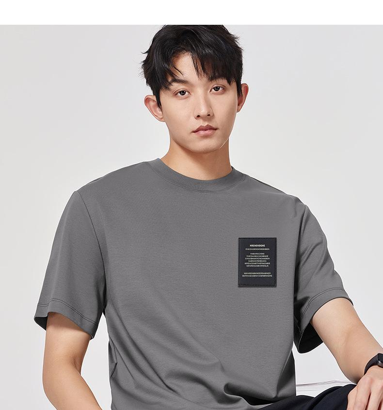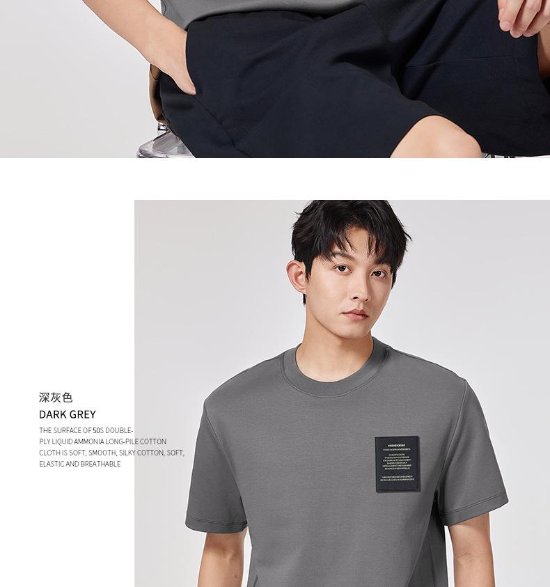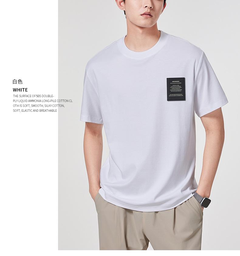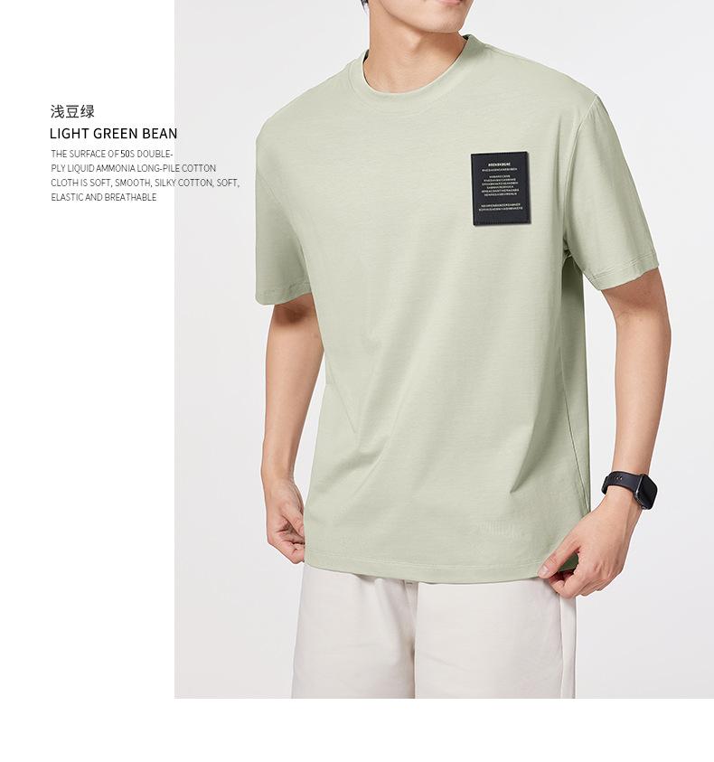 [Algodón Hielo Oxígeno T] Diseño Insignia Retro Camiseta Manga Corta Marca de Moda para Hombre 2025 Verano Mercerizado Amoníaco Líquido Top Fresco