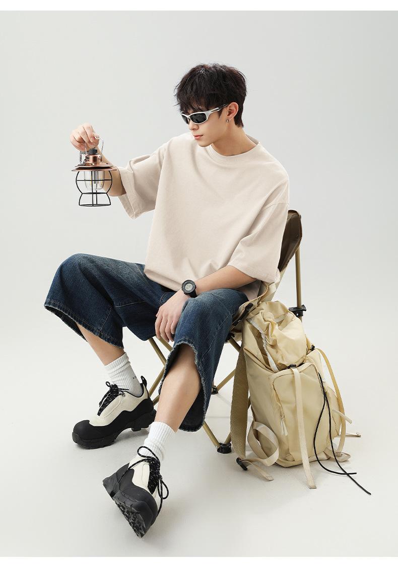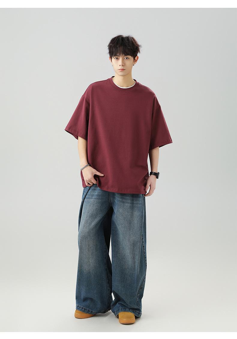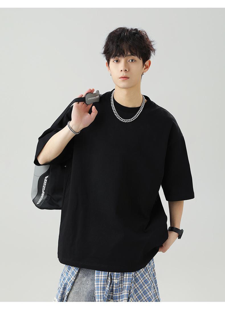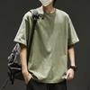 Camiseta japonesa holgada de algodón de manga corta para hombre, novedad de verano 2025, camiseta básica de cuello redondo de color liso, camiseta básica para pareja