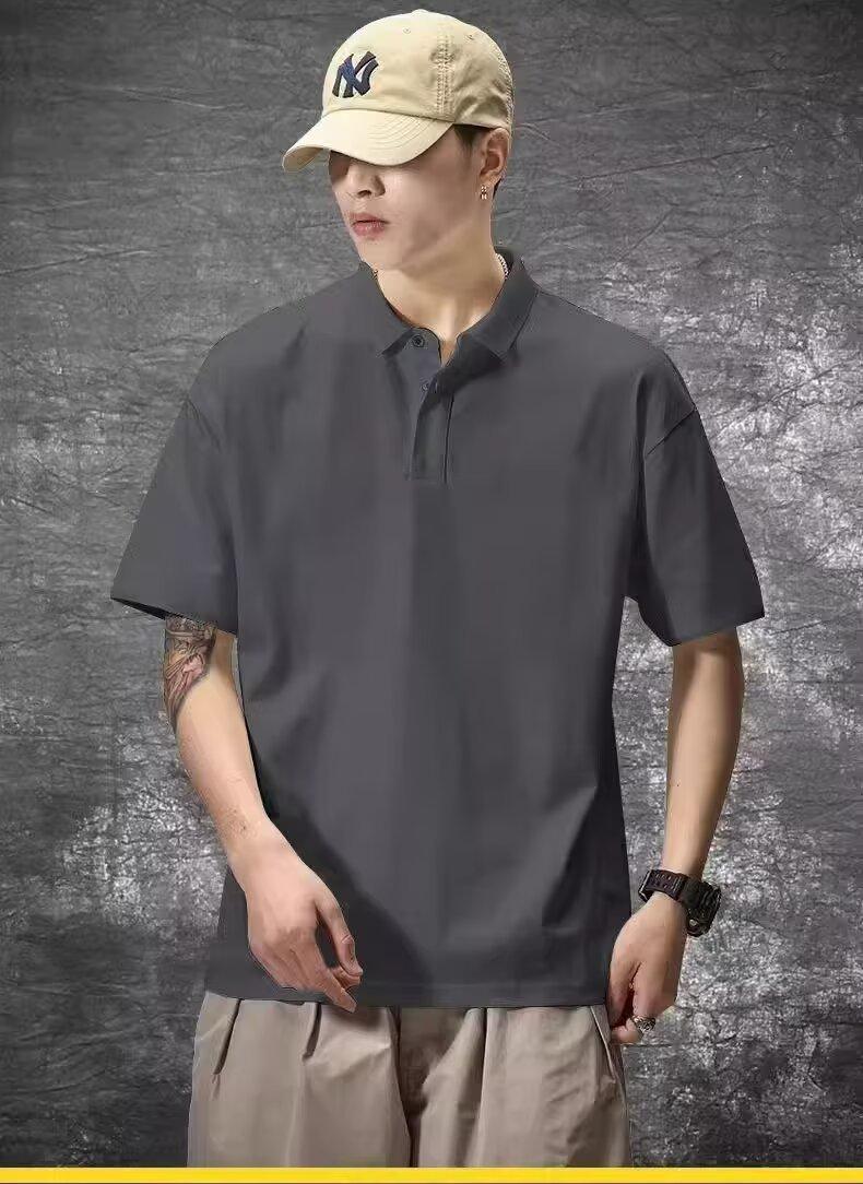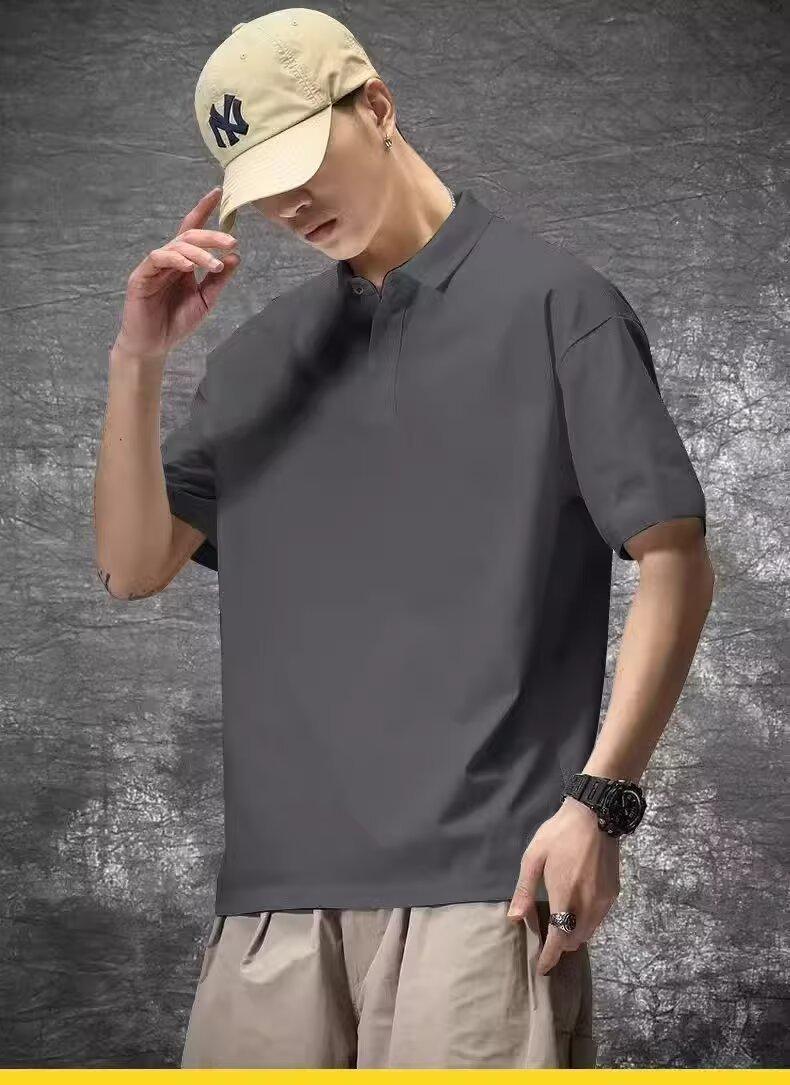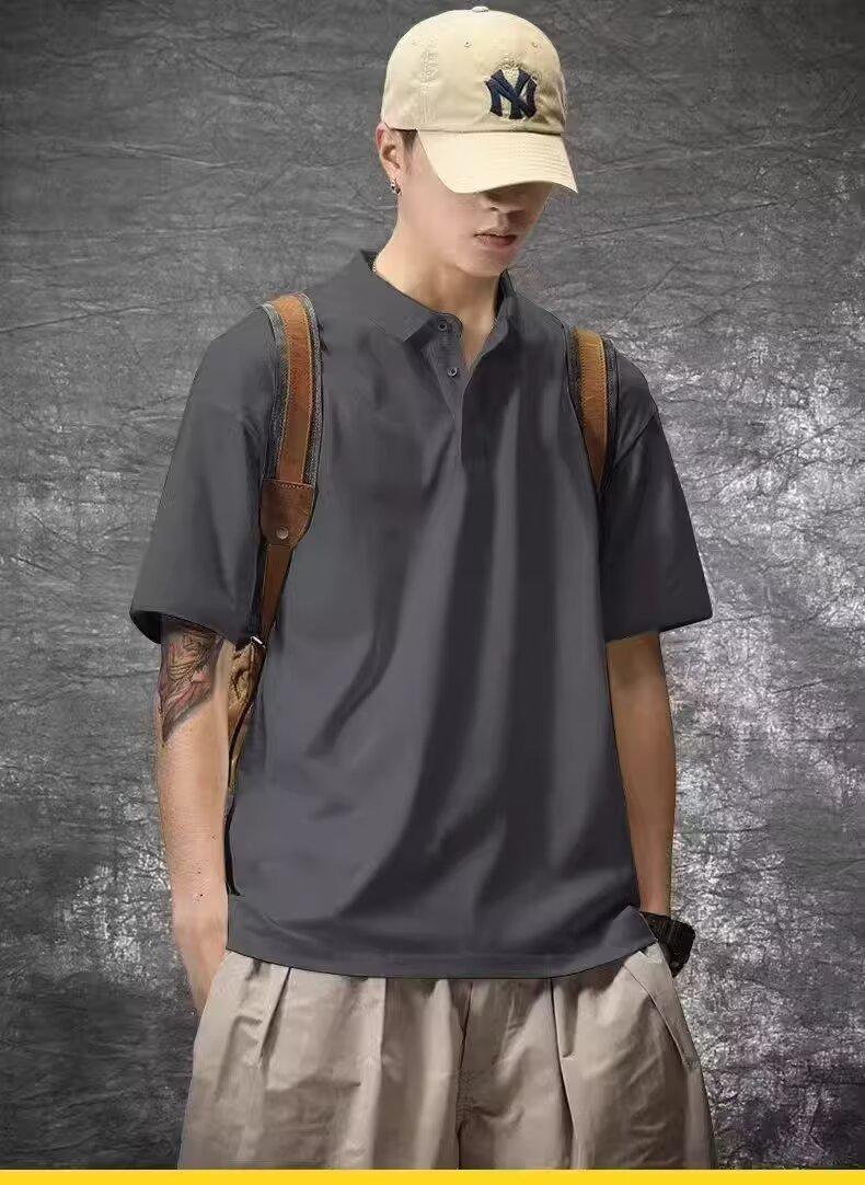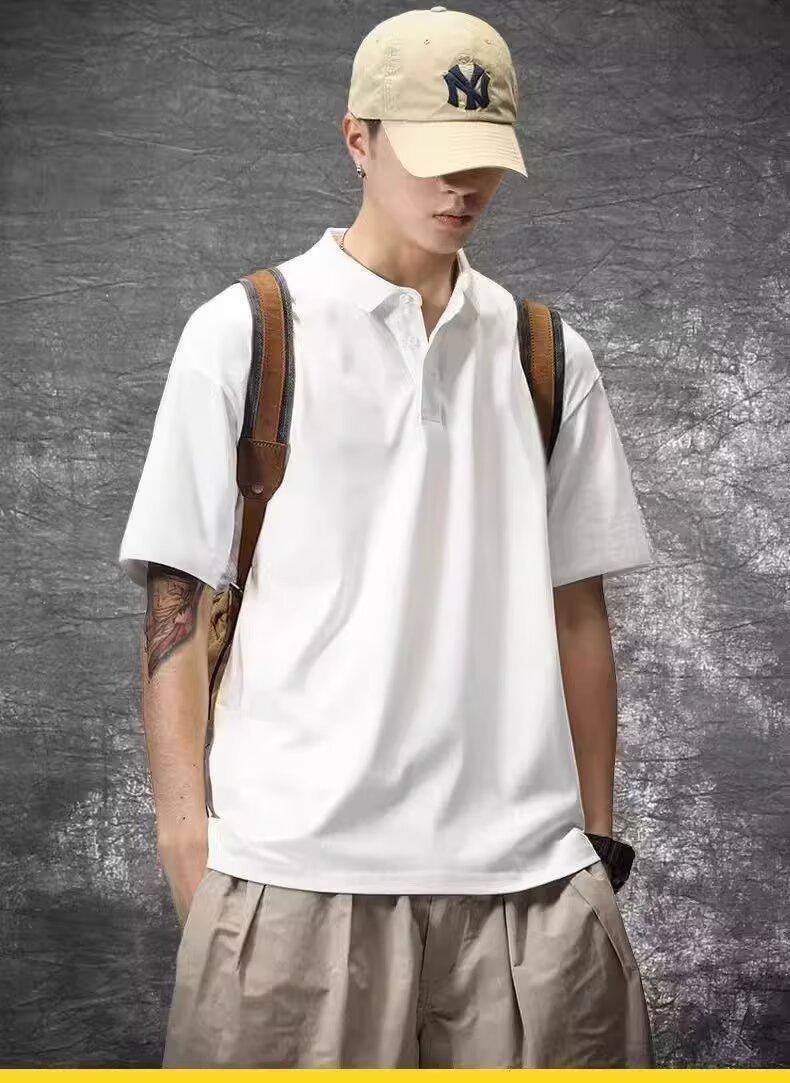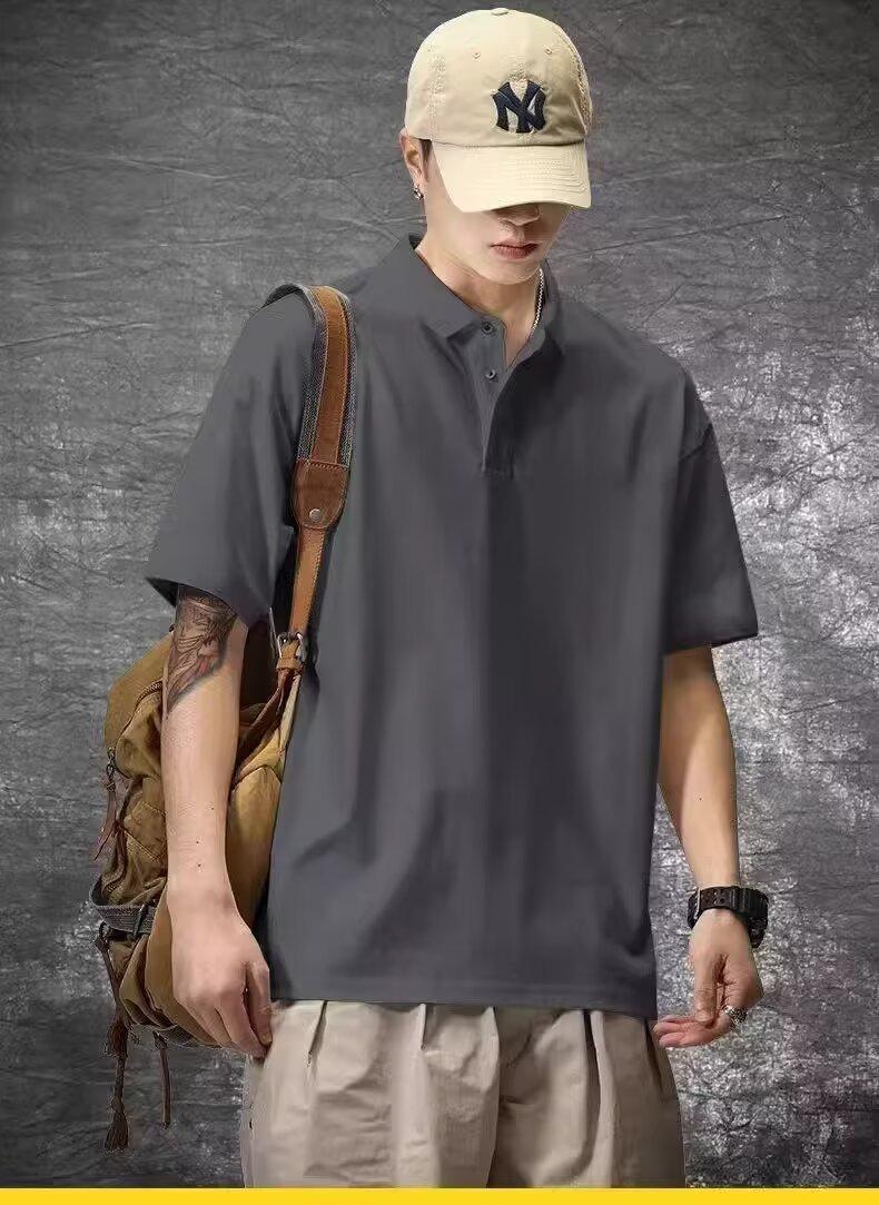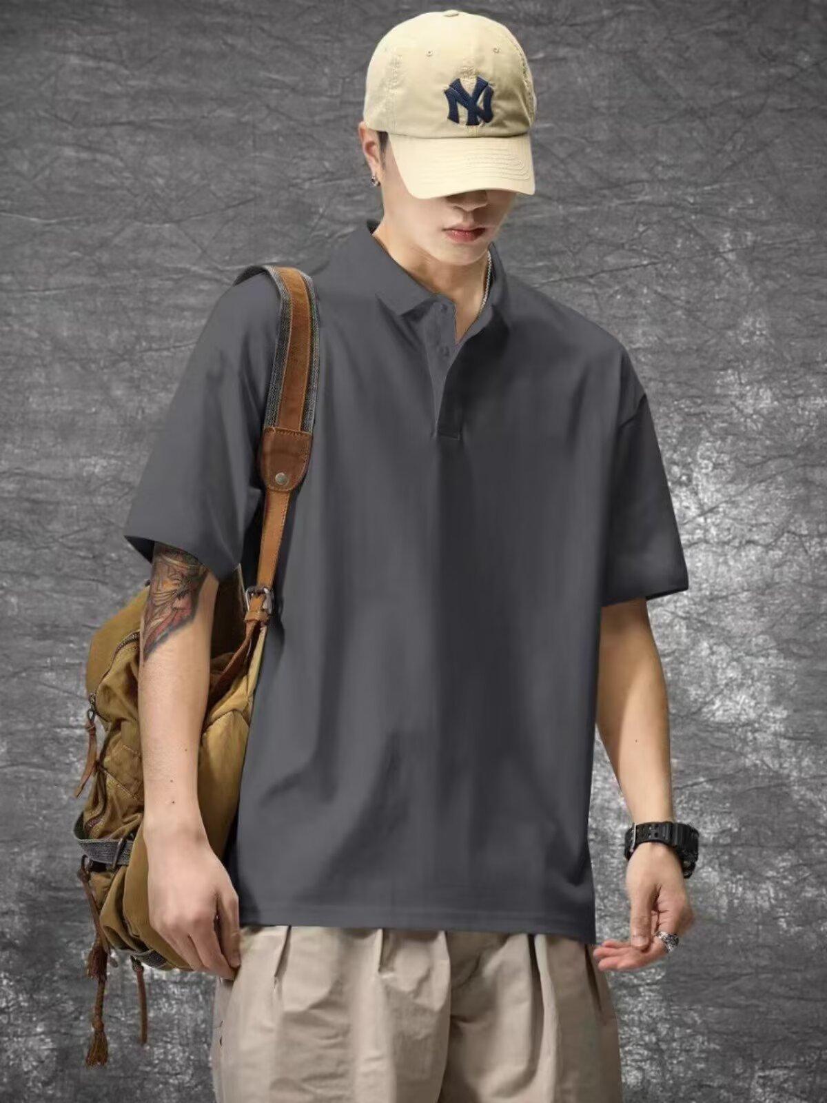 Playera de Manga Corta Casual y a la Moda para Hombre Primavera y Verano 2025 Top Versátil de Color Puro en Tendencia Camisa Polo de Solapa Holgada para Hombre