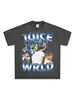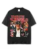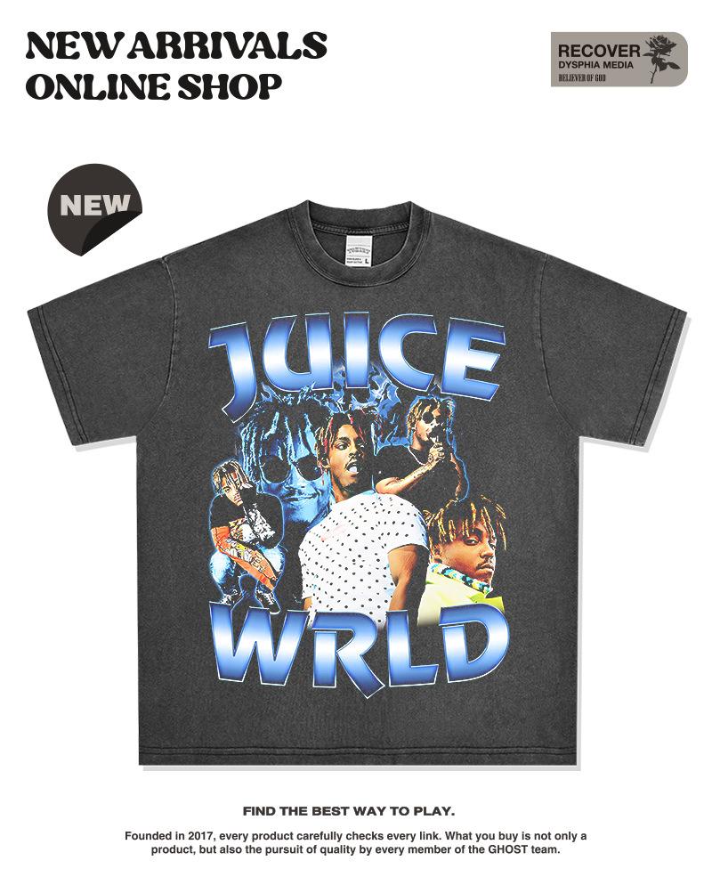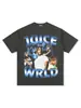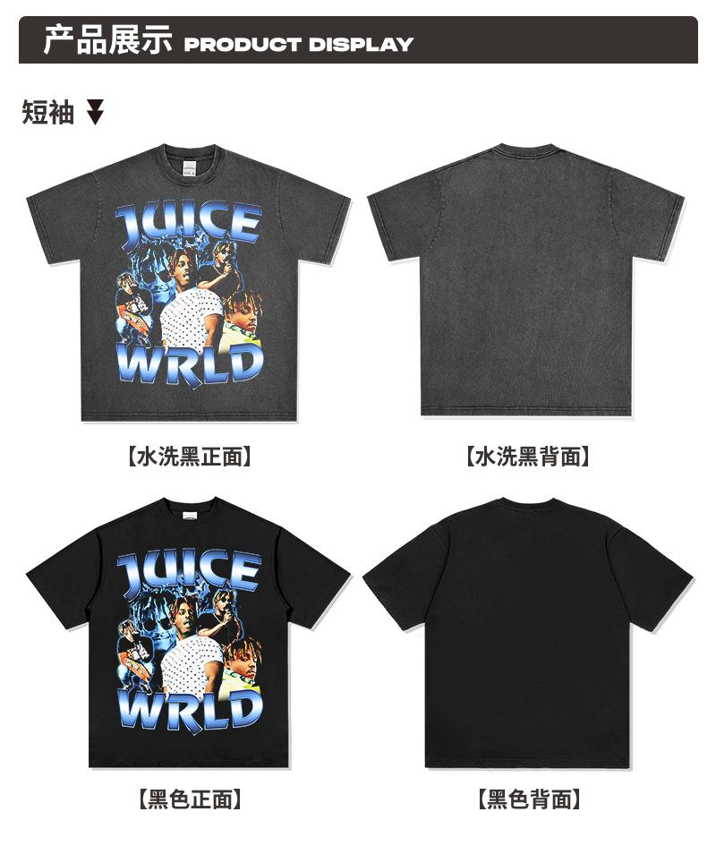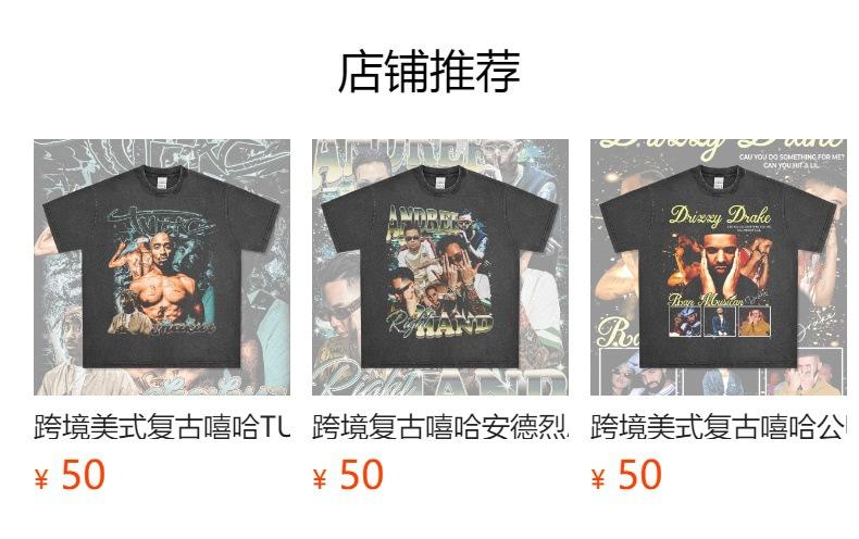 Camiseta de Manga Corta Pesada Estampada Retro Hip-hop Transfronteriza Cuello Redondo Suéter con Capucha