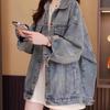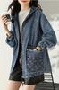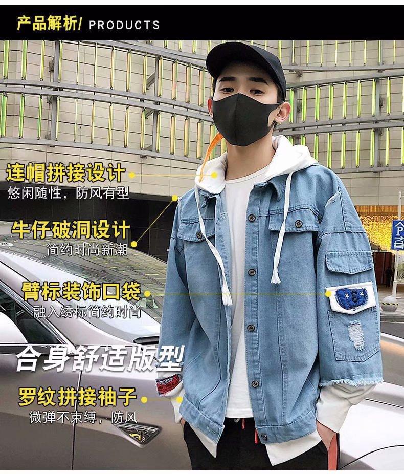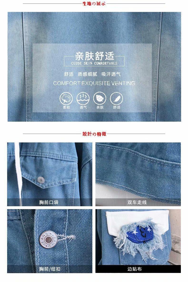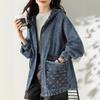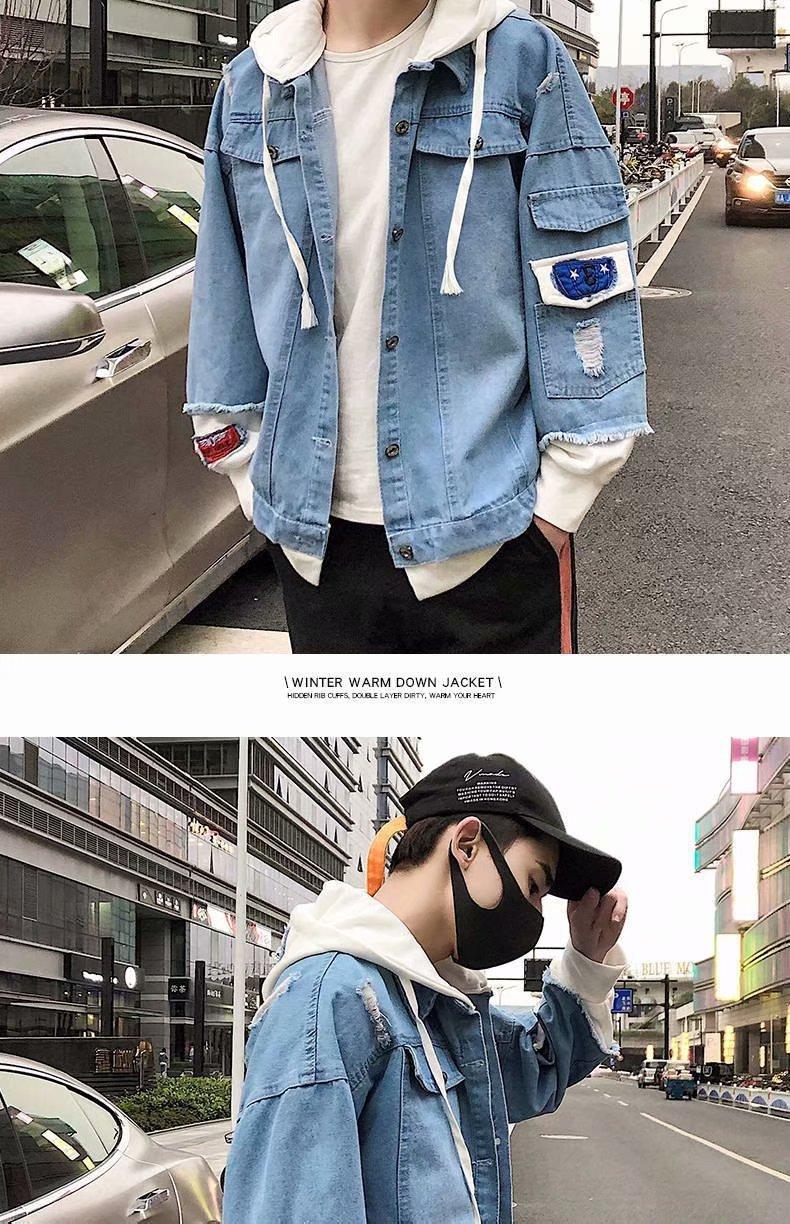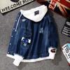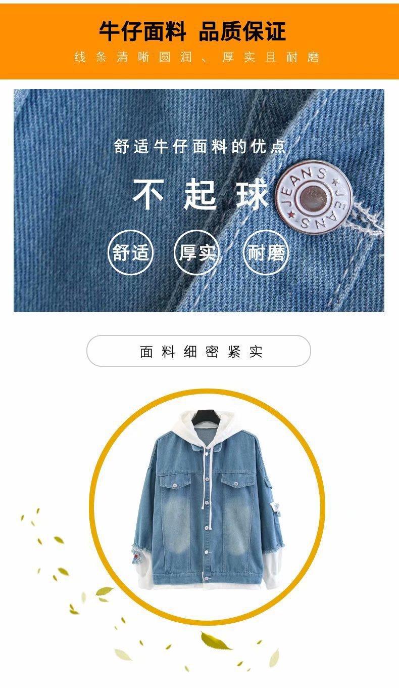 Chaqueta de mezclilla de dos piezas falsas con costuras de primavera y otoño, moda coreana, casual, versátil, holgada, ropa de trabajo, con capucha, casual