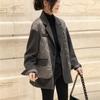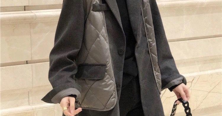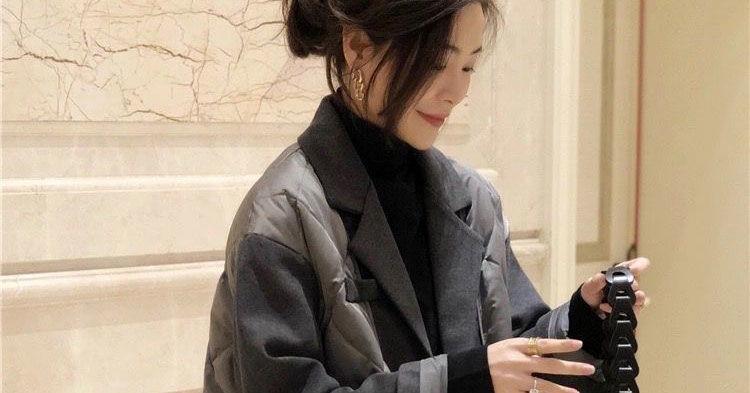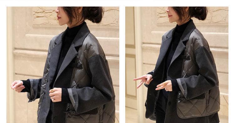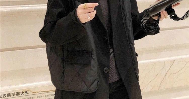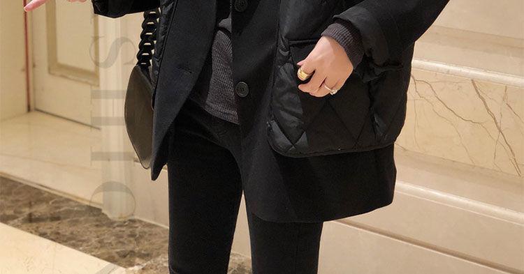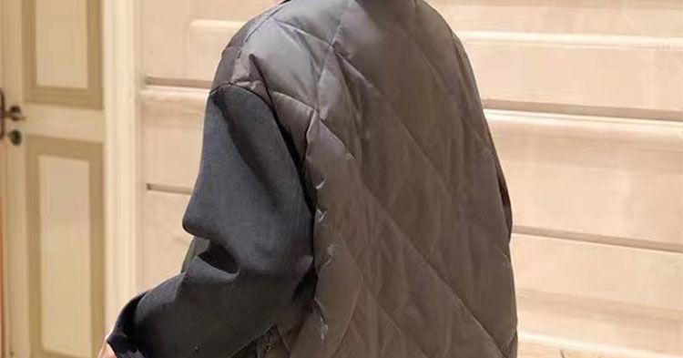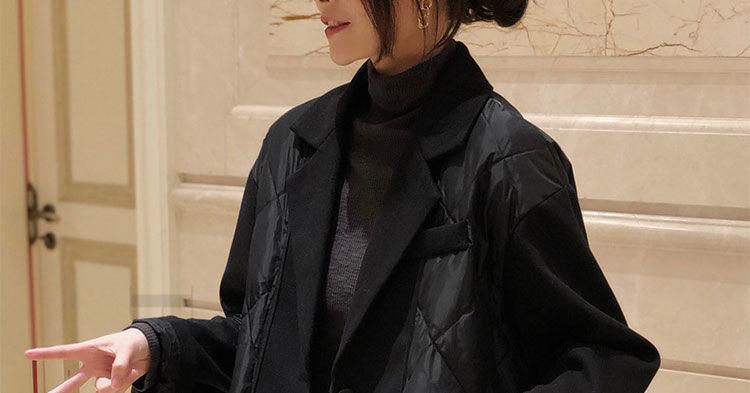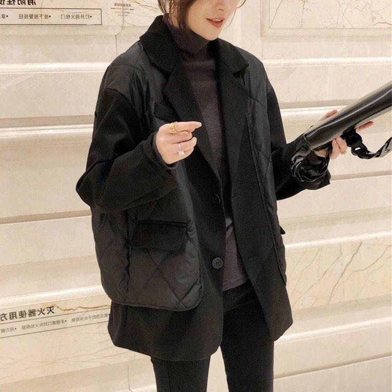 Abrigo de Algodón Negro Falso de Dos Piezas con Cuello Traje Abrigo de Algodón para Mujer Estilo Coreano Costuras Nuevo Abrigo de Algodón Estación Europea para Primavera 2025