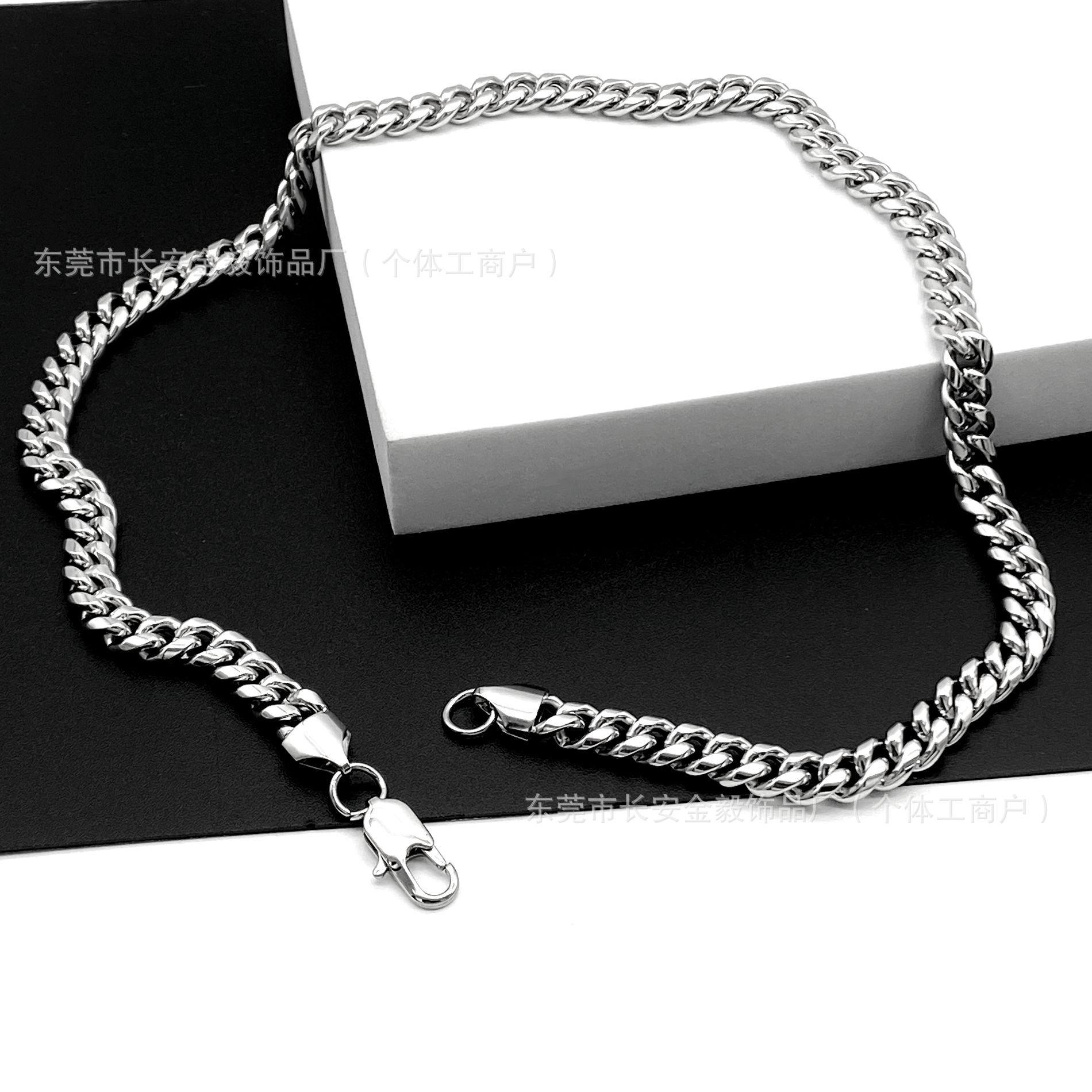Moda europea y americana hip hop acero inoxidable redondo molienda encriptación collar cubano hebilla japonesa acero titanio pulsera para hombre collar al por mayor