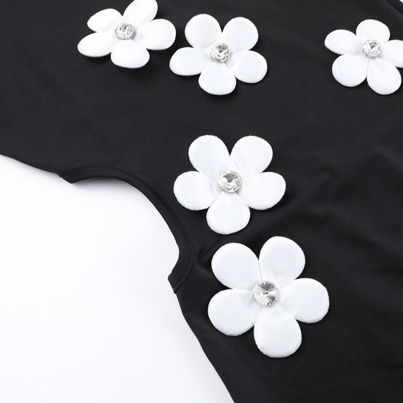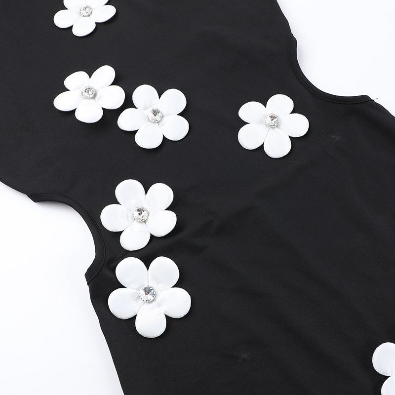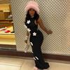 Moda Americana Primavera 2025 Nuevo Cuello Redondo Elegante Ajustado Elegante Diseño de Flores Vestido de Cadera Vestido de Mujer