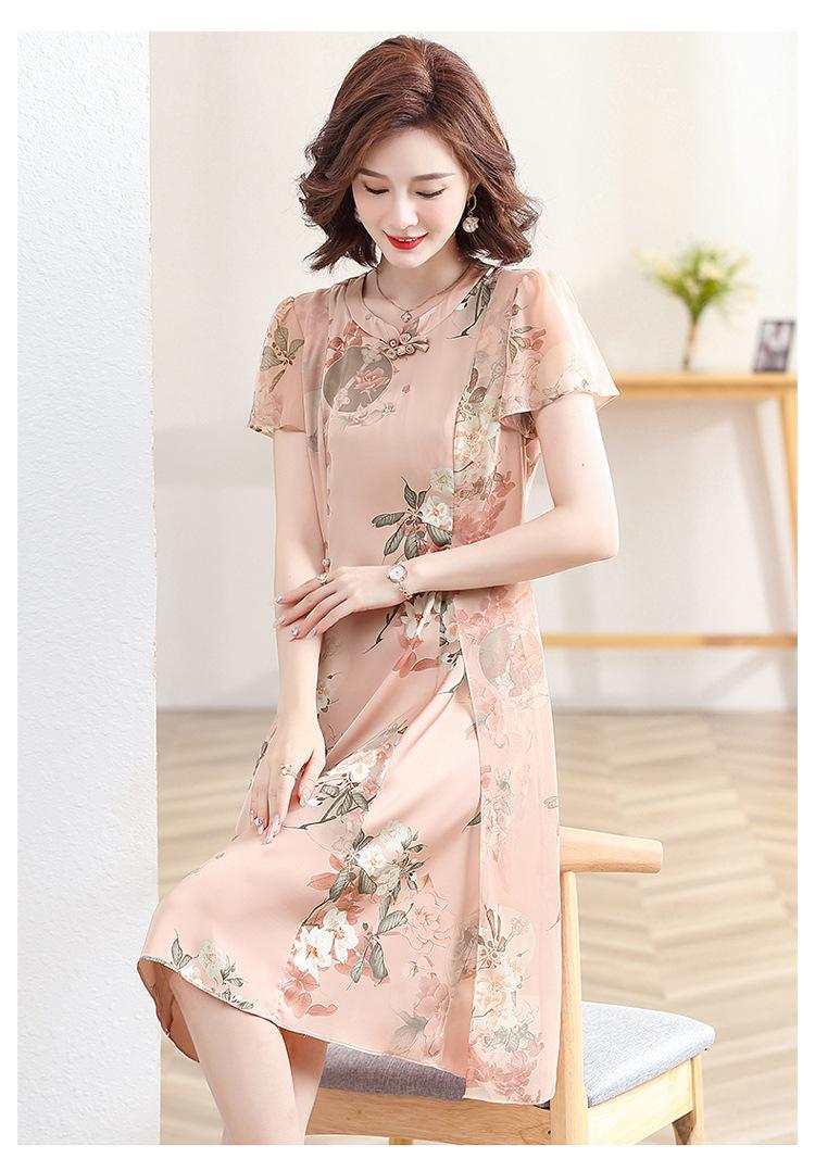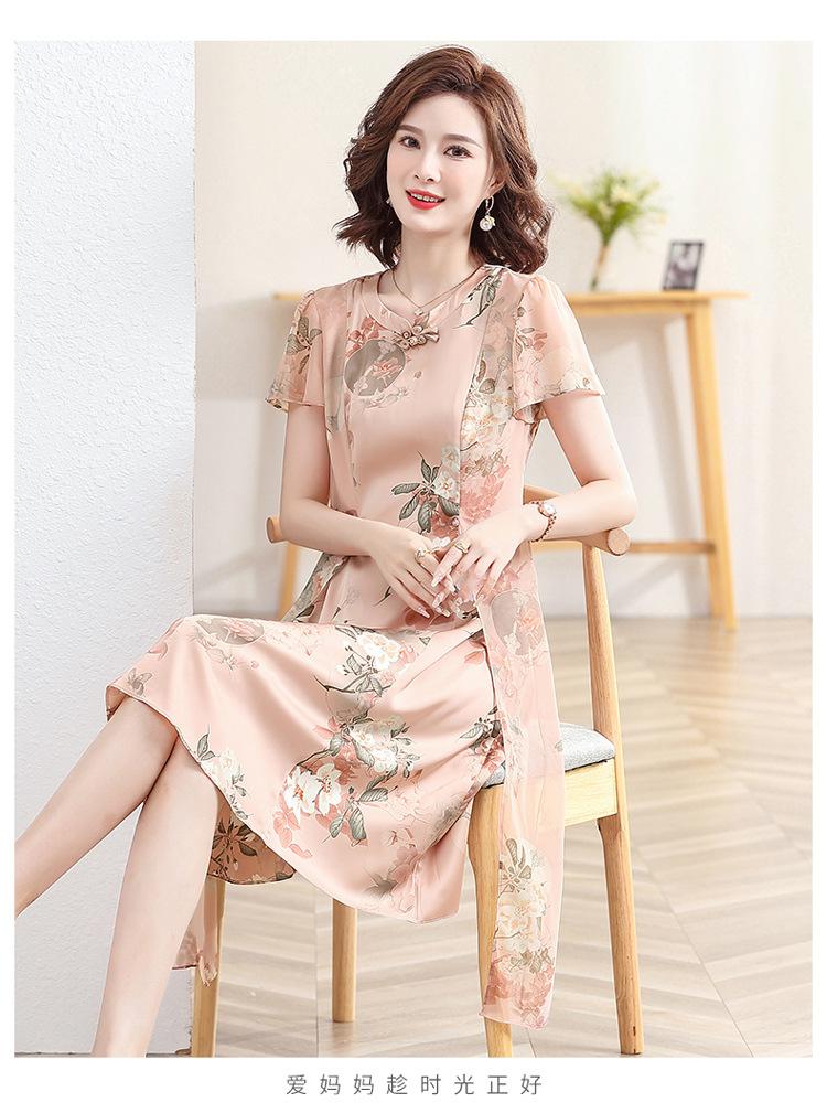 Vestido de gasa de verano para madres de mediana edad, elegante falda cheongsam modificada de estilo occidental de verano para mujeres de mediana edad y mayores