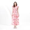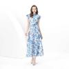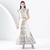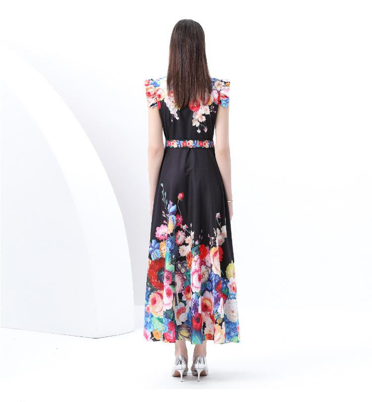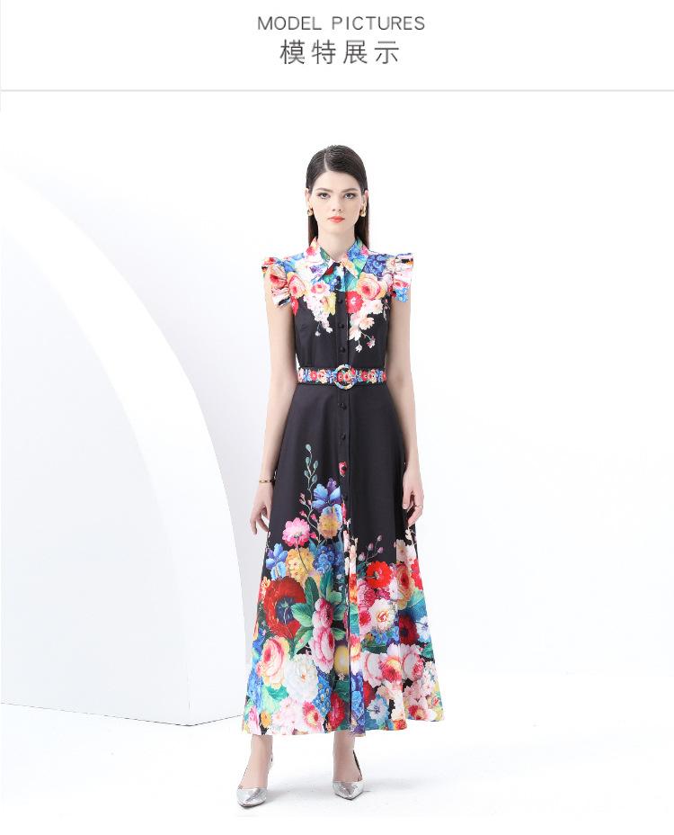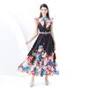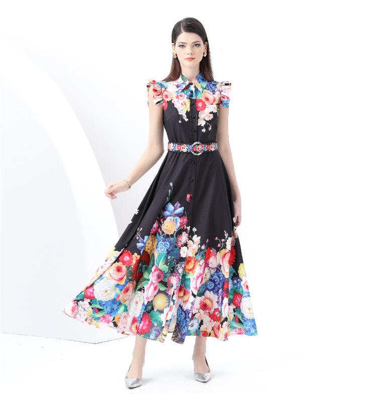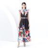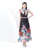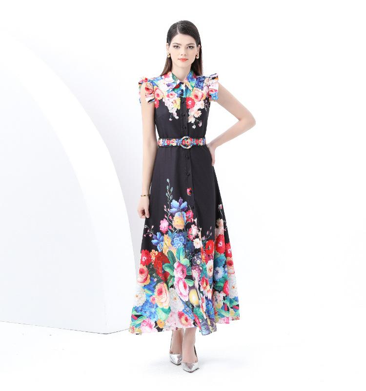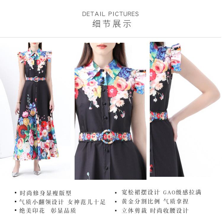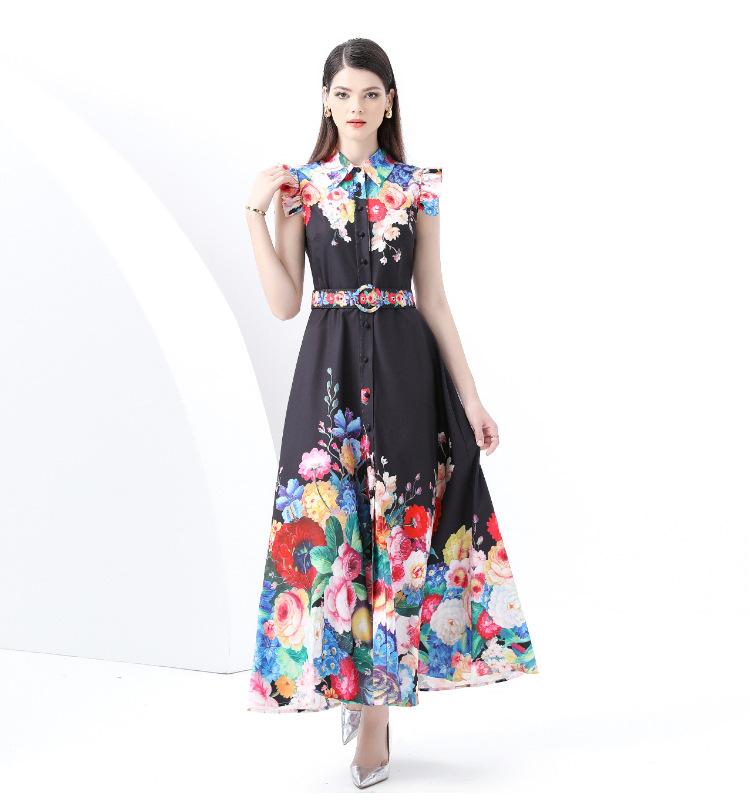 2025 primavera temprana-estilo palaciego solapa sin mangas cintura falda amplia vestido largo estampado