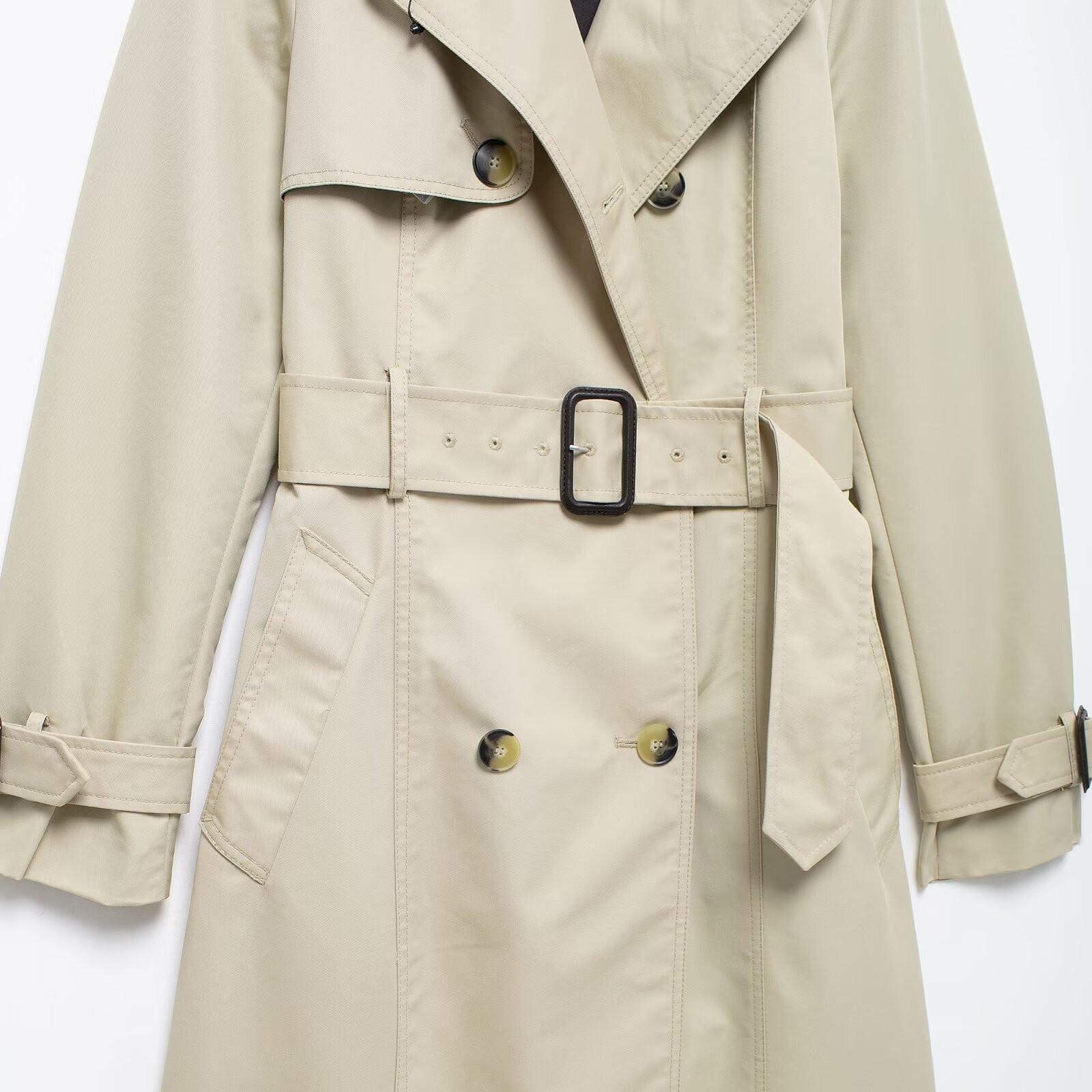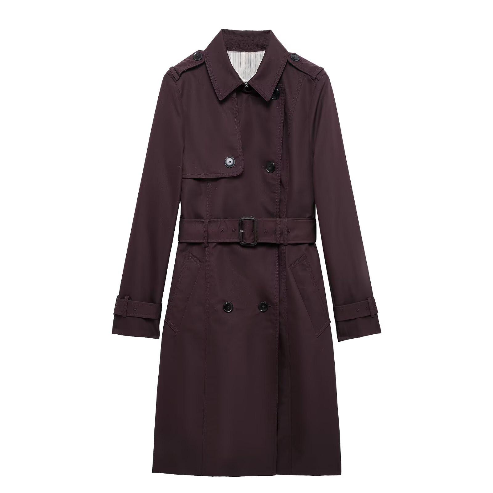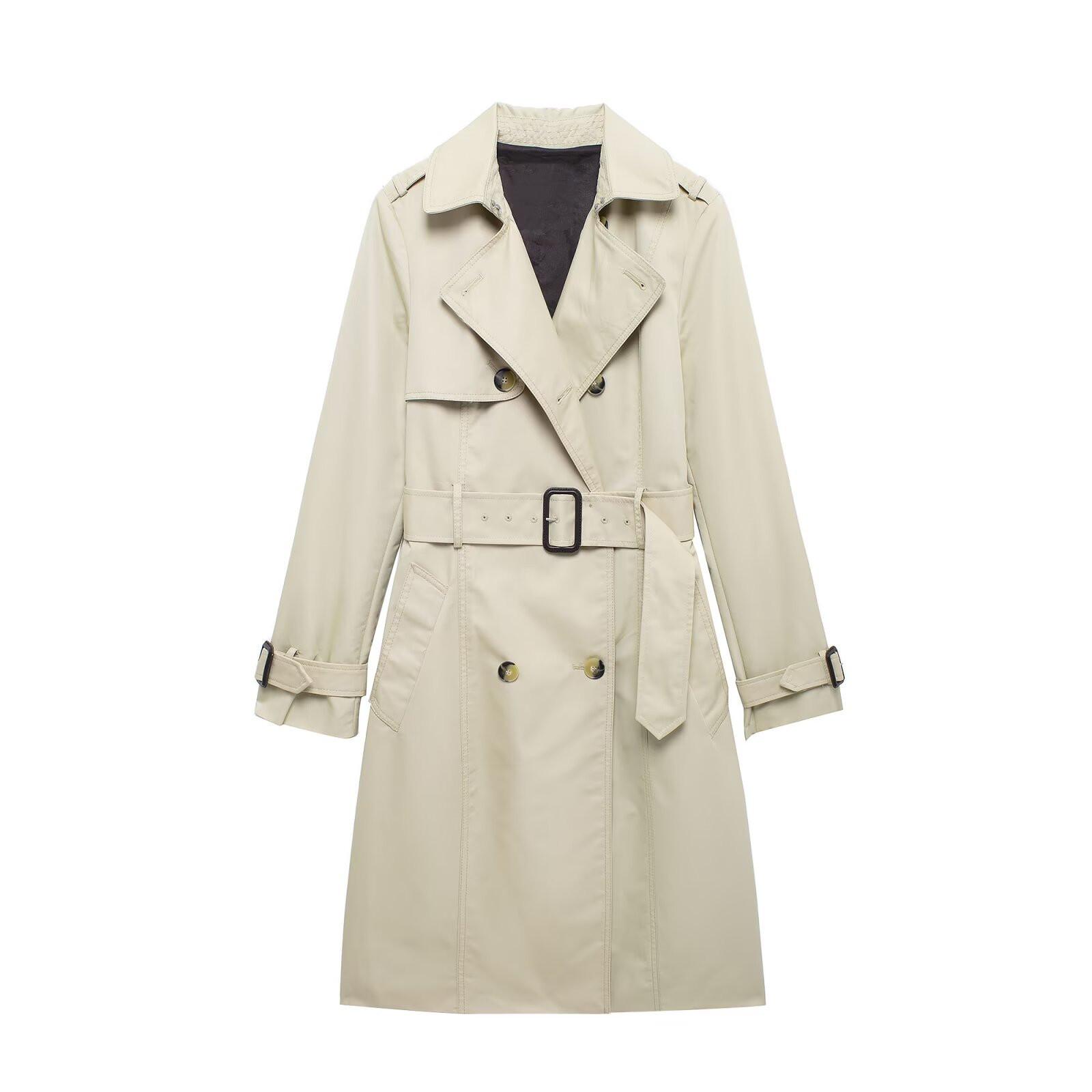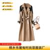 Fuente transfronteriza 2025 primavera moda europea y americana para mujer temperamento slim solapa larga con cordones slim abrigo trench
