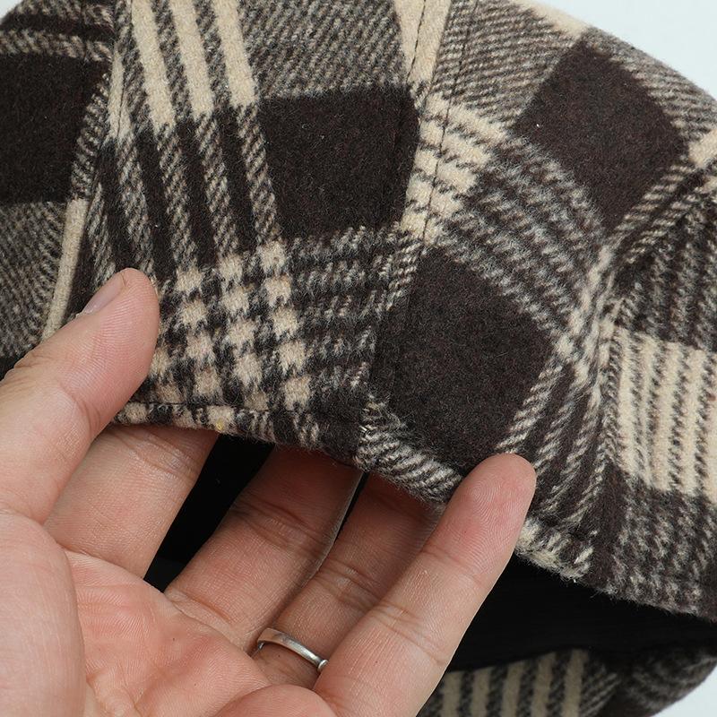 Sombrero de Lana Grueso Cálido de Otoño e Invierno para Hombre Boina de Moda Simple para Hombre Sombrero de Cuadros Casual para Mujer