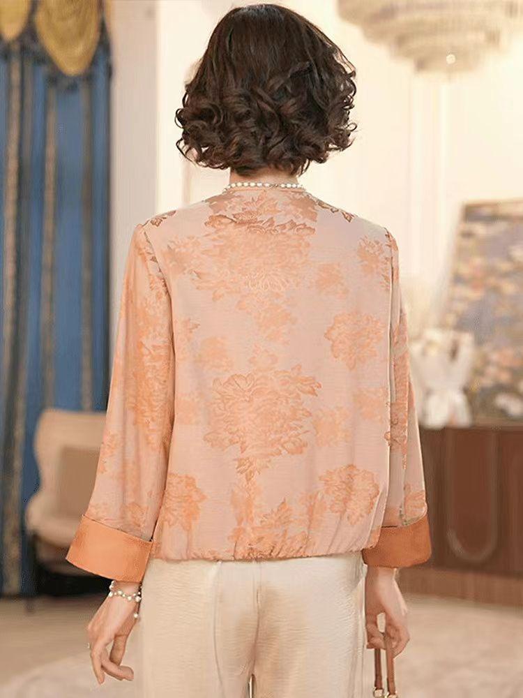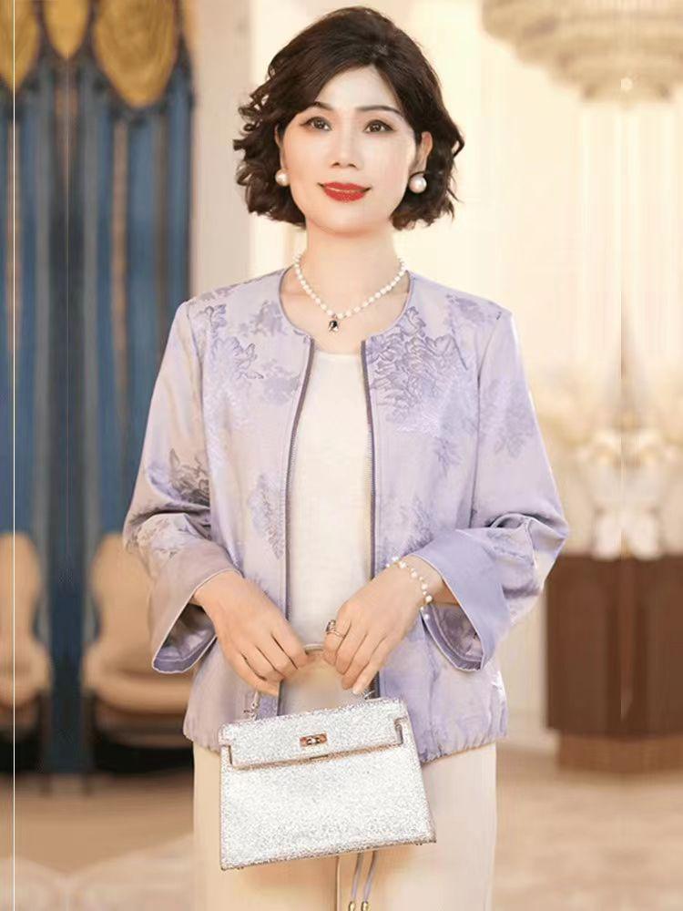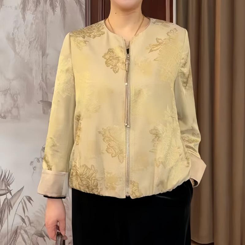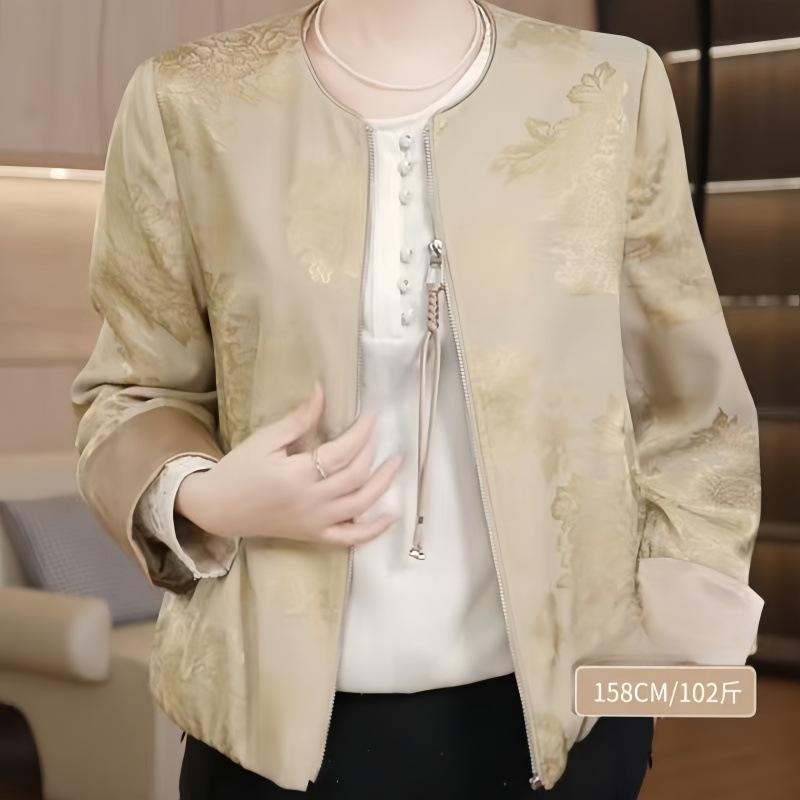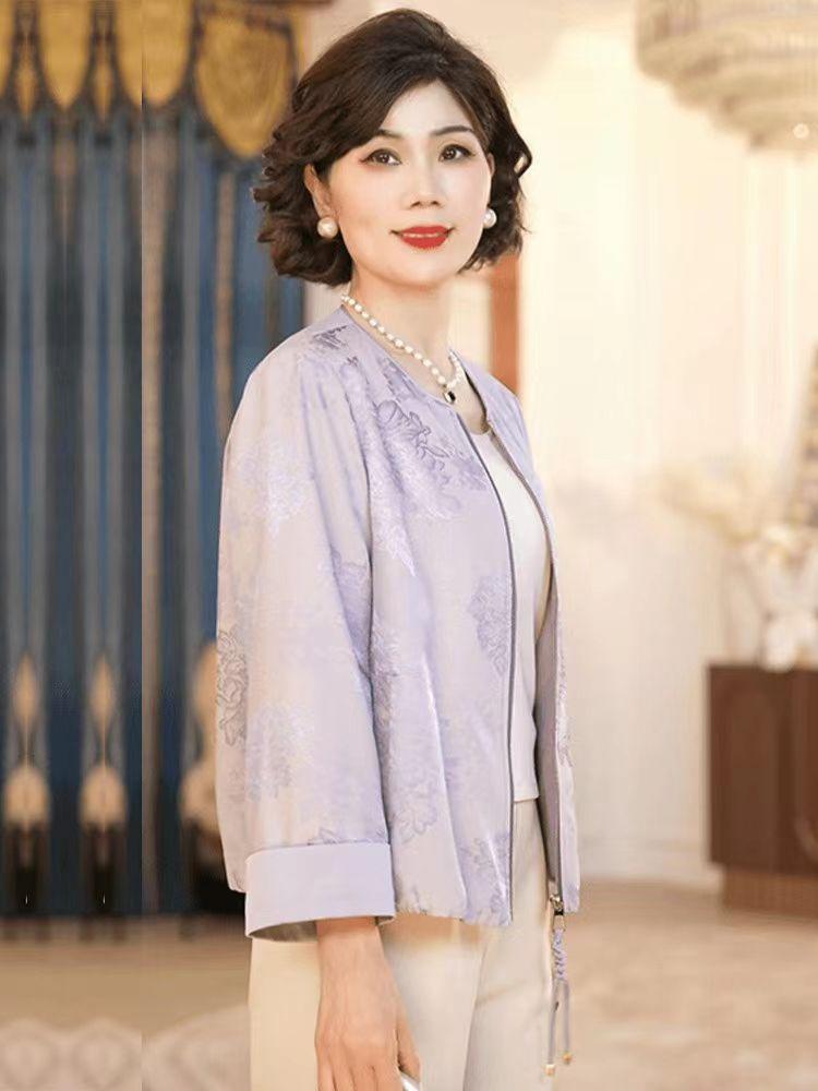 Abrigo elegante de mediana edad con costuras de estilo nacional chino nuevo de primavera de 2025 para mujer, top de moda con cremallera que reduce la edad