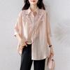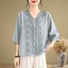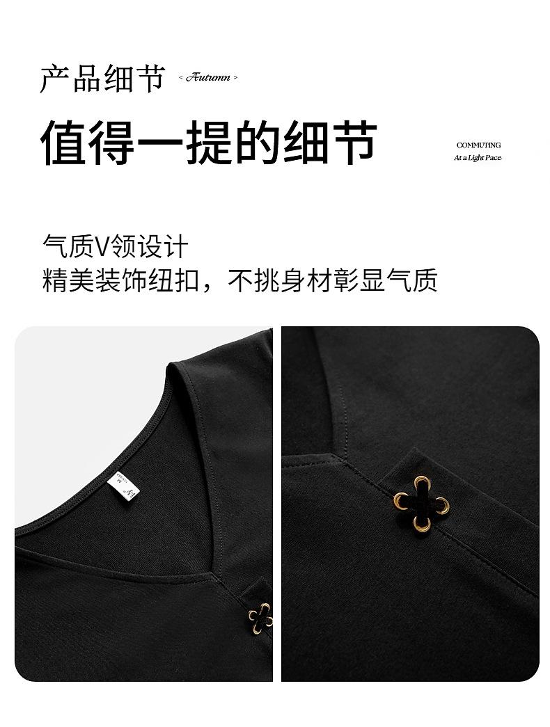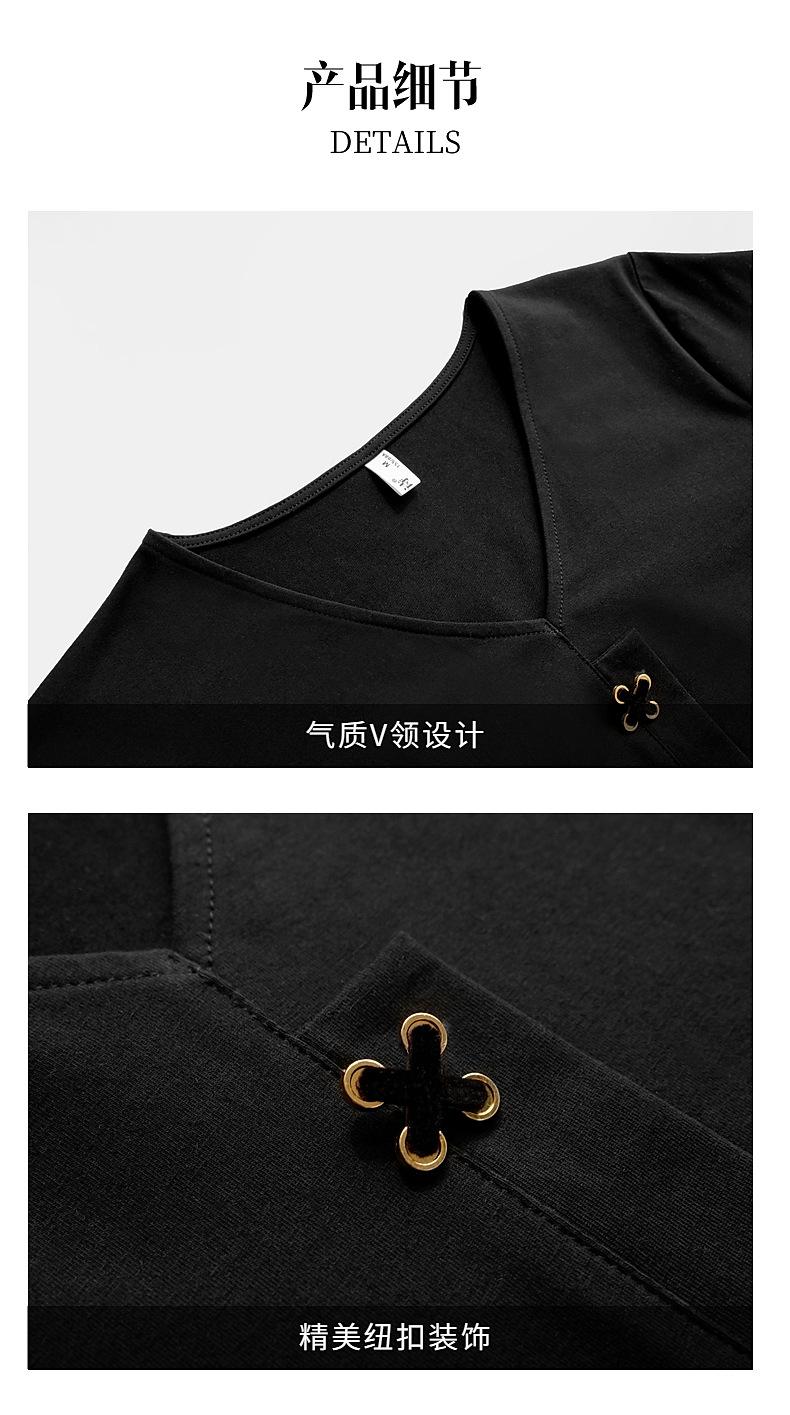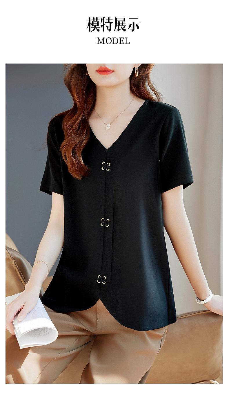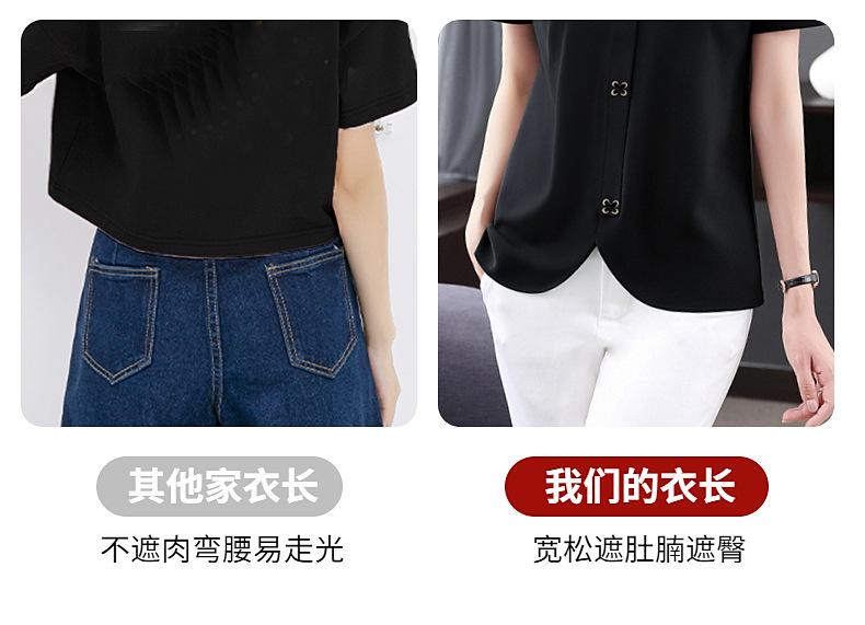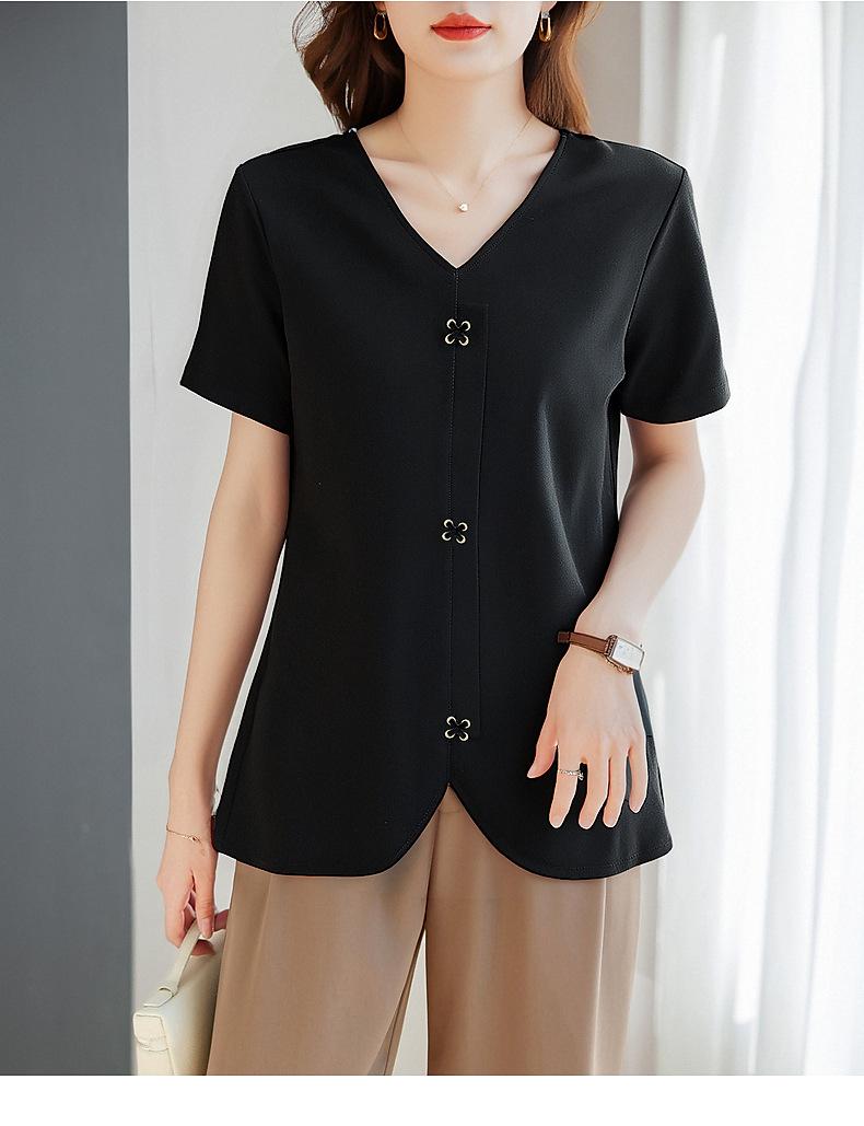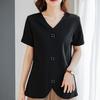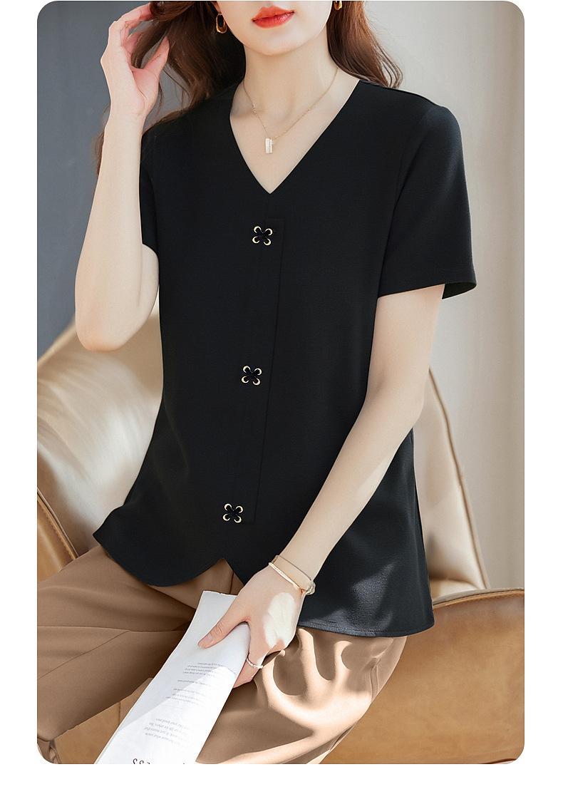 Playera Negra de Talla Grande de Manga Corta para Mujer 2025 Verano Nueva Llegada Madre de Mediana Edad Elegante Holgada Adelgazante Cuello en V Top de Moda