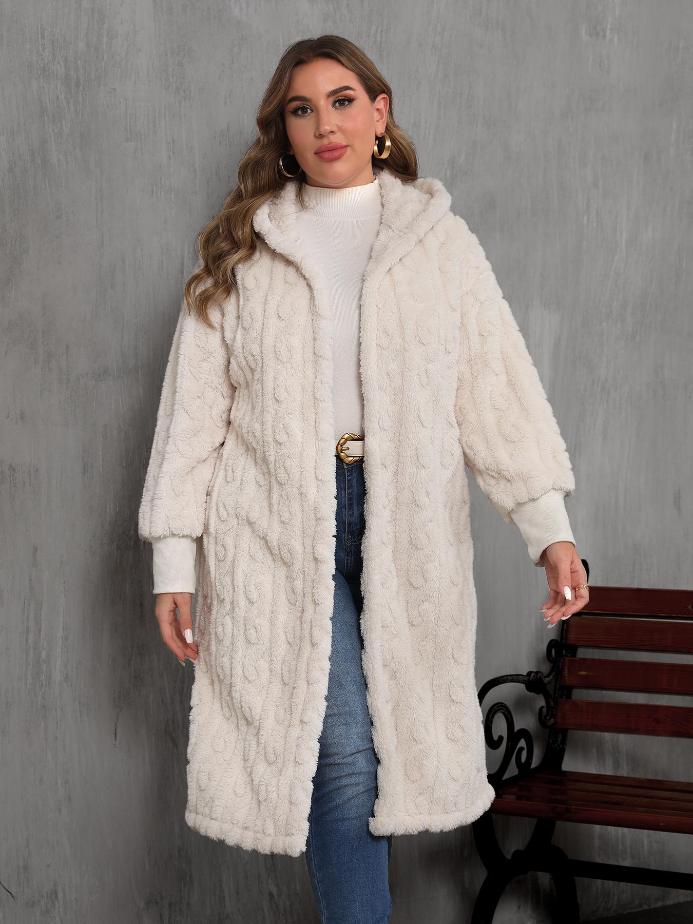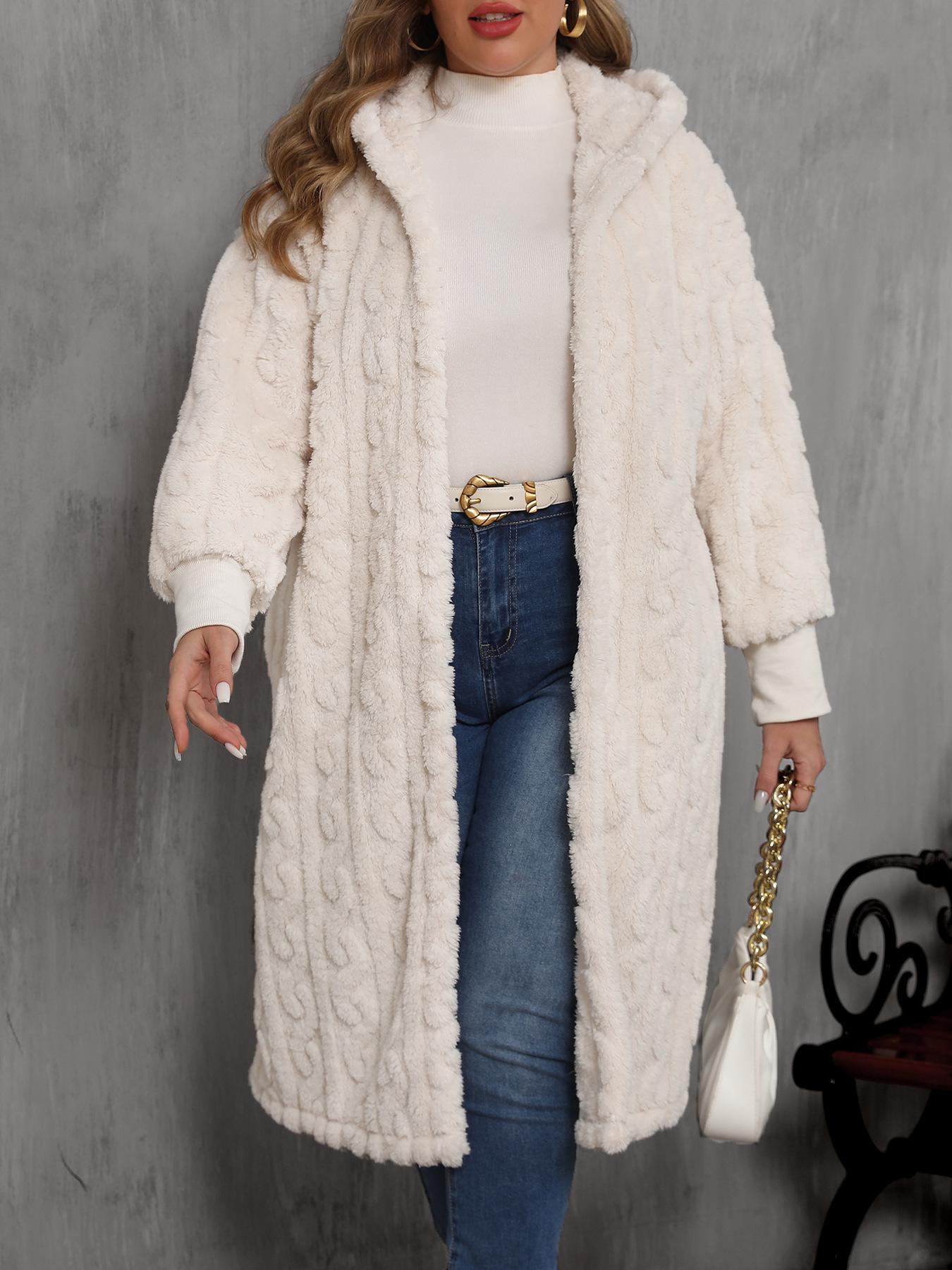 Abrigo Largo de Punto con Capucha para Mujer de Talla Grande Transfronterizo Europeo y Americano de Doble Vista Grueso con Puños de Felpa
