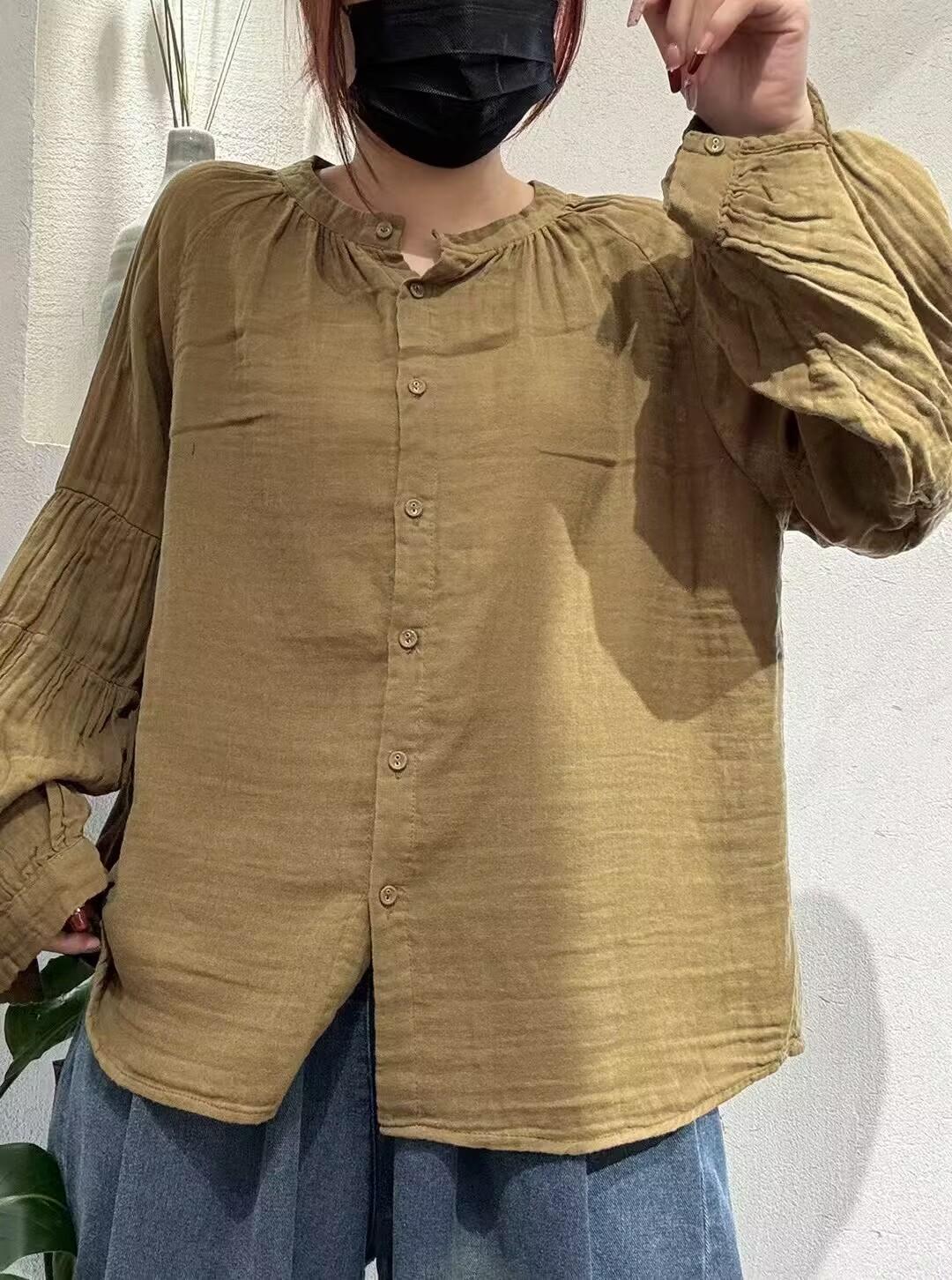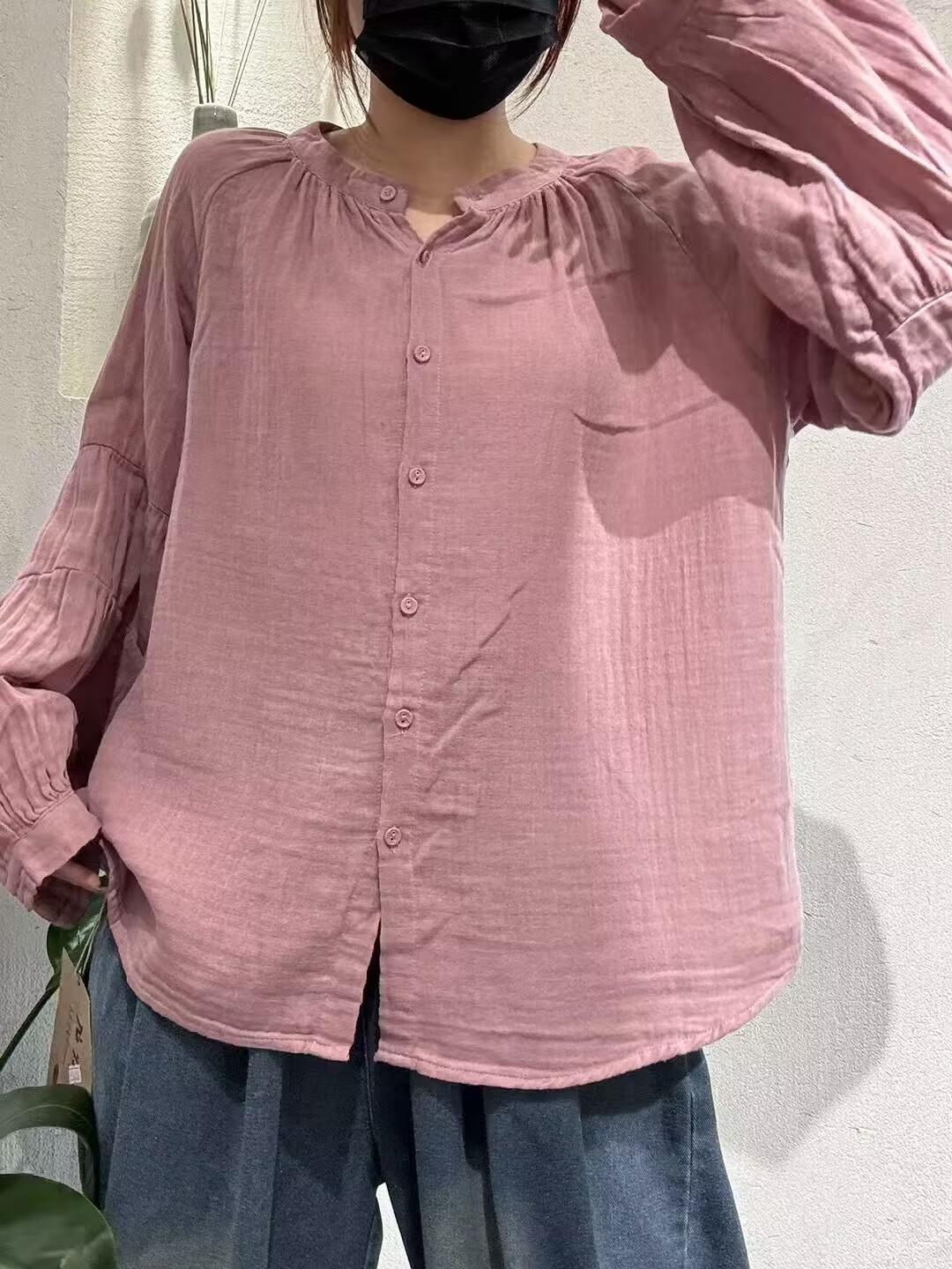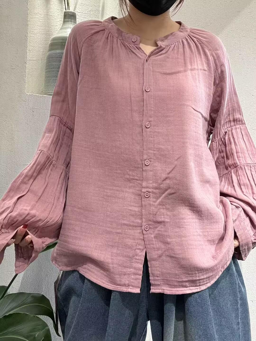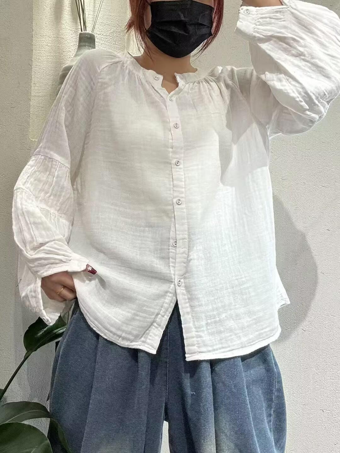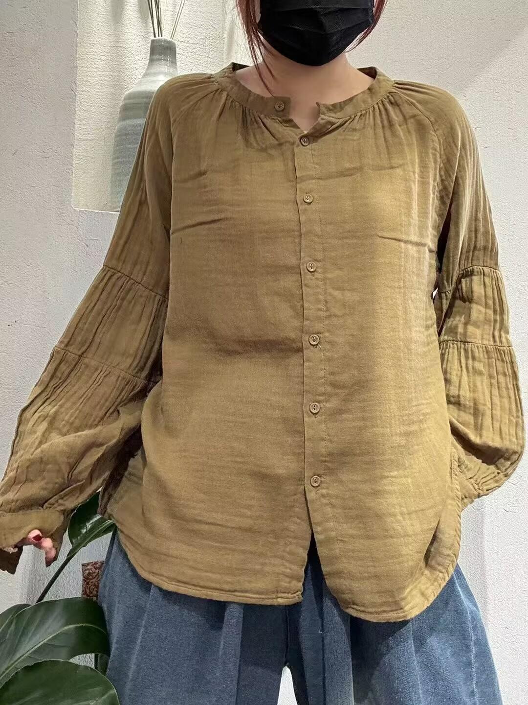 Camisa de algodón para mujer, primavera y verano, holgada, estilo europeo, a la moda, holgada, adelgazante, plisada, diseño de nicho, cárdigan informal.
