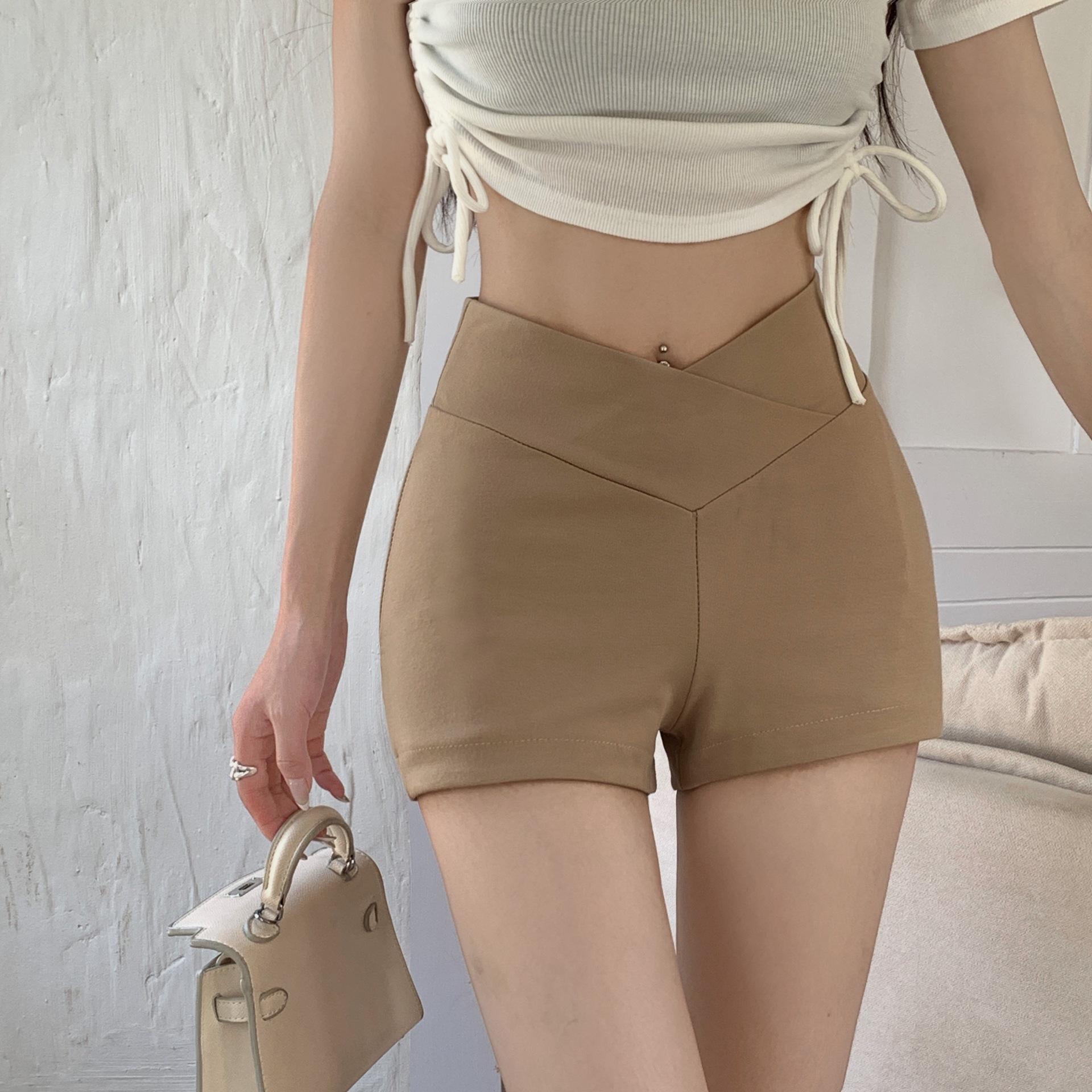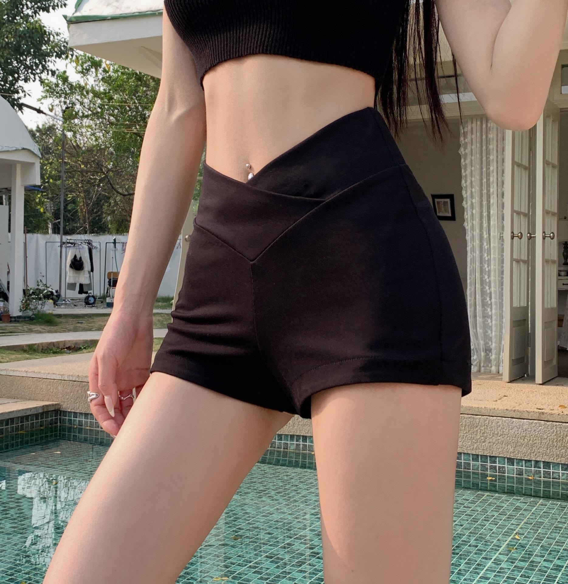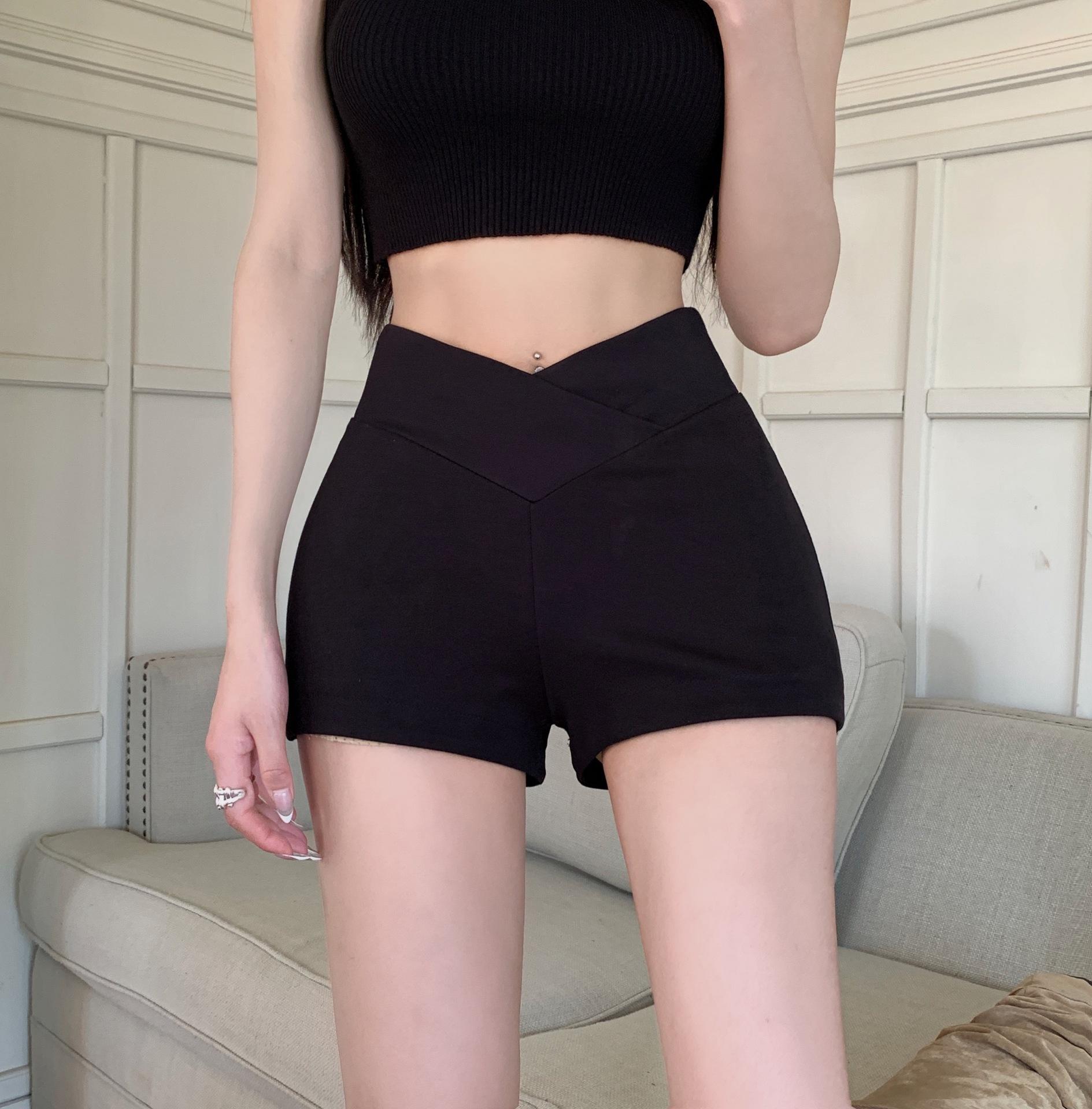Shorts Casuales Cruzados para Chicas Calientes para Mujer Verano Nuevo Combinación Total Cintura Alta Adelgazantes Elásticos Ajustados Pantalones de Yoga para Mujer a la Moda