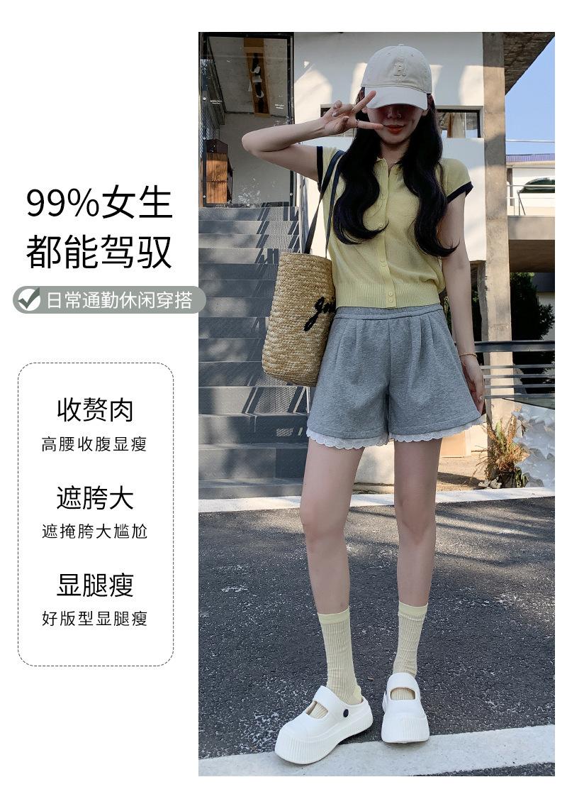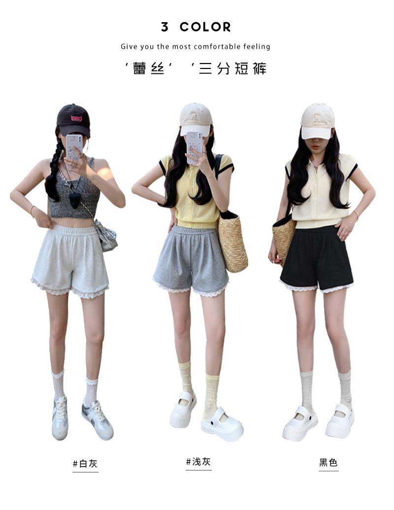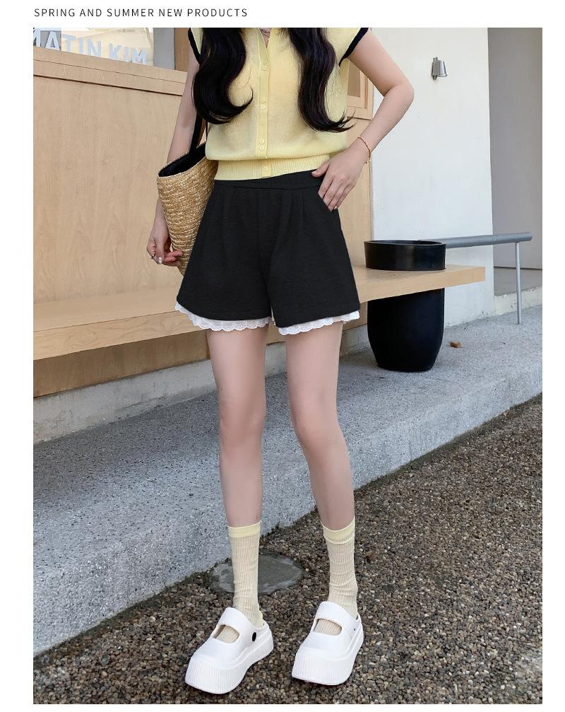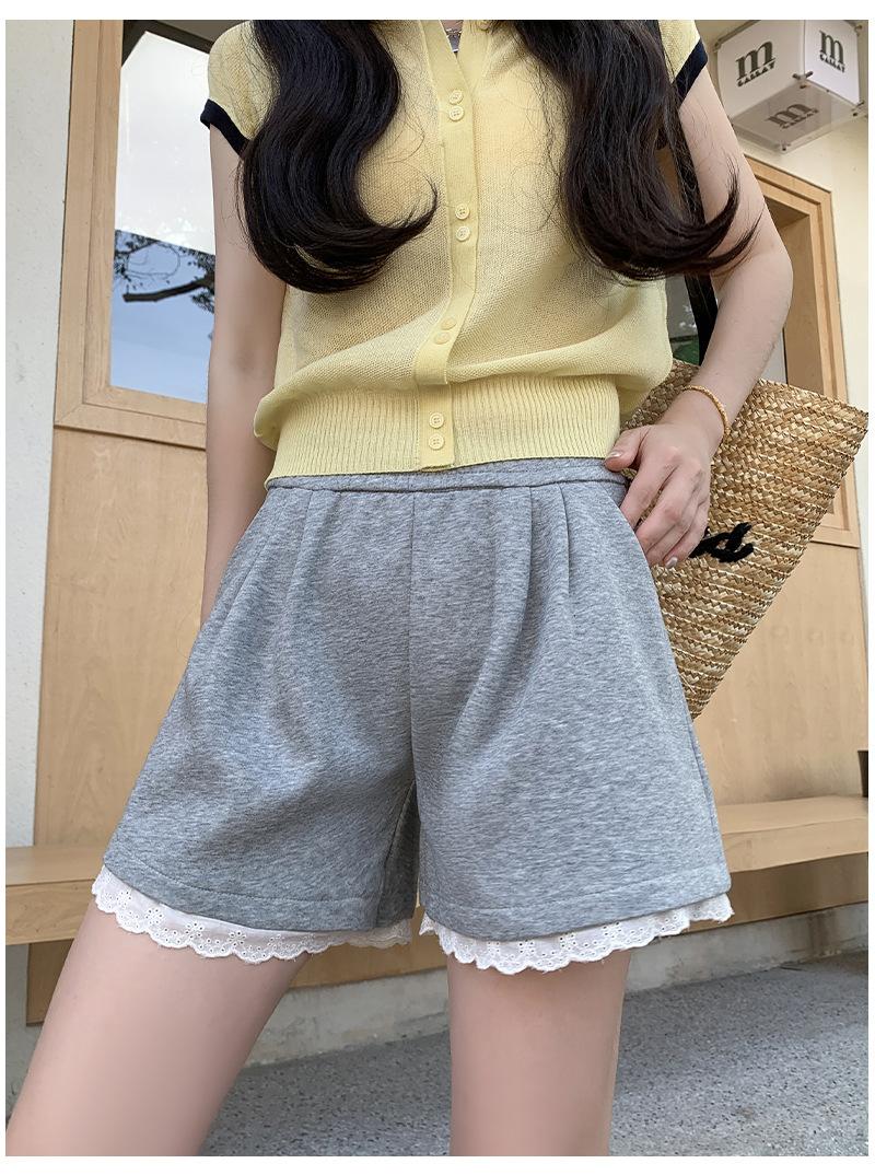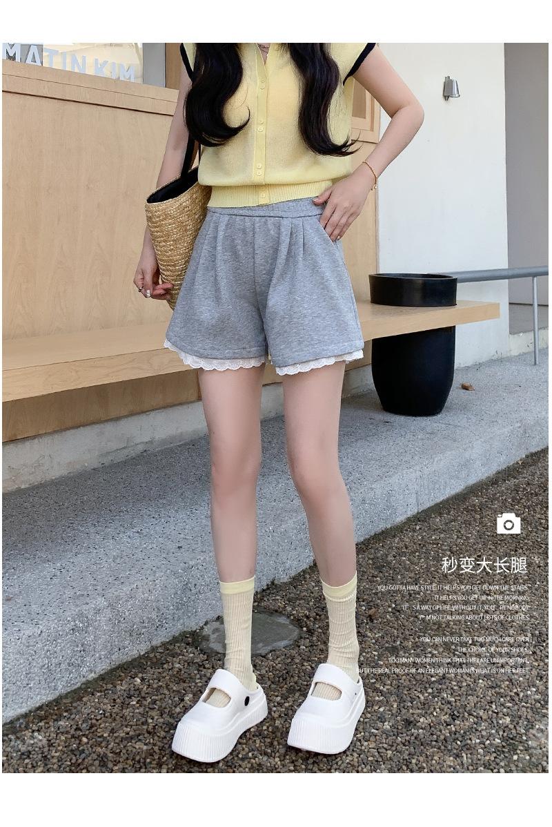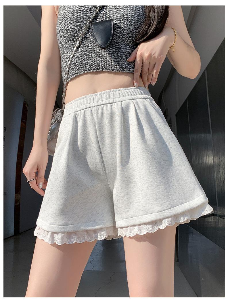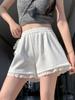 Pantalones cortos anchos de encaje retro francés para mujer, de verano, de cintura alta, adelgazantes, informales, de tres puntos, deportivos en forma de A