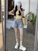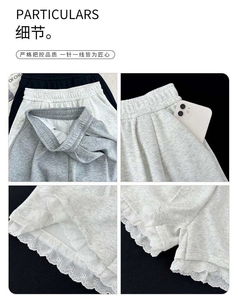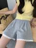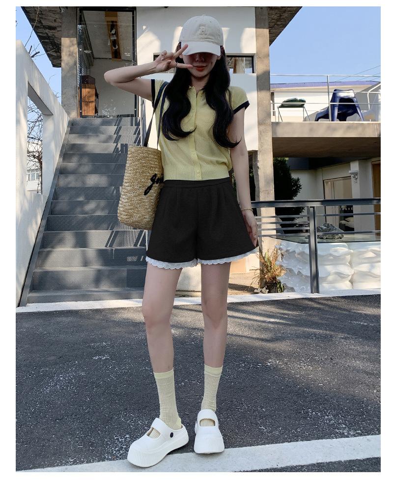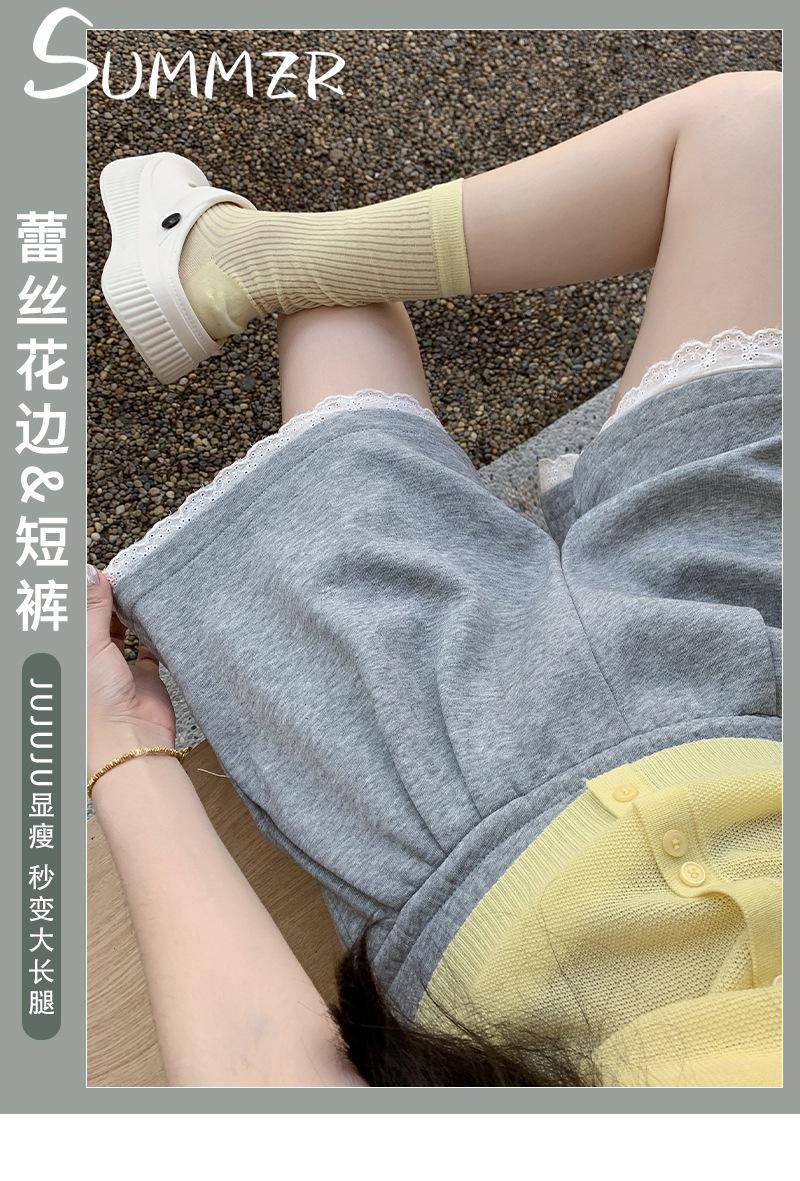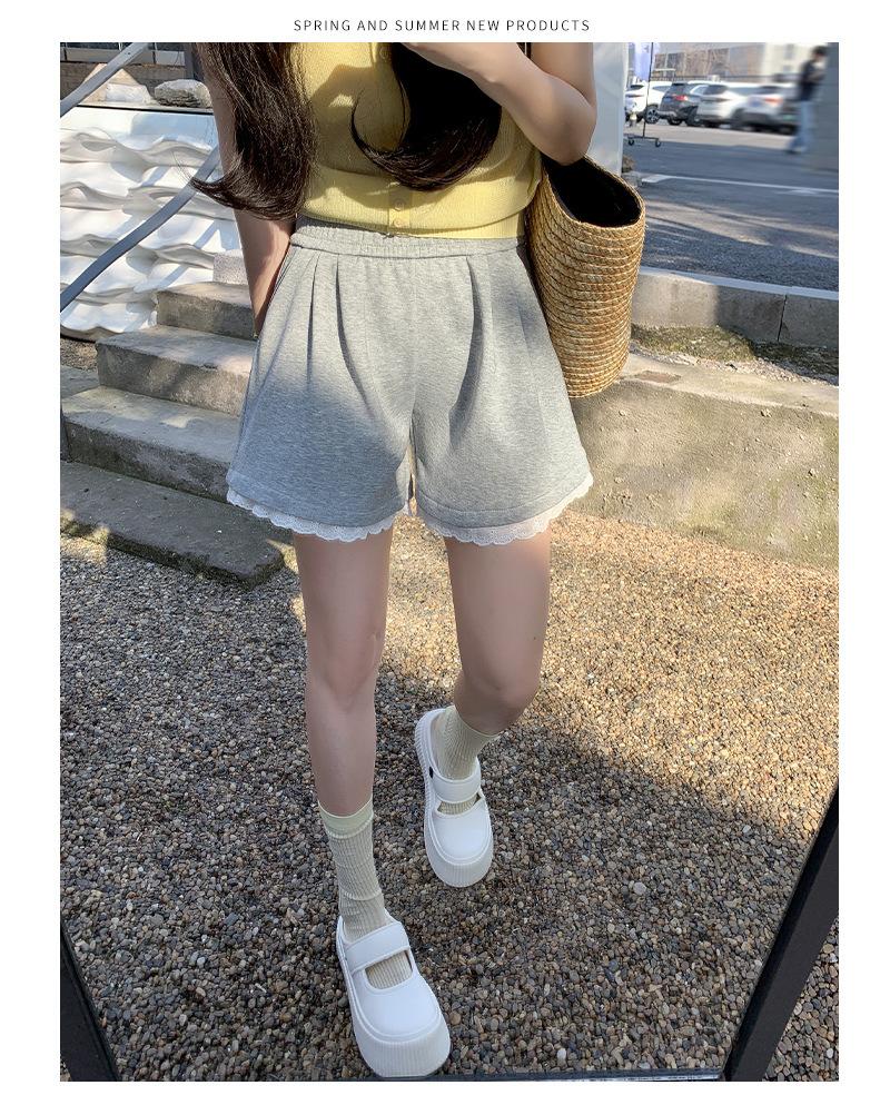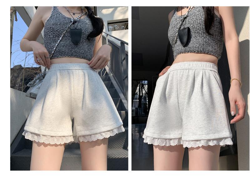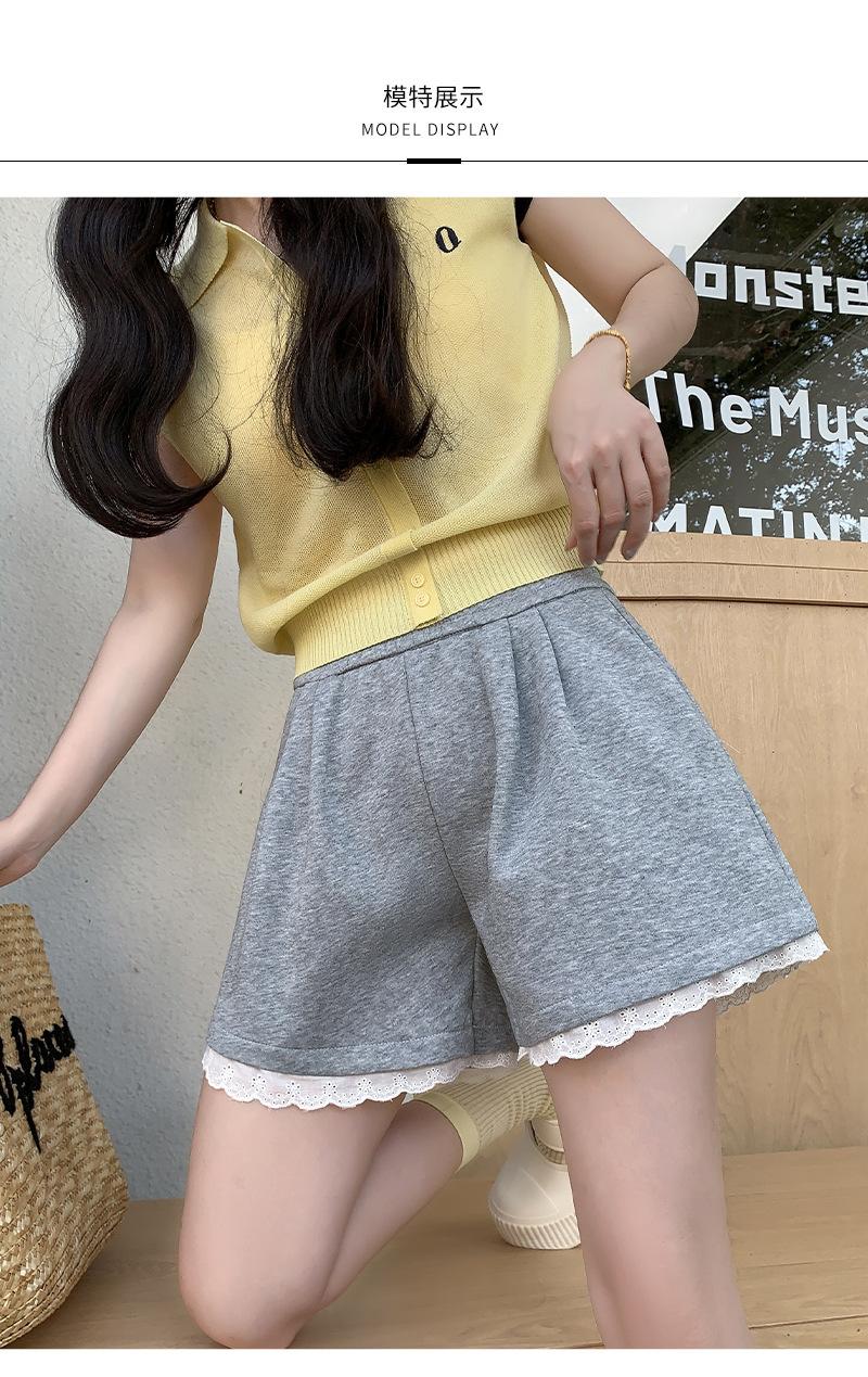 Pantalones cortos anchos de encaje retro francés para mujer, de verano, de cintura alta, adelgazantes, informales, de tres puntos, deportivos en forma de A