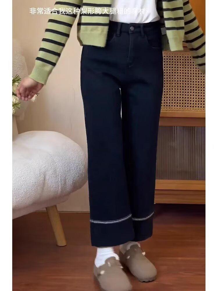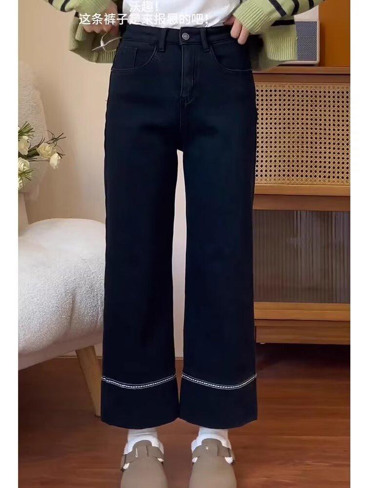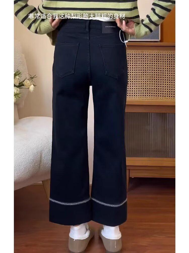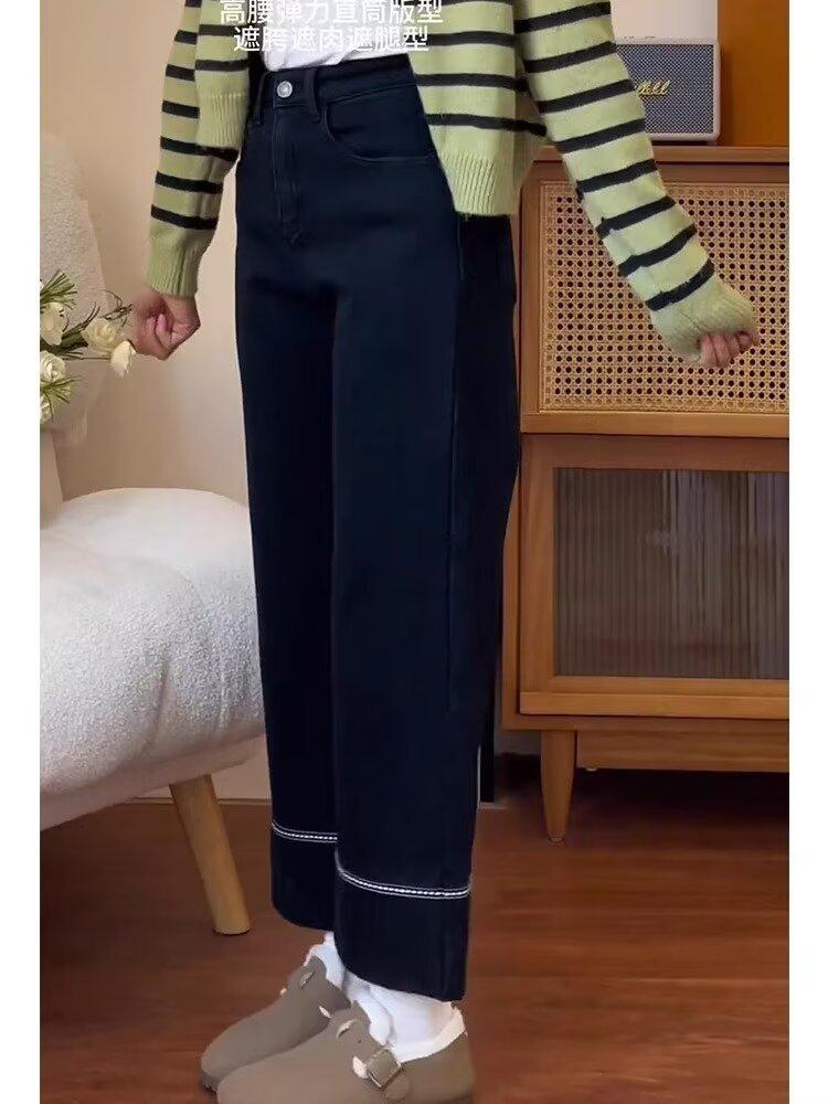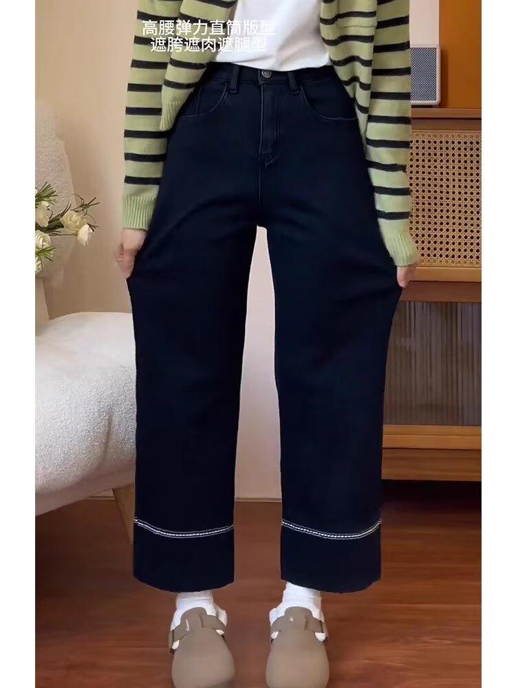 Jeans Rectos Negros Elásticos Retro Estilo Americano para Mujer Primavera y Otoño Nuevo Cintura Alta Adelgazantes Pantalones Recortados para Chicas Gorditas