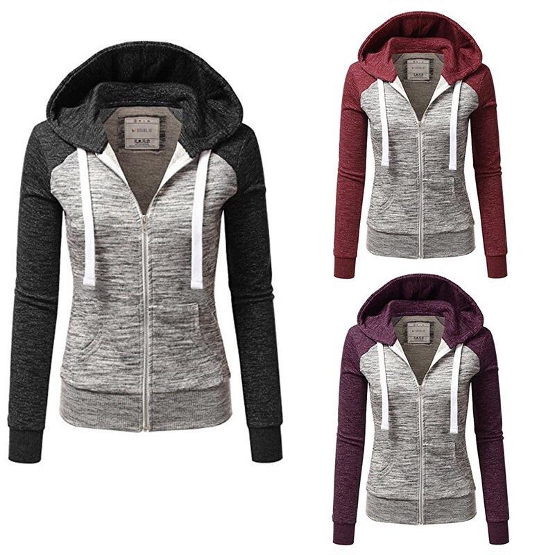 2019 Nuevo Amazon wish Explosiones Moda Cárdigan con Capucha Ajustado de Costuras Tricolor Suéter para Mujer Europeo y Americano