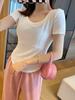 Playera de Manga Corta para Mujer, Algodón Puro, Verano Cuello Cuadrado, Nuevo Estilo 2025, Top Corto con Varillas, Diseño Único, Hombro Regular, Estilo Trendy