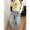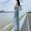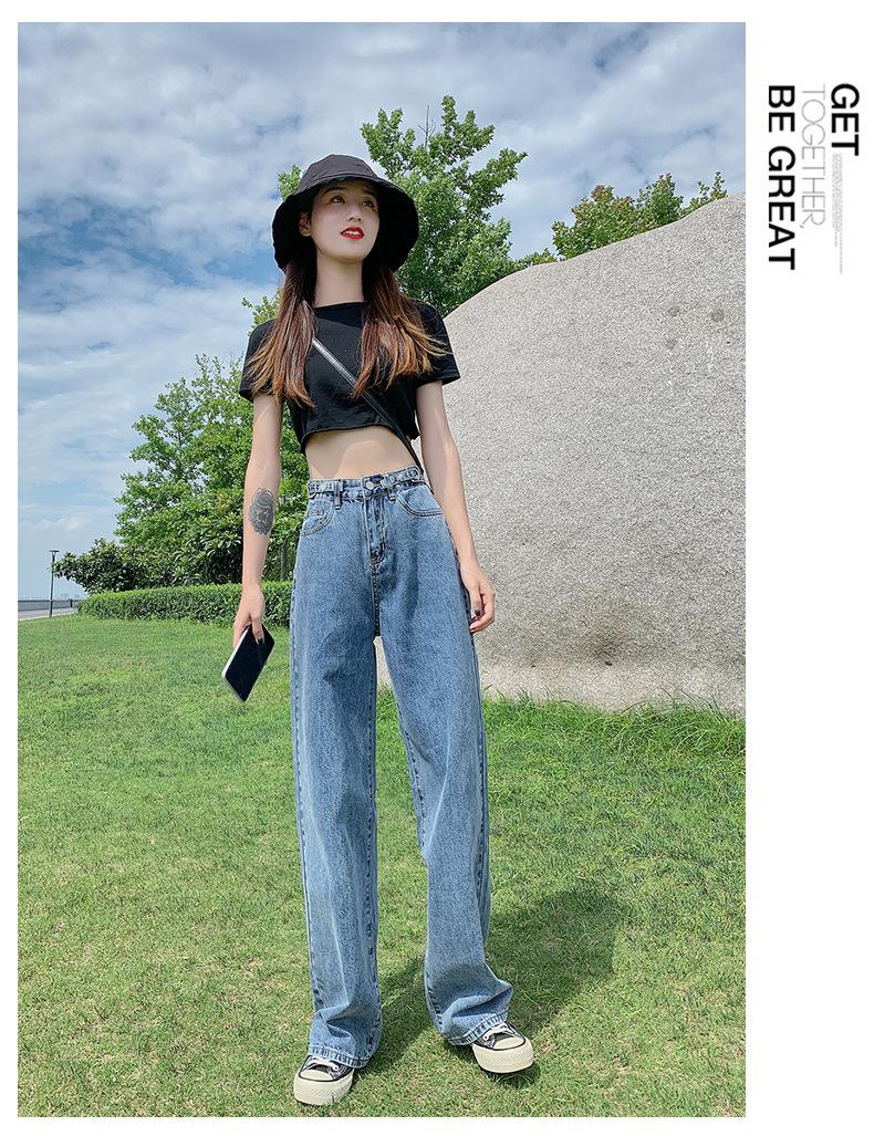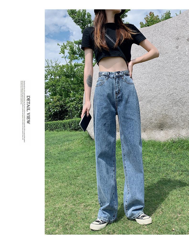 Pantalones de Pierna Ancha de Cintura Alta Jeans de Verano para Mujer Nuevos Pantalones Rectos Sueltos con Caída Hasta el Piso Adelgazantes