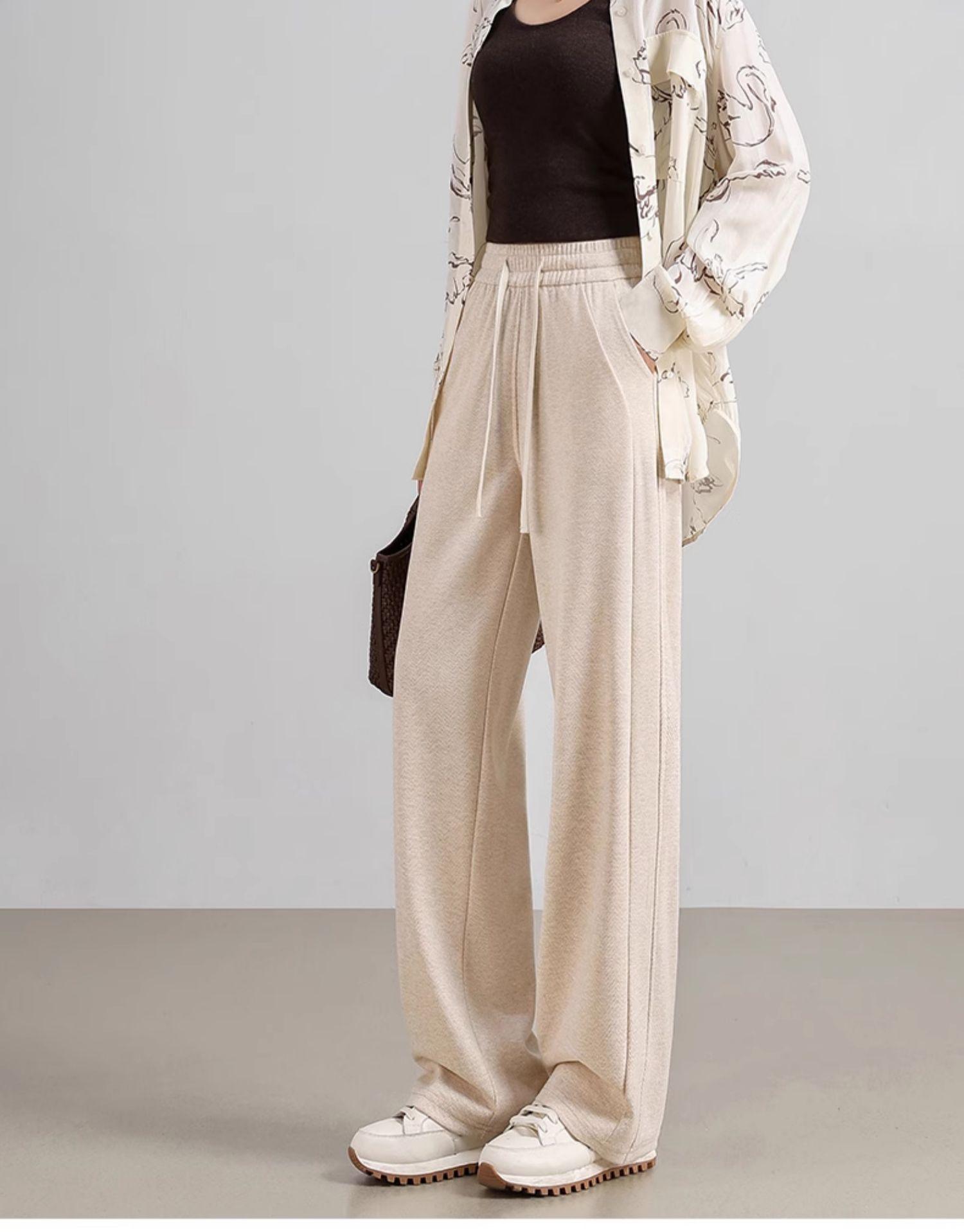 Pantalones casuales holgados de talla grande que cubren la cadera para mujer Primavera 2025 Joker 200 Jin chica gordita Pantalones rectos de cintura alta ajustados con pierna ancha