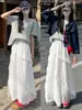 Falda irregular blanca para mujer, primavera y verano 2025, nueva falda de cintura alta, línea A, falda larga, falda de encaje pastel