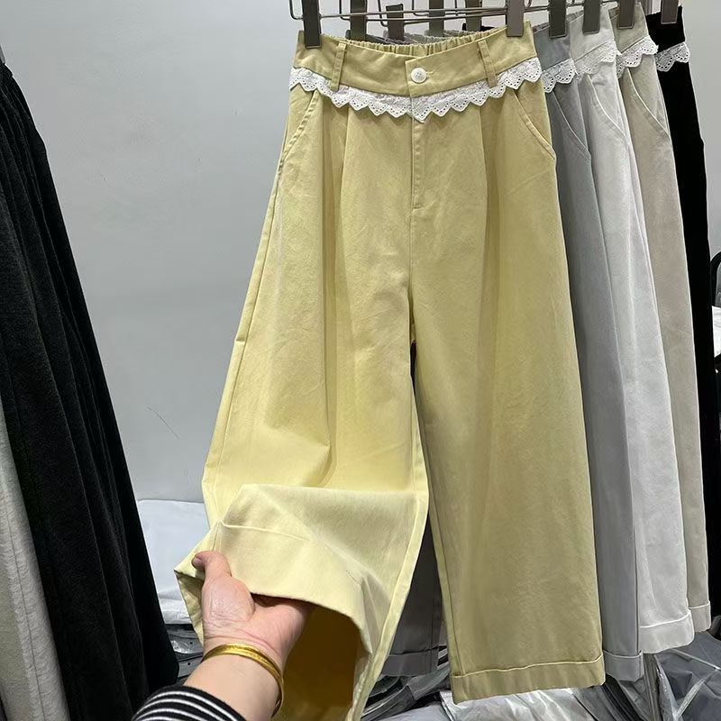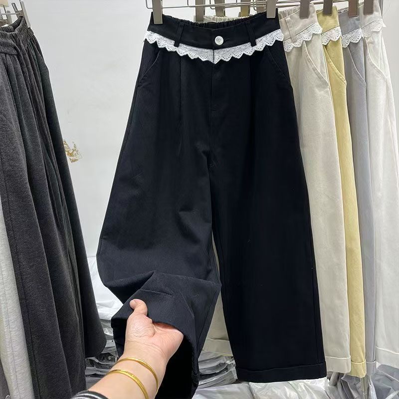 Pantalones Shanli Dadi coreanos con costuras de encaje elásticos de cintura alta y pierna ancha para mujer, nuevos pantalones casuales sueltos que combinan con todo, largos de primavera