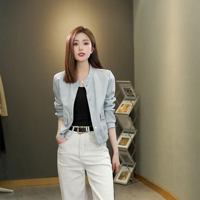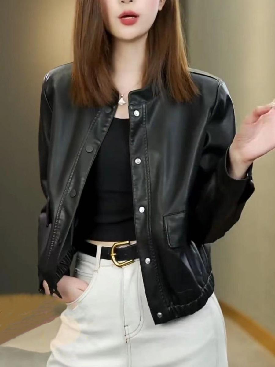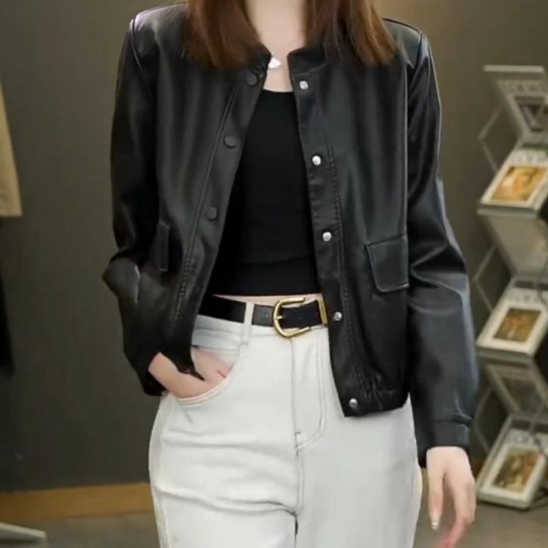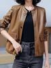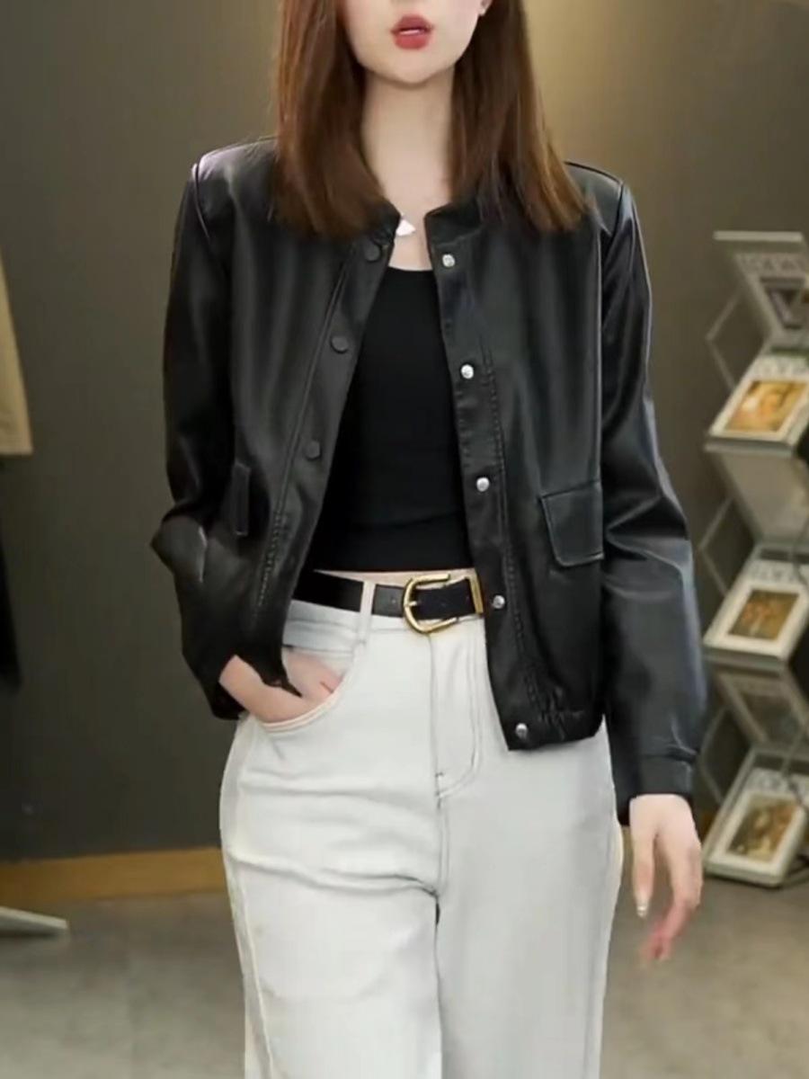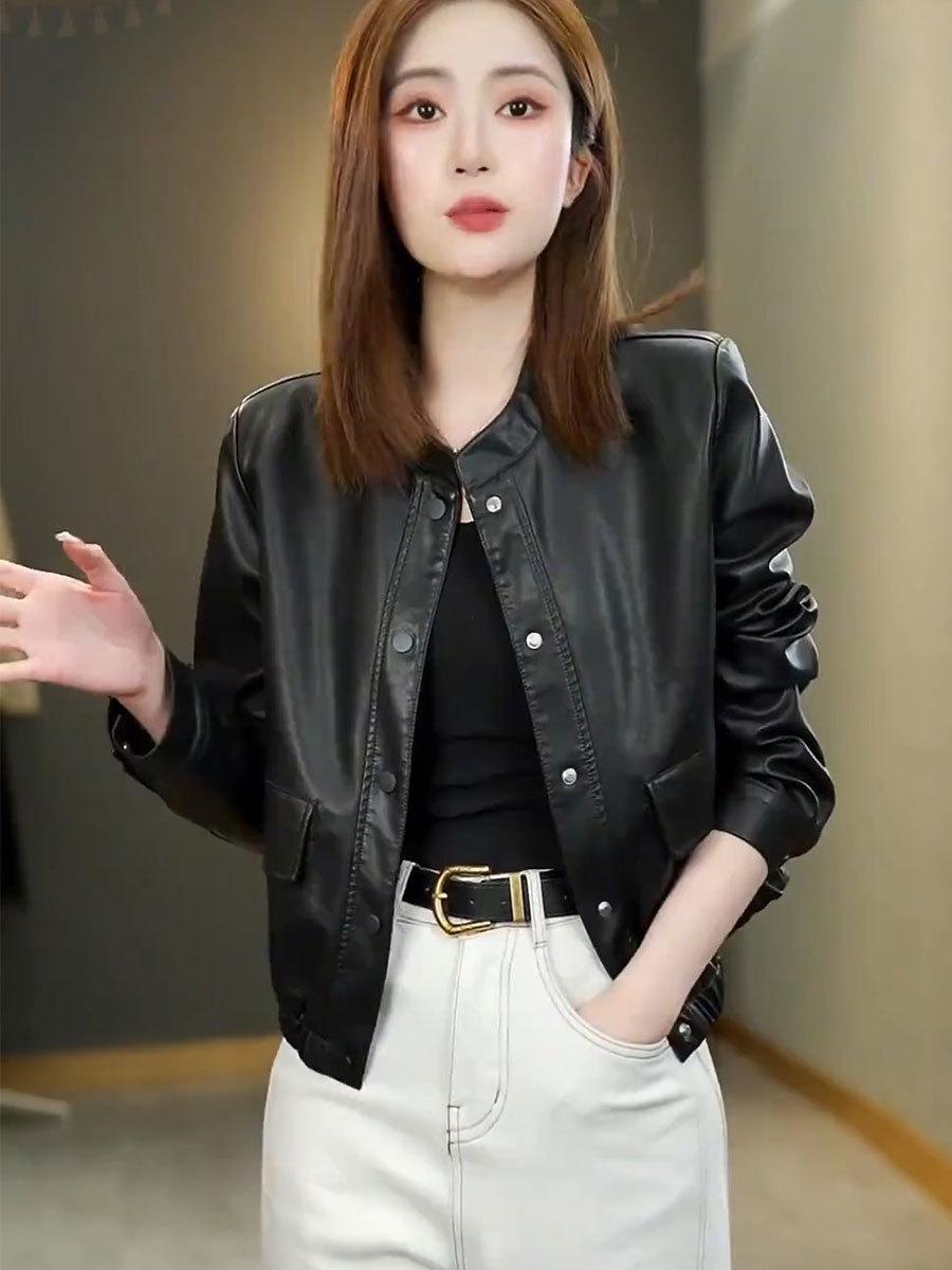 Chaqueta Corta de Cuero para Mujer 2025 Primavera Nuevo Popular Moda Elegante Versátil Chaqueta de Cuero PU Top para Petite