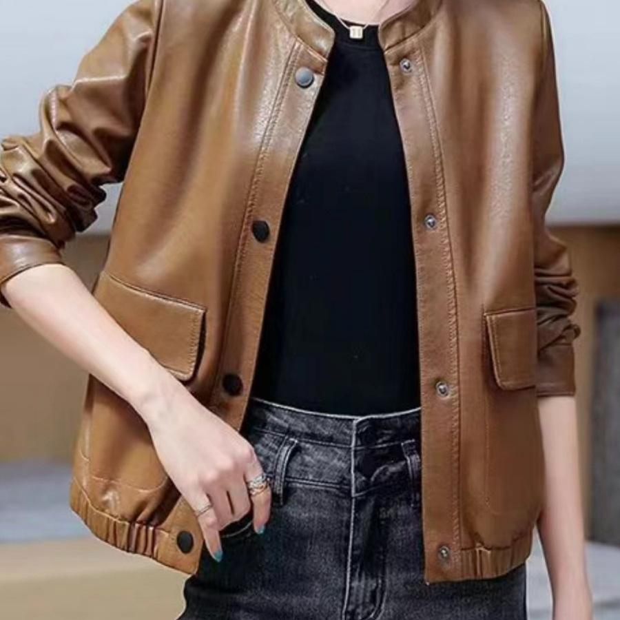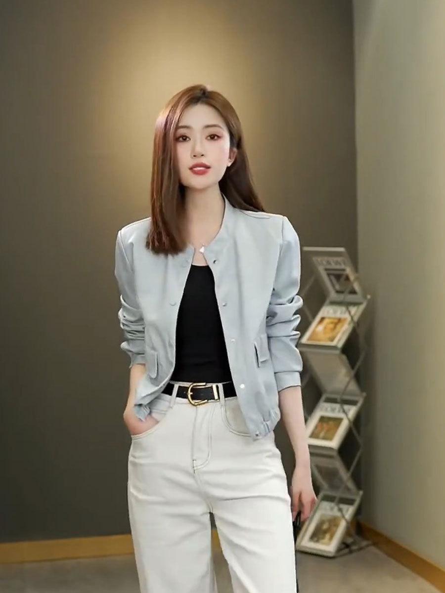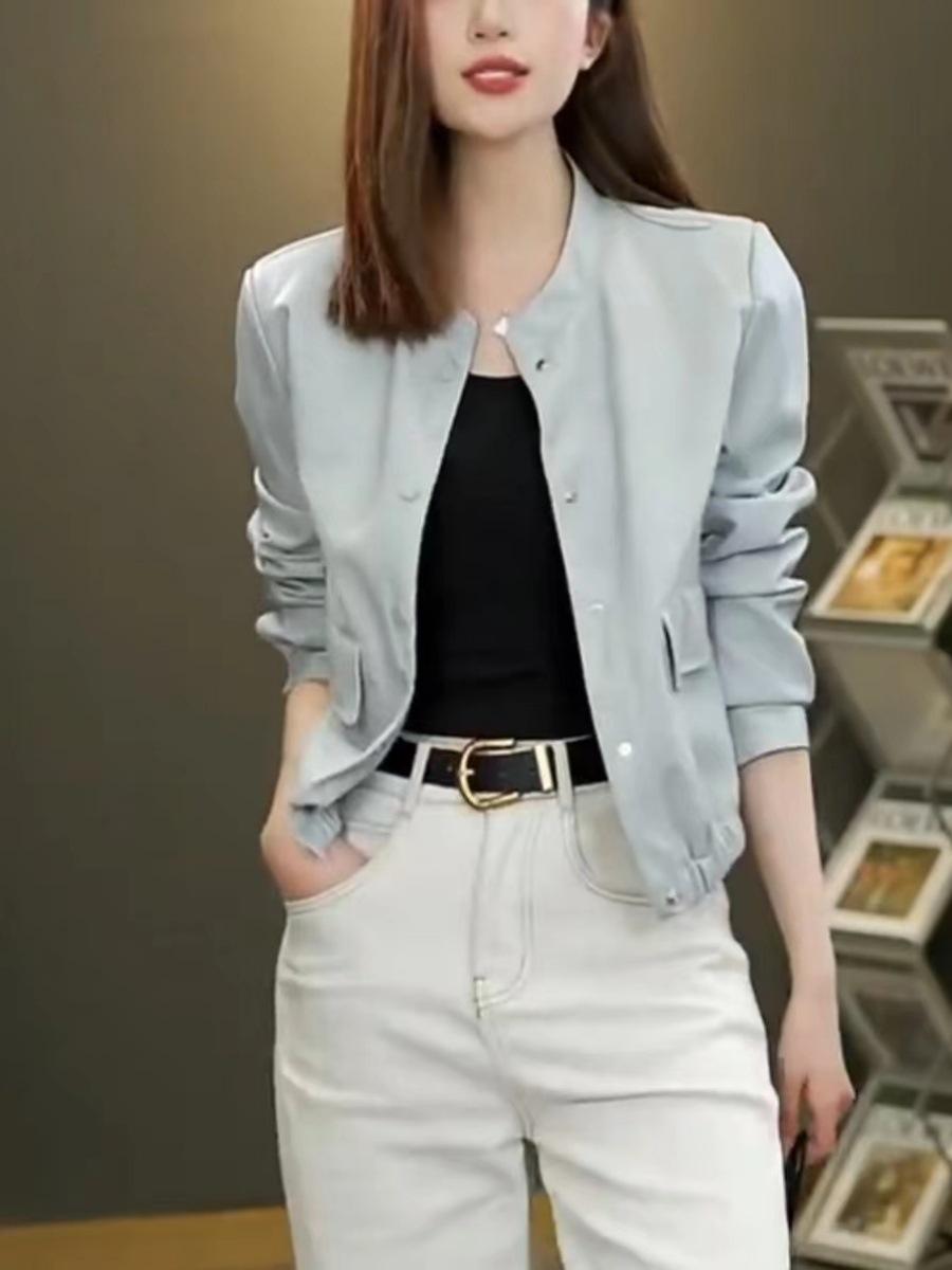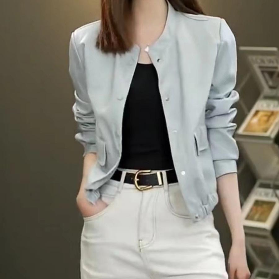 Chaqueta Corta de Cuero para Mujer 2025 Primavera Nuevo Popular Moda Elegante Versátil Chaqueta de Cuero PU Top para Petite