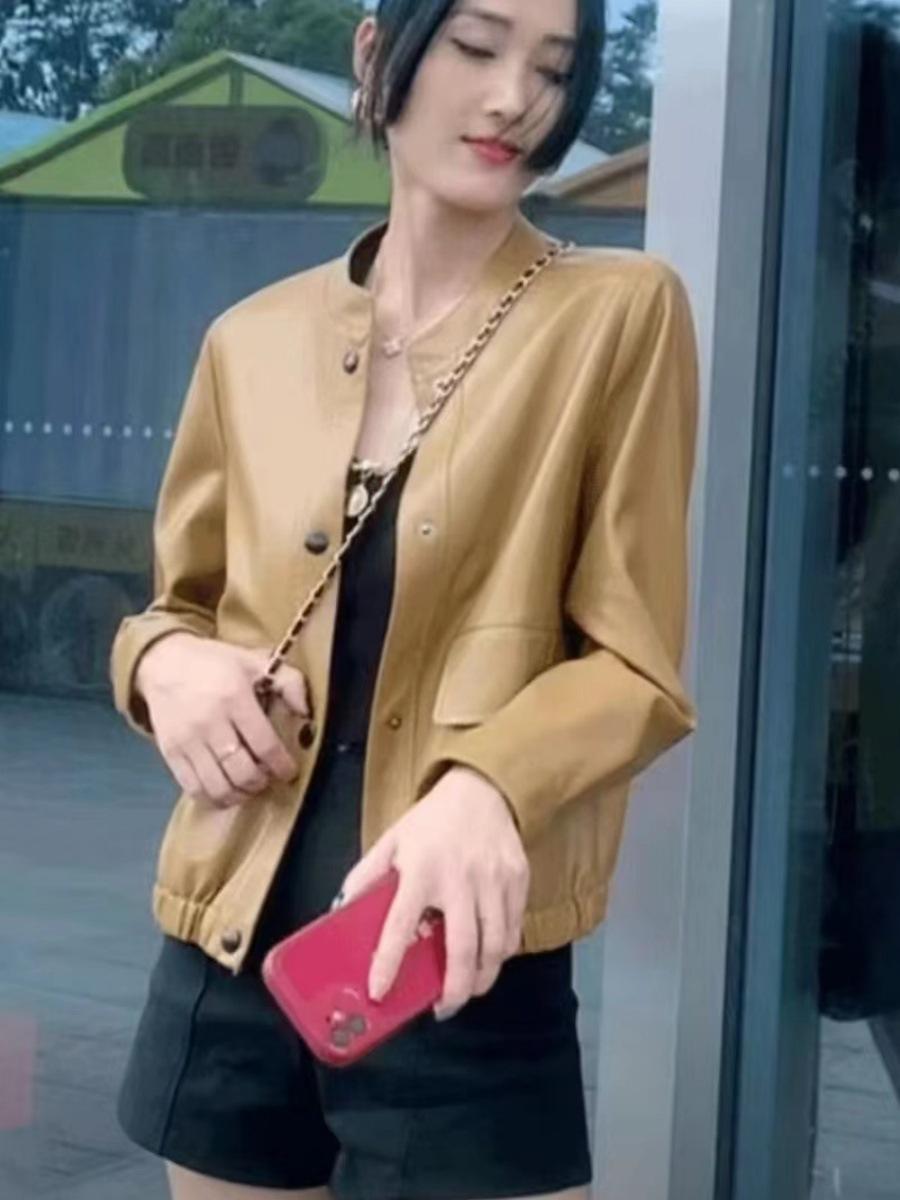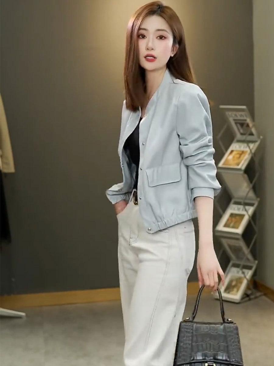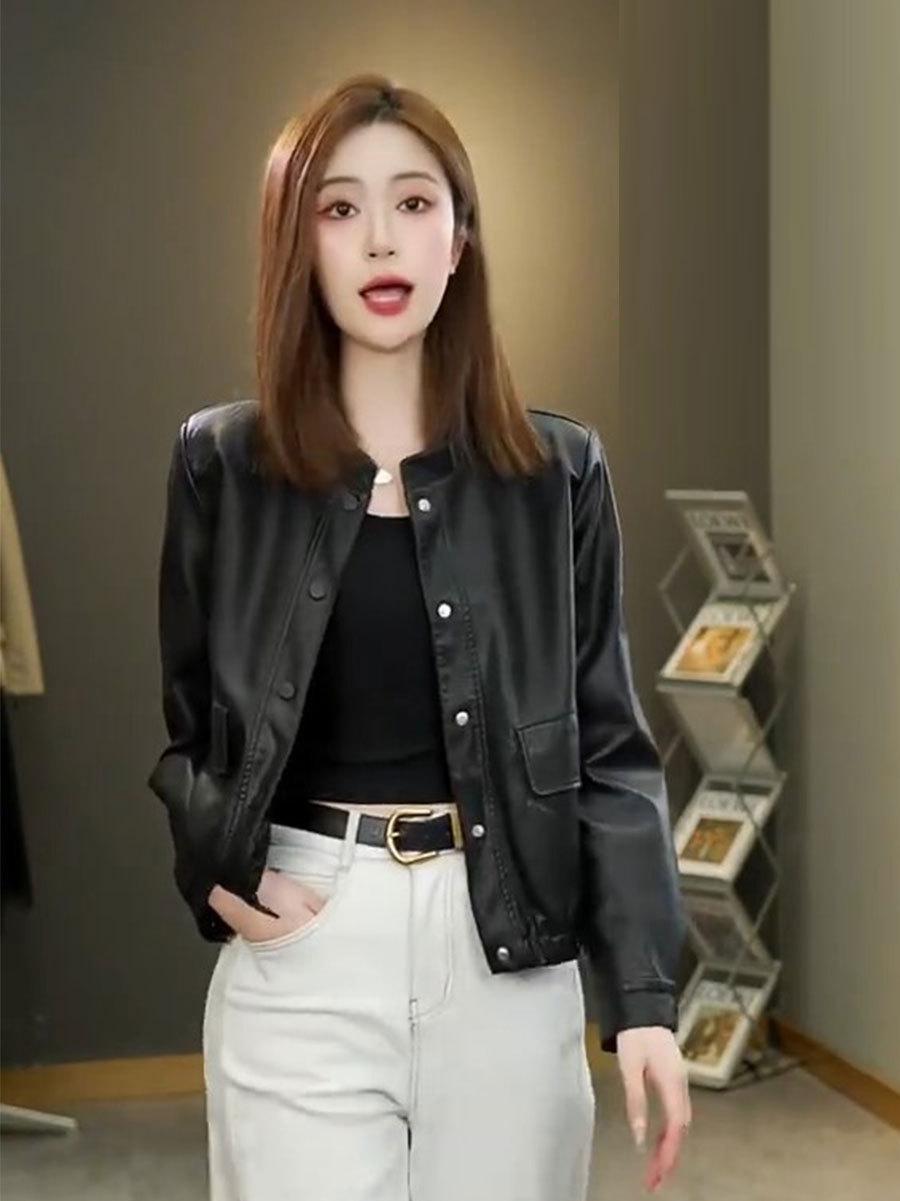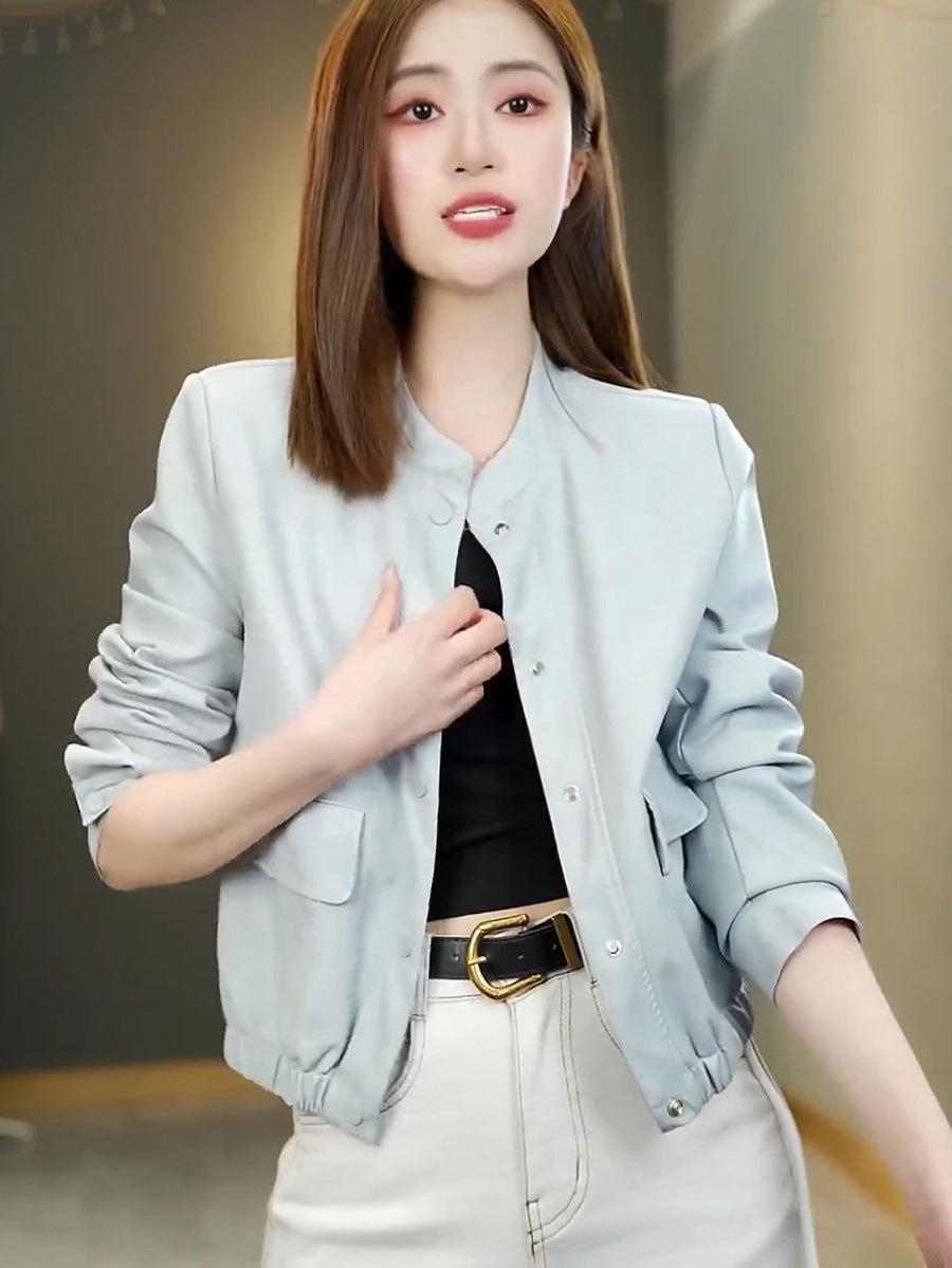 Chaqueta Corta de Cuero para Mujer 2025 Primavera Nuevo Popular Moda Elegante Versátil Chaqueta de Cuero PU Top para Petite