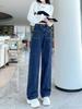 Vaqueros de pierna ancha azul oscuro para mujer, otoño e invierno 2025, nuevos, de cintura alta, holgados, adelgazantes, retro, viejos, rectos.