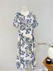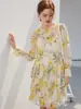 Vestido de seda de manga corta para mujer 2025 verano nuevo floral francés con volantes en la cintura falda de crepé doble de seda de morera