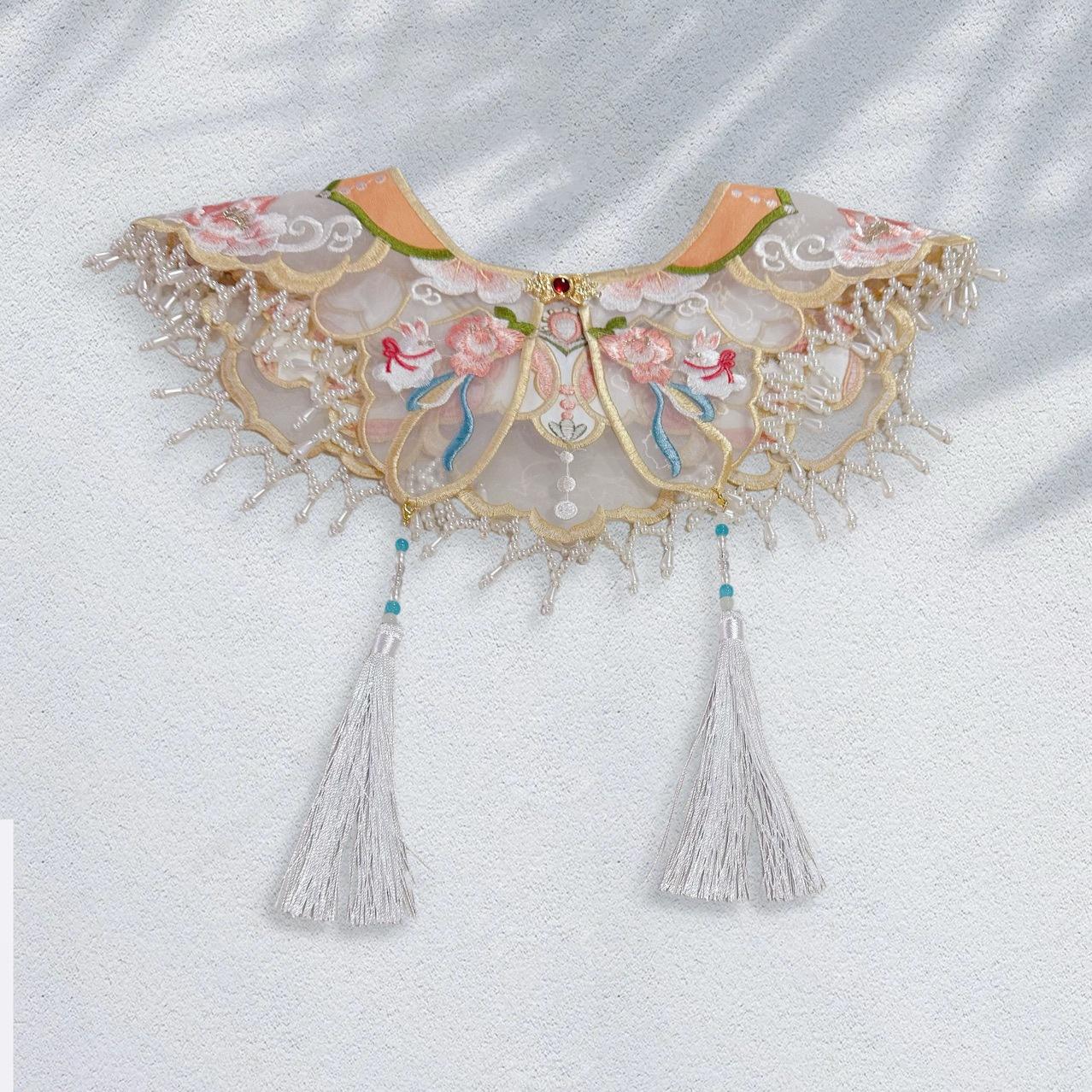 Ougan Nube de Hombro para Niños Flor de Durazno Conejo Bordado Cuello Antiguo Cuello Falso Accesorios Hanfu Decoración Ropa Infantil Bordada Combinable