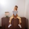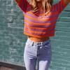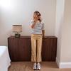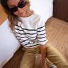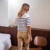 Suéter de mujer de manga corta con cuello redondo a rayas con costuras cruzadas de Amazon, primavera y verano 2025