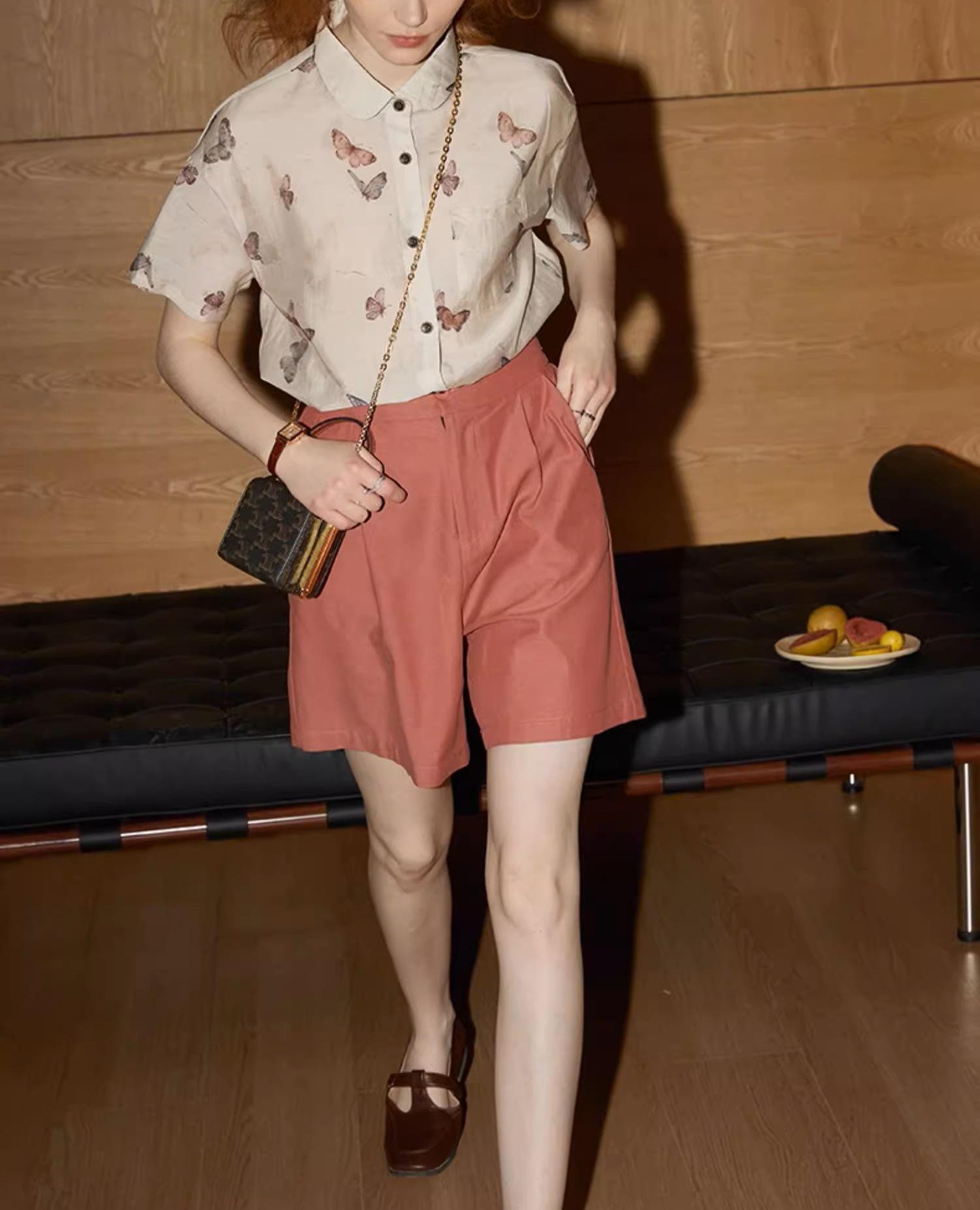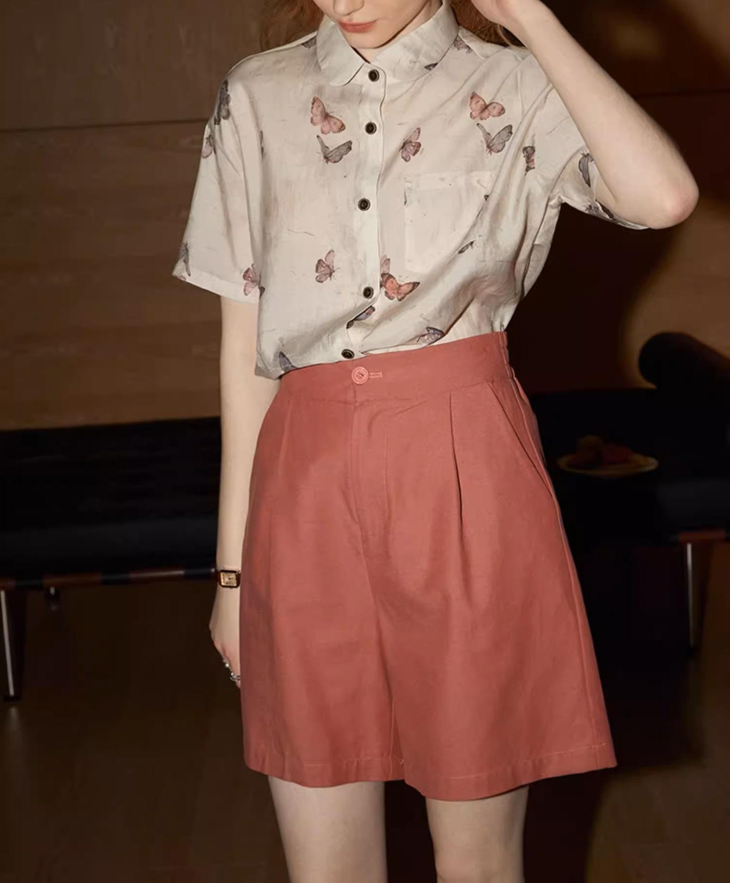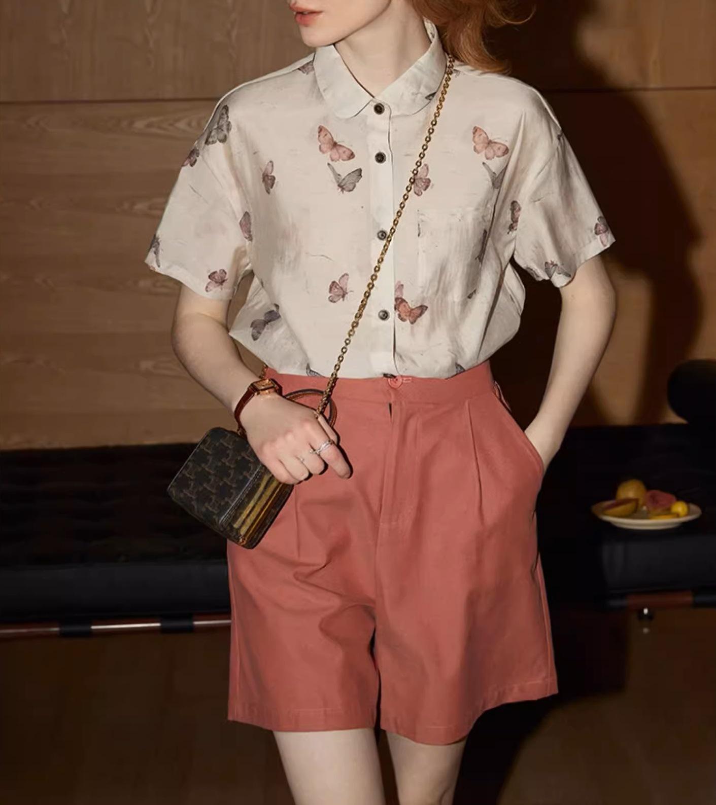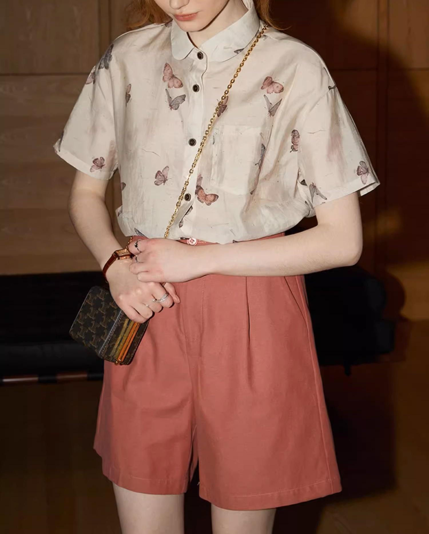 [Liocel] Camisa de Mariposa de Manga Corta para Mujer Primavera y Verano 2025 Nueva Diaria Combinable para Viajera