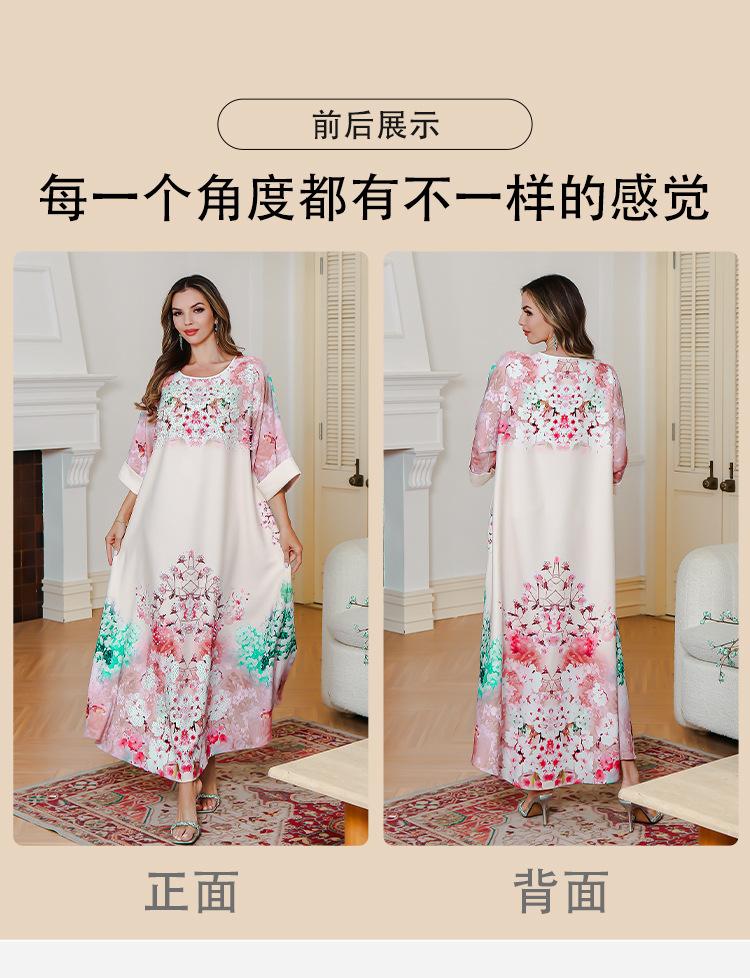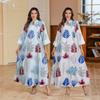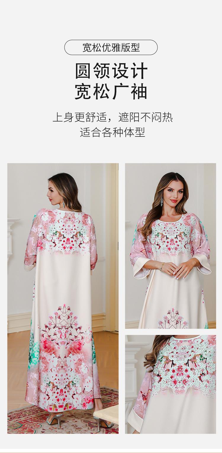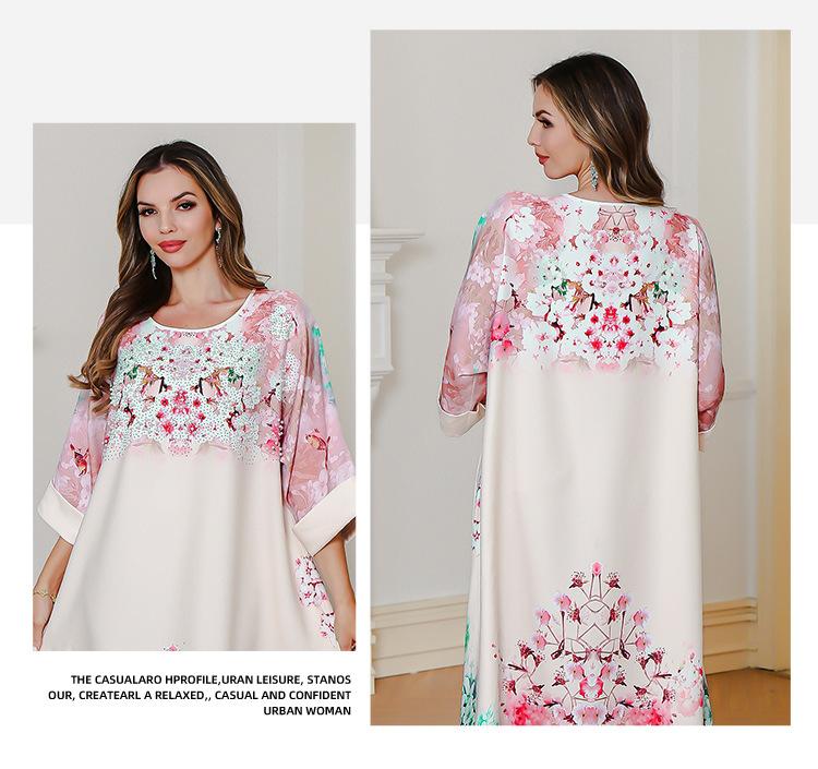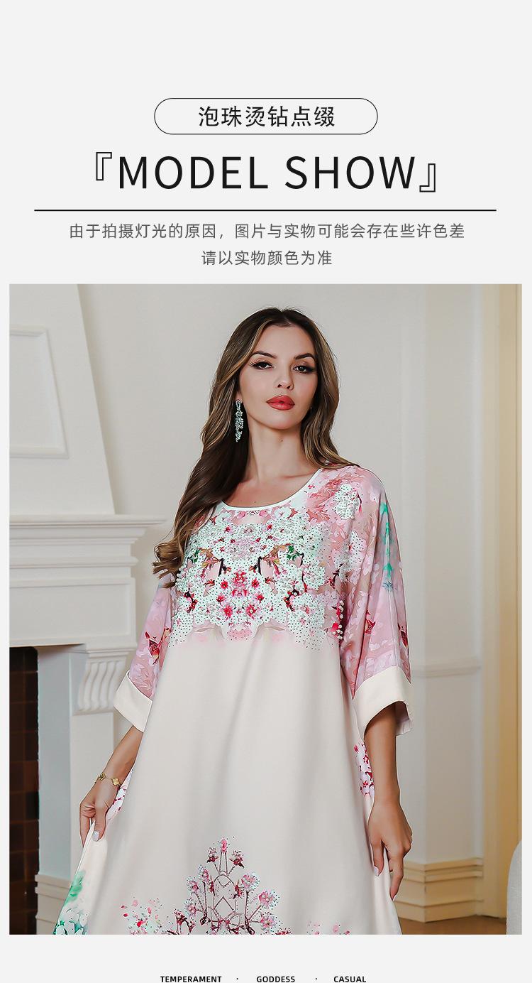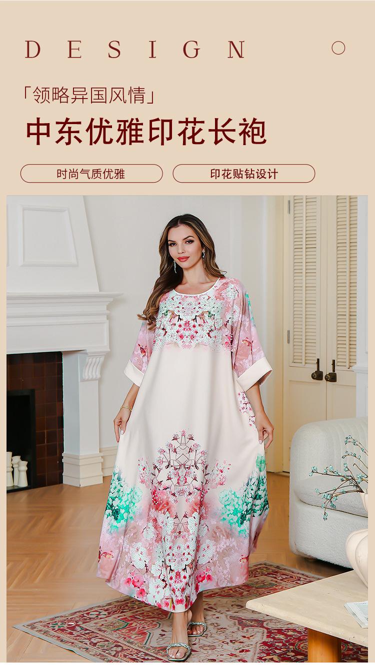 Verano Más Vendido Nuevo Vestido Estampado Musulmán Fiesta Oriente Medio Falda Larga Abaya Bata Estampada con Diamantes Calientes