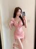25099-Vestido sexy de manga corta para chicas calientes de estilo europeo y americano, falda ajustada con cintura y escote en V para mujer 2025