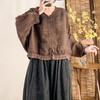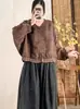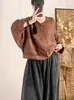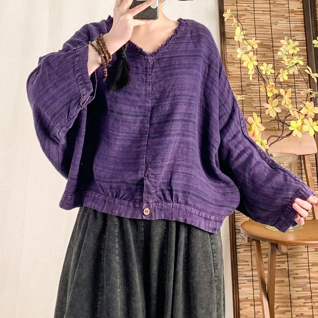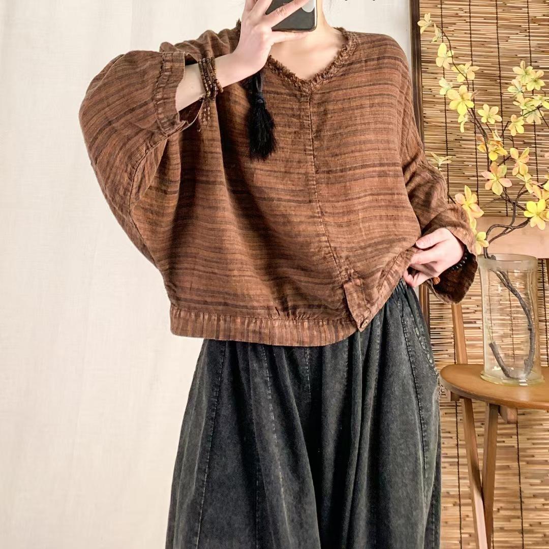 Camisa vintage de lino con cuello en V para mujer, corta, holgada, combinable, informal, de manga larga, primavera 2025