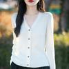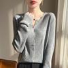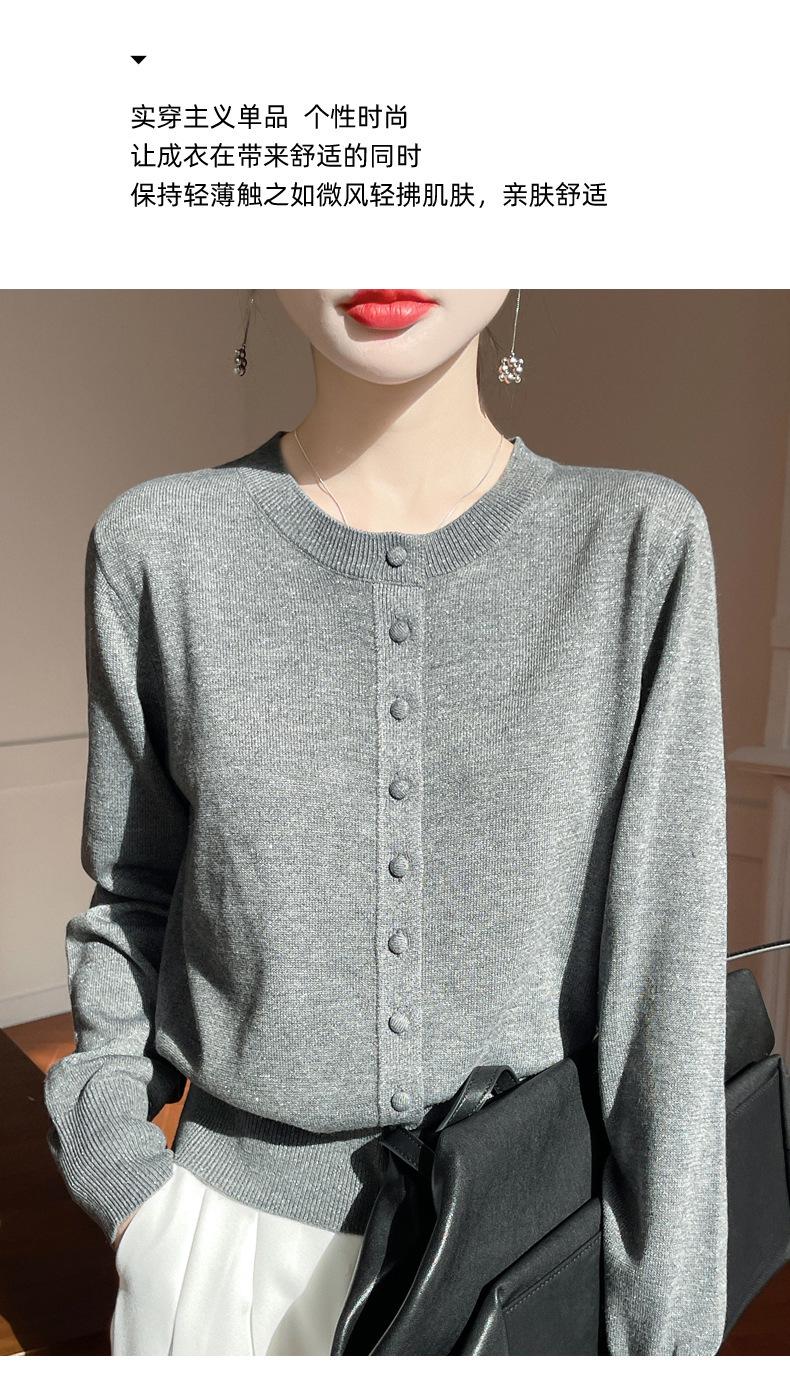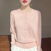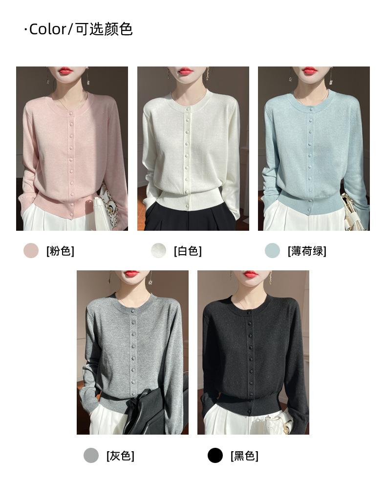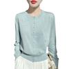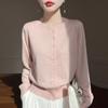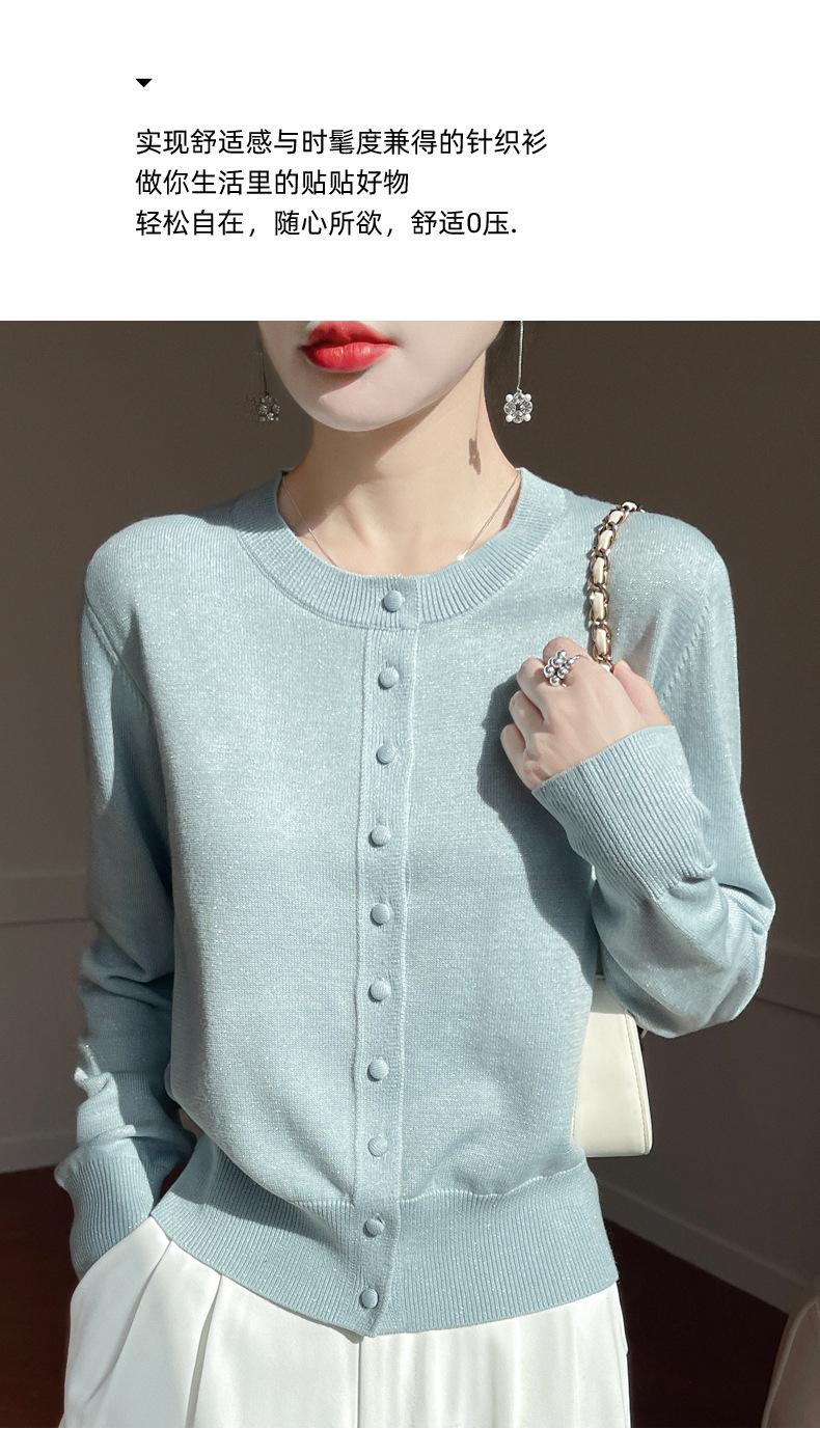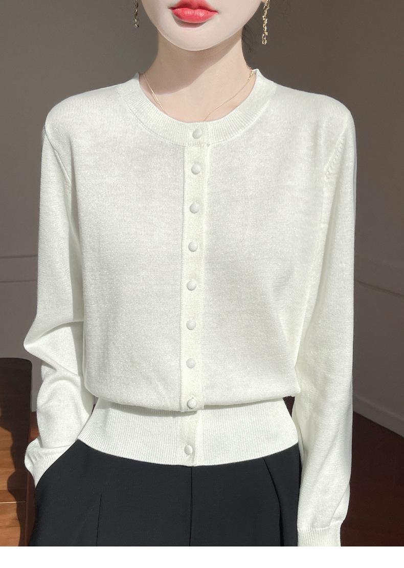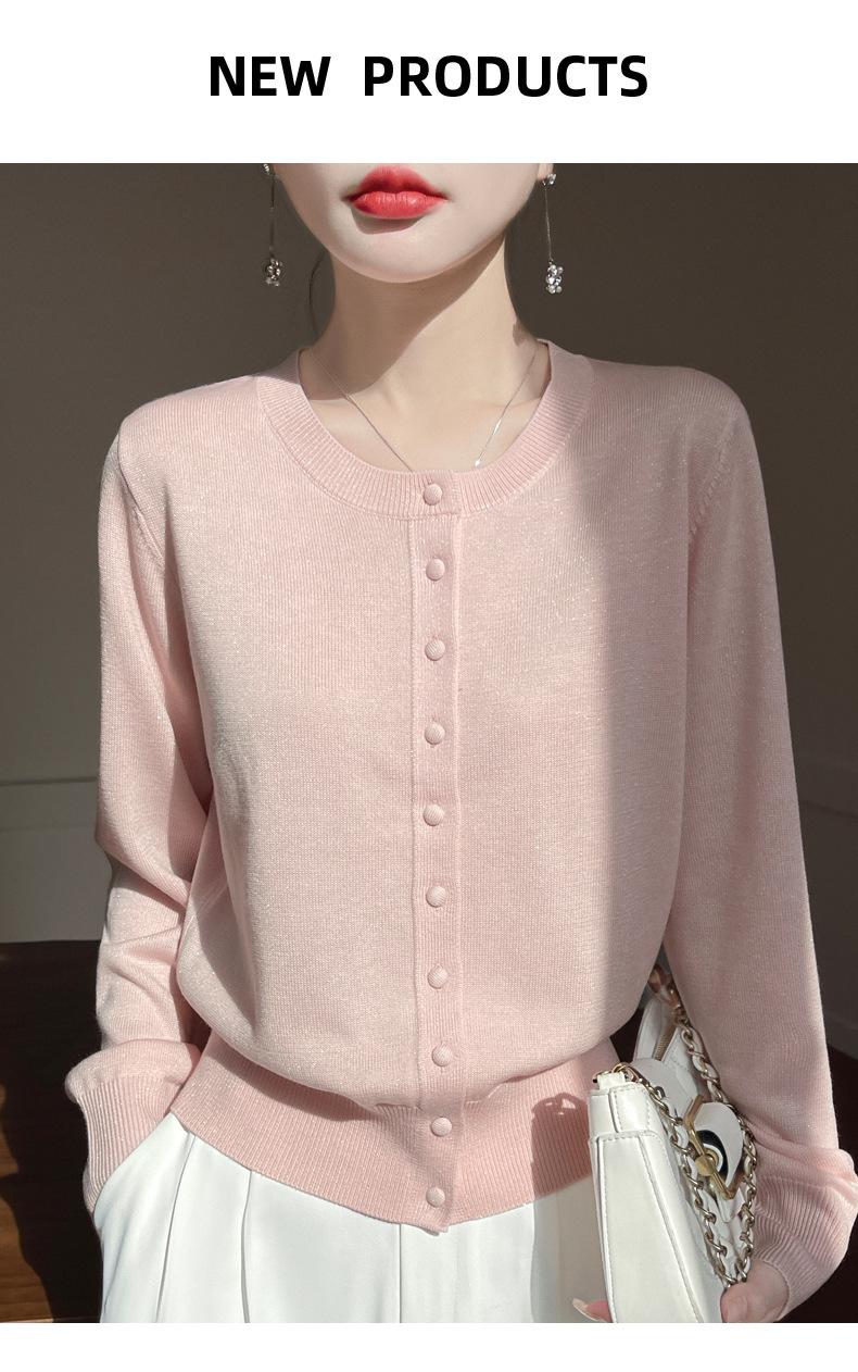 Chaqueta holgada de lana peinada con cuello redondo, de punto, con hebilla, de color liso y seda brillante, para mujer, primavera 2025