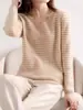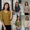 Verano Nuevo Estación Europea Moda Casual Cuello en V Manga Larga Camiseta de Punto para Mujer Suelta Estilo Occidental Color Sólido Combinable Top
