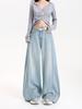 Ropa de Mujer de Seda Naranja #2025 Primavera Tencel Lyocell Jeans de Pierna Ancha con Caída para Mujer Cintura Alta Costuras Pantalones Rectos