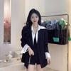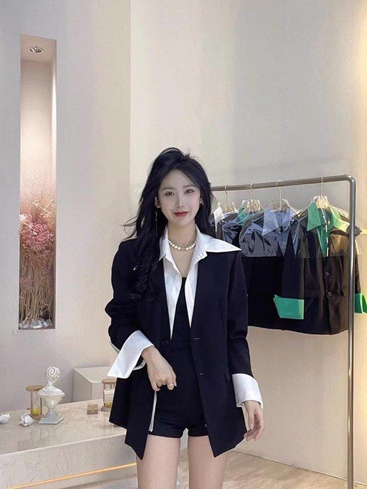 Chaqueta de traje de dos piezas falsa para mujer, otoño de 2023, nuevo estilo, pequeña, de alta calidad, estilo urbano, elegante, informal.