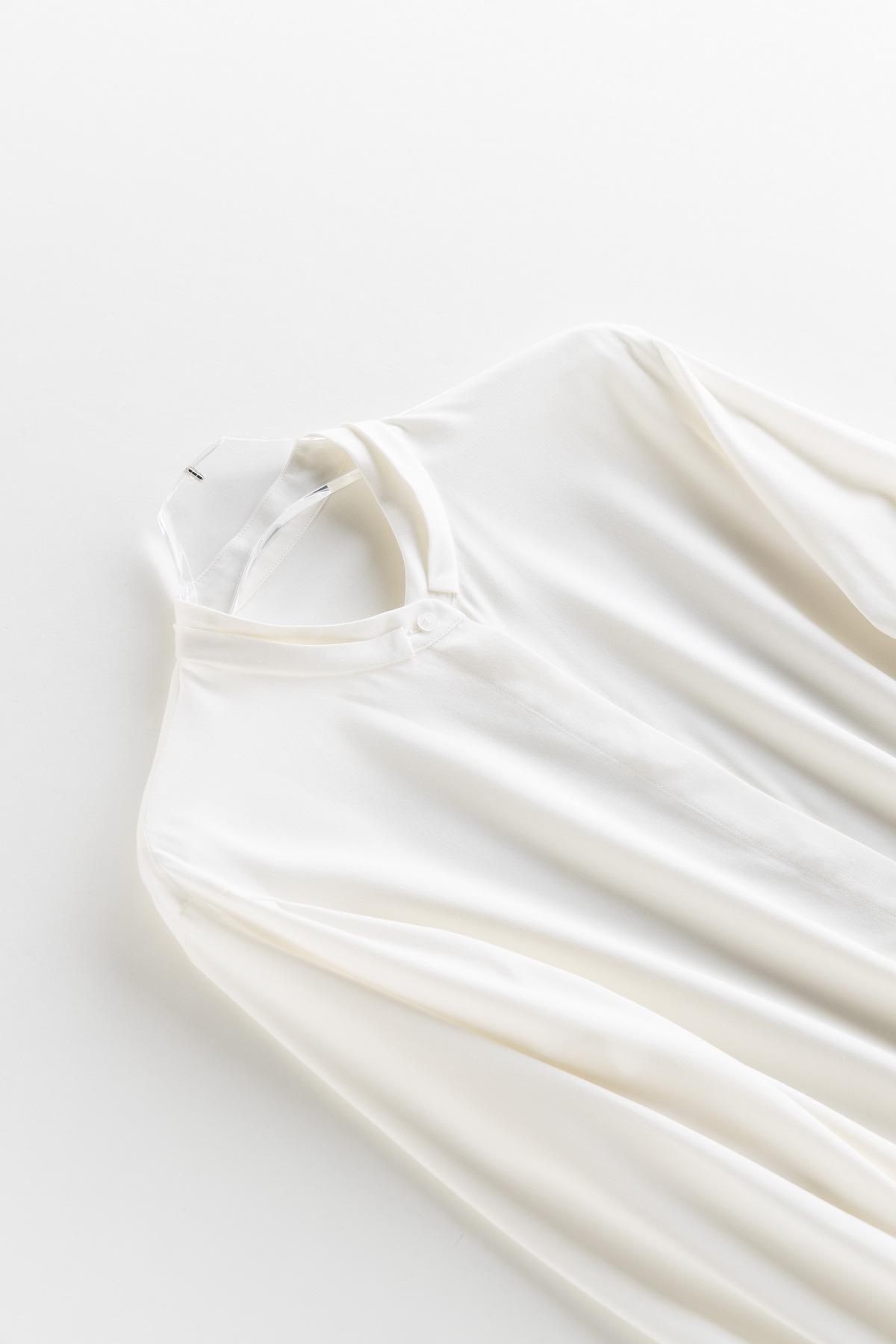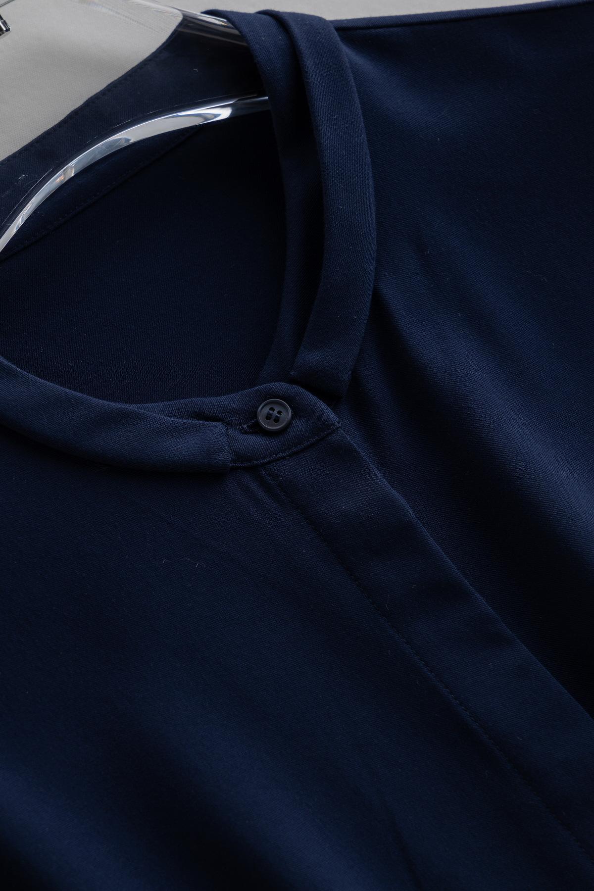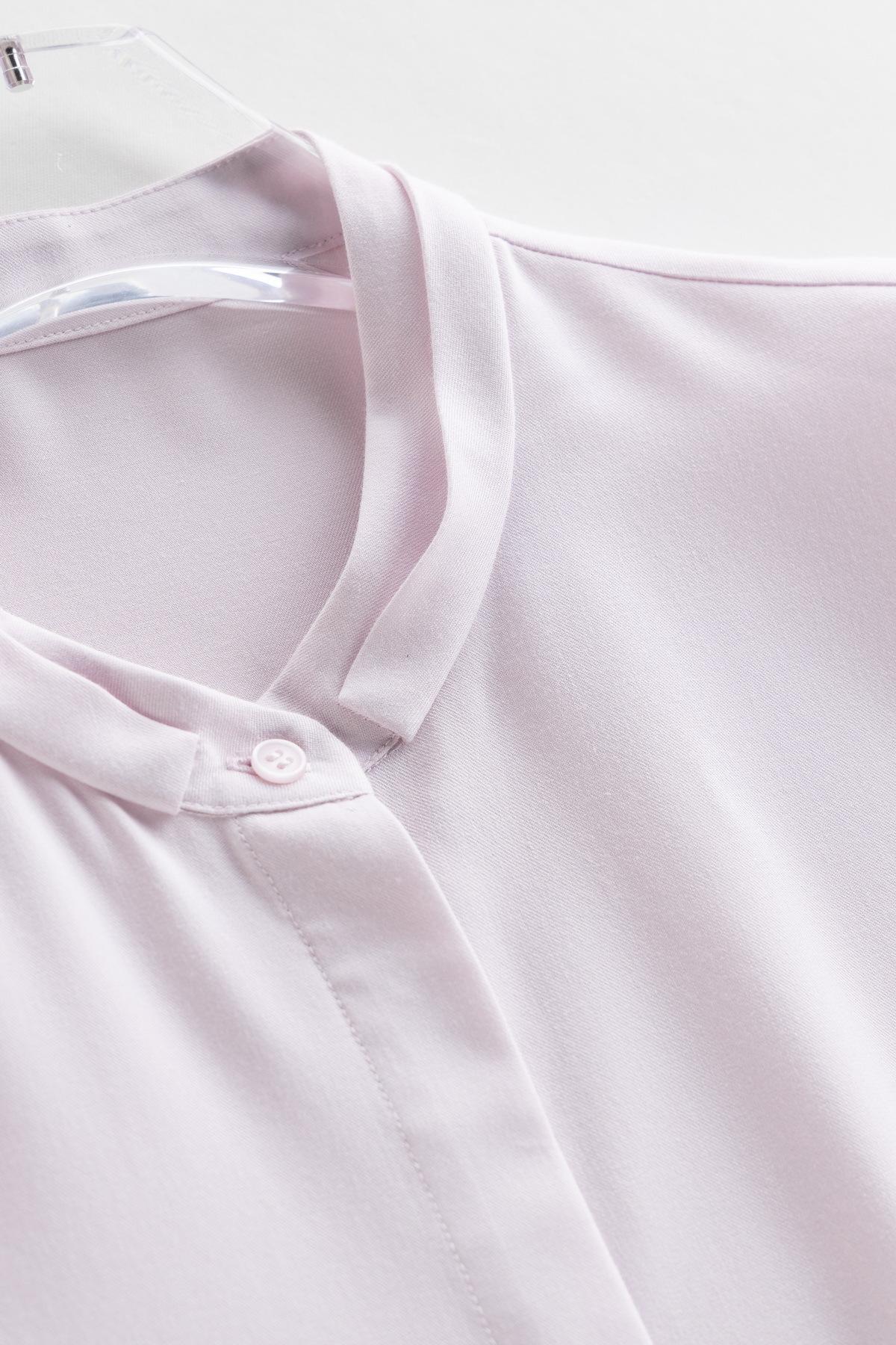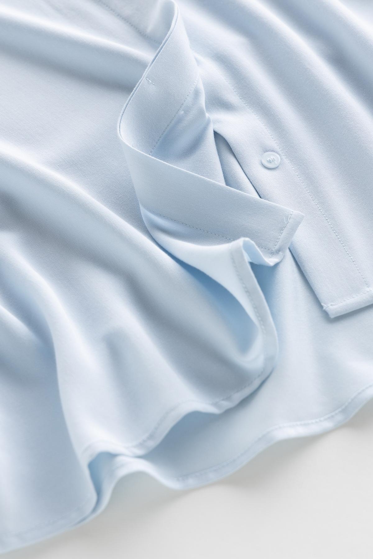 El escote y los puños son redondeados, temperamento suave, mostrando una feminidad gentil.