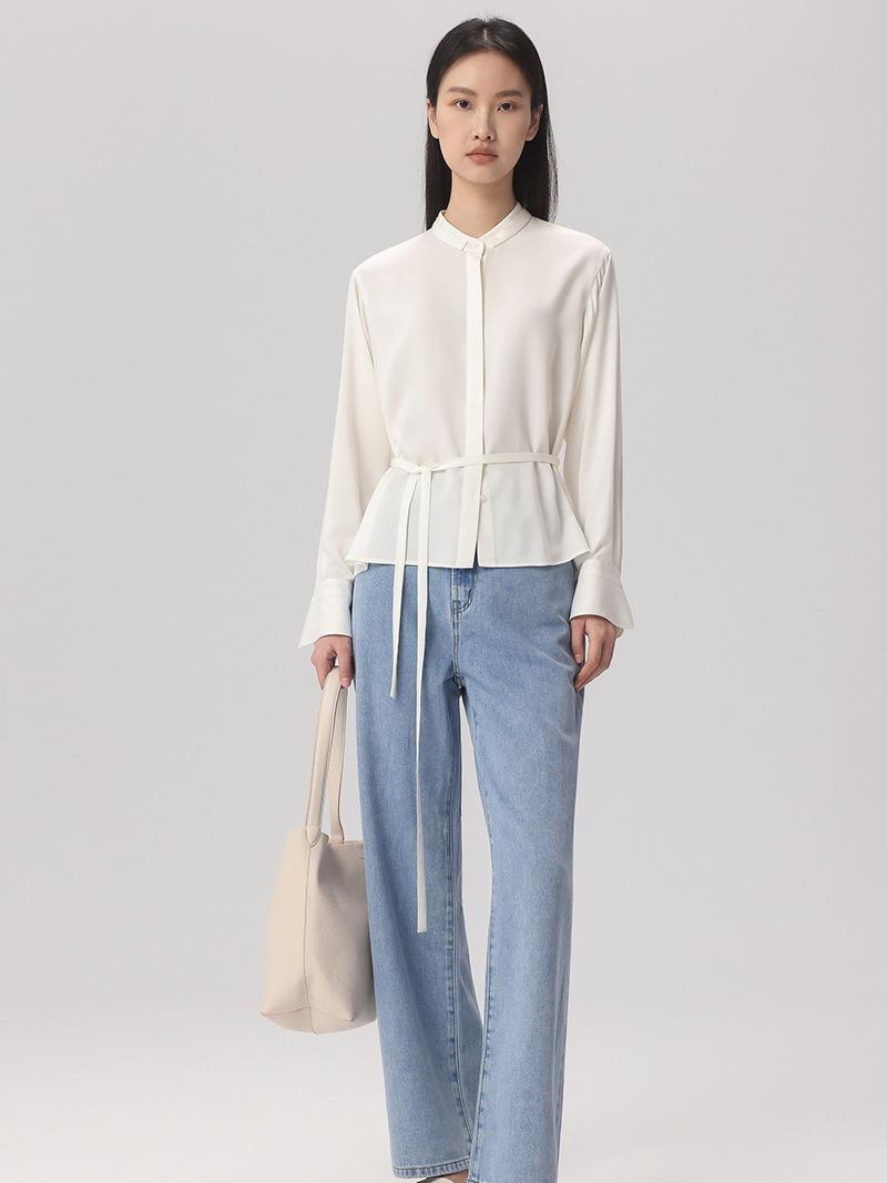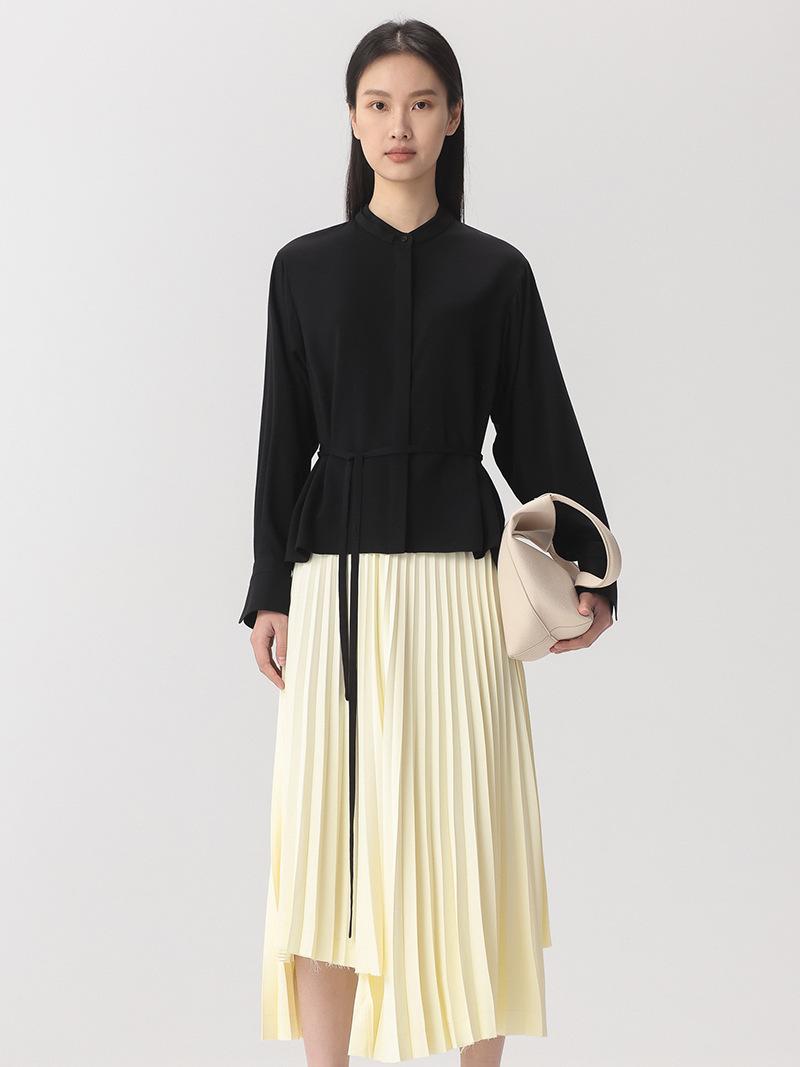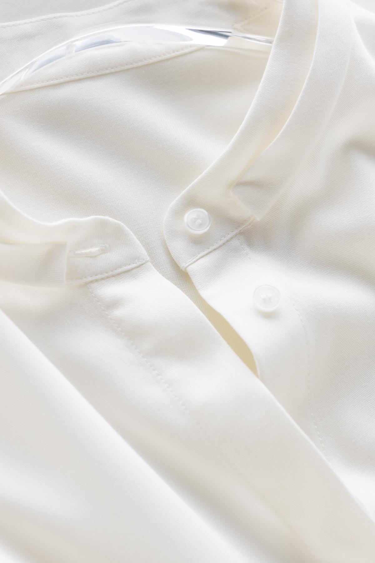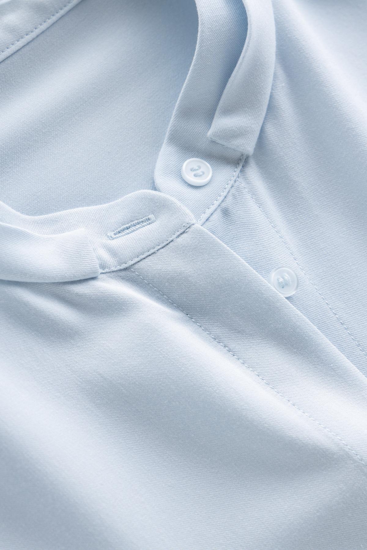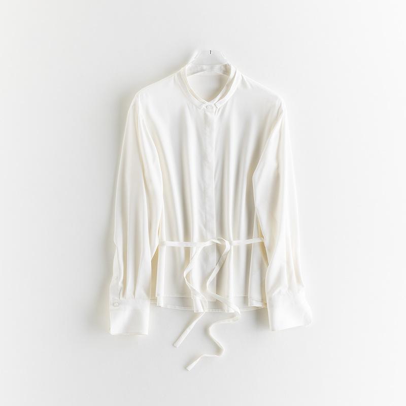 El escote y los puños son redondeados, temperamento suave, mostrando una feminidad gentil.